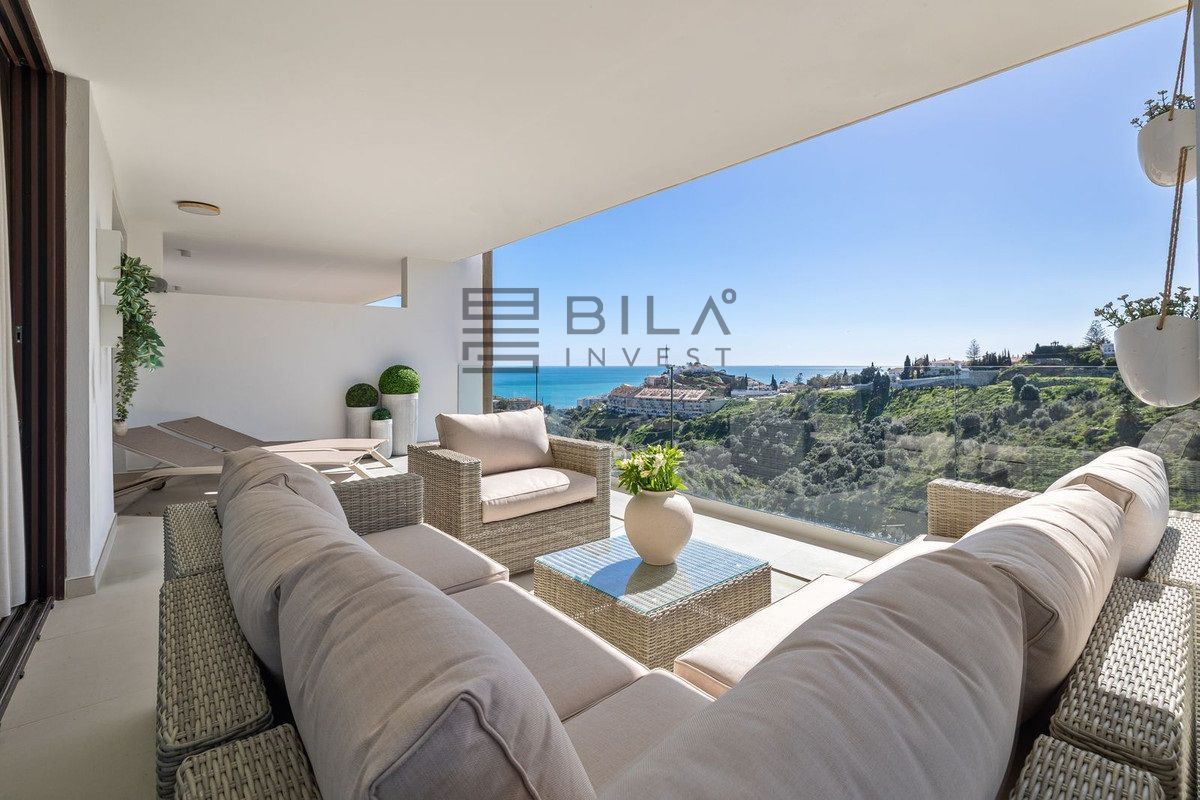 Finding the perfect balance between coastal serenity and modern luxury is effortless in this stunning corner residence, located in the highly sought-after lower enclave of El Higueron. This exceptionally spacious and luminous home is designed to invite the Mediterranean light into every corner, offering a seamless flow that leads toward a massive private terrace. From this expansive outdoor sanctuary, you can enjoy breathtaking panoramas that sweep from the rugged mountain peaks to the sparkling sea, with more than enough room for a full lounge set, sun loungers, and a premium grilling area for sunset dinners.