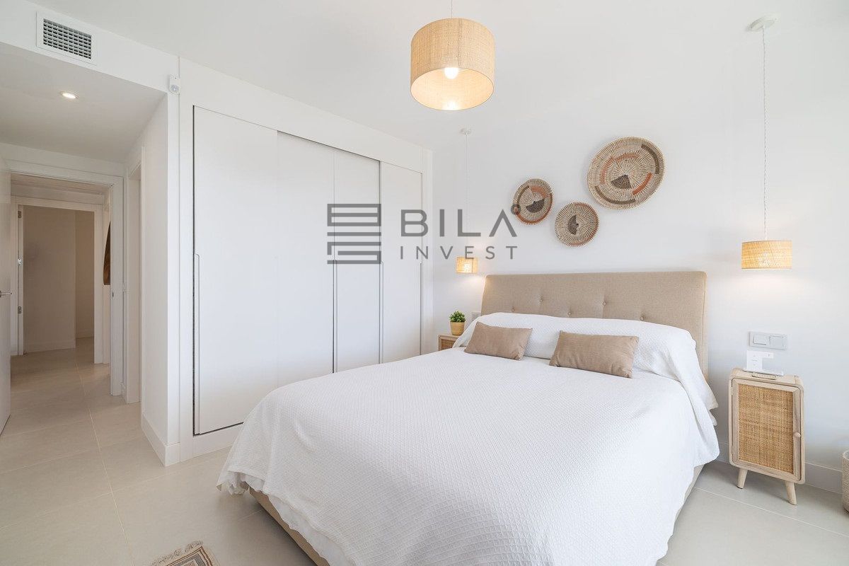 The interior is crafted for year-round comfort, featuring three generous bedrooms and two bathrooms equipped with underfloor heating for those cozy winter mornings. Every detail of the living space has been curated to maximize the views, ensuring the horizon is always part of your daily backdrop. Practicality meets prestige with the inclusion of two private garage spaces and a dedicated storage room, providing ample space for an active lifestyle.