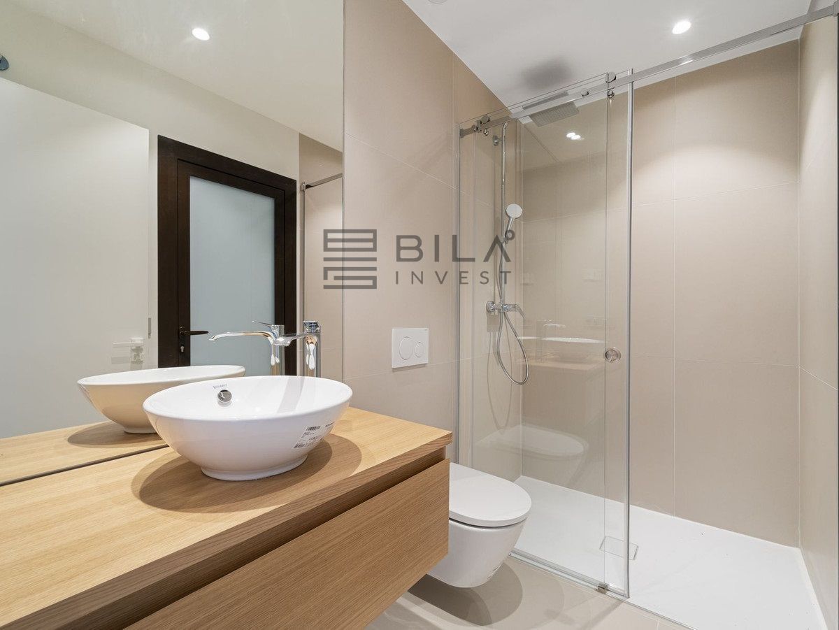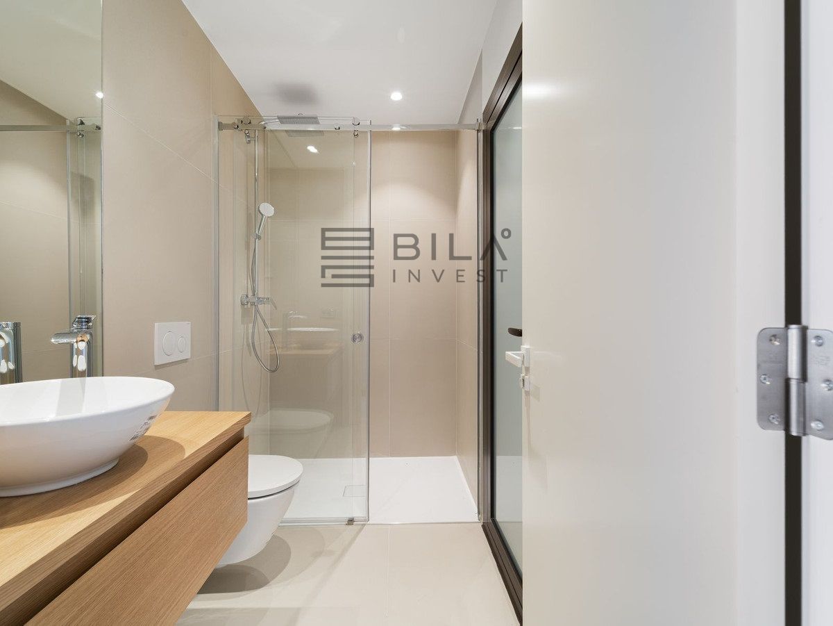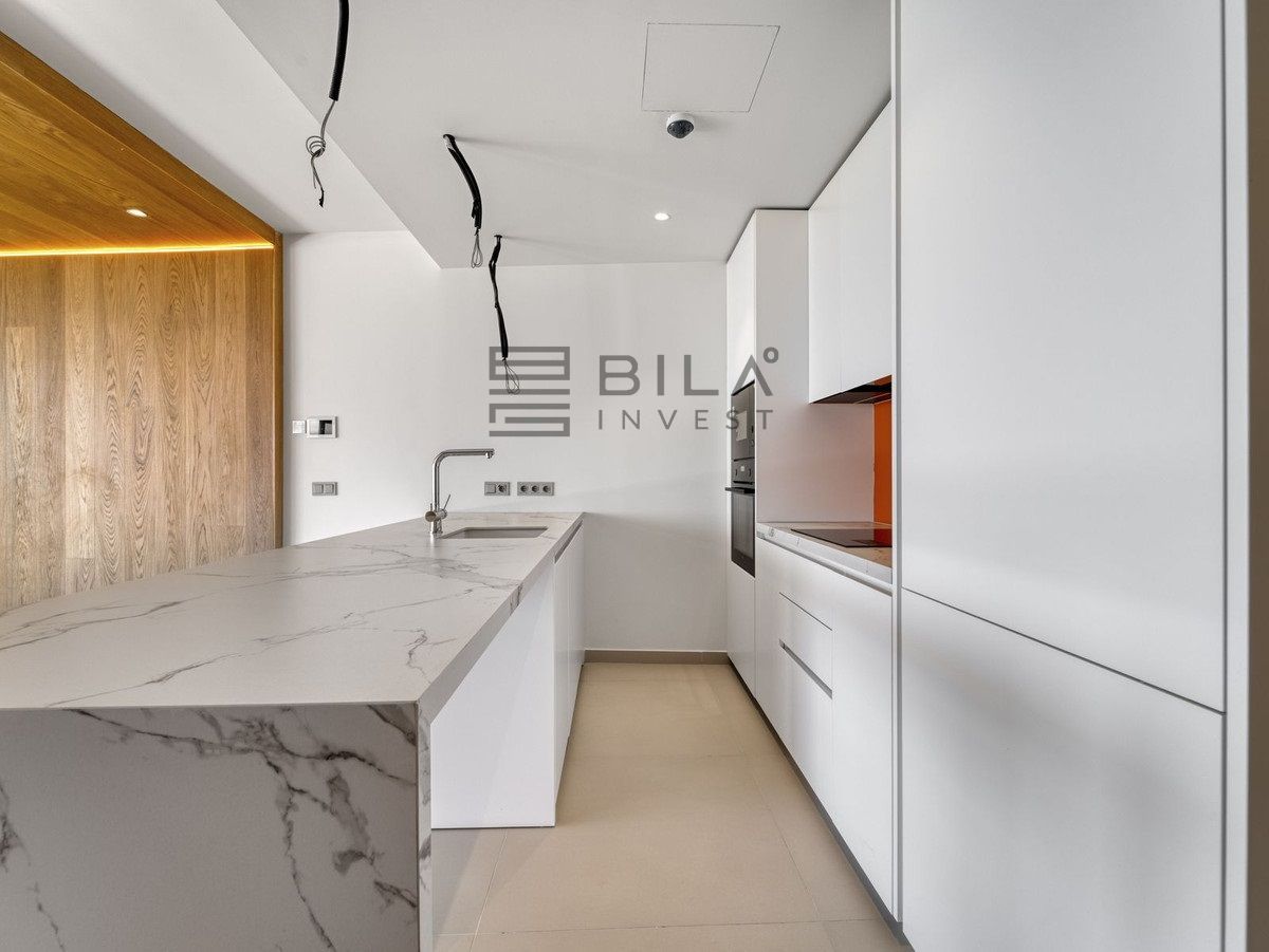 Thanks to its south-facing orientation, the property enjoys abundant natural light throughout the day and offers beautiful sea views from the living room and terrace. The interior combines contemporary design and warm, high-quality finishes, with an open-plan, functional layout that maximises space and light thanks to its floor-to-ceiling windows.