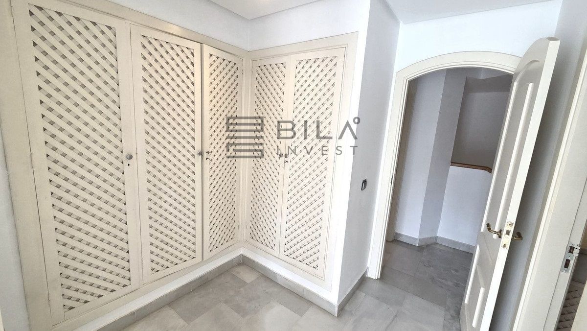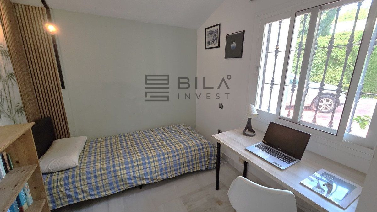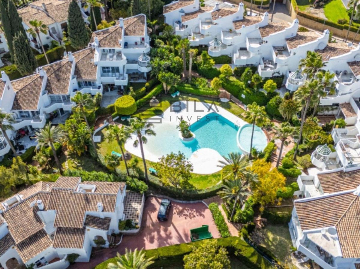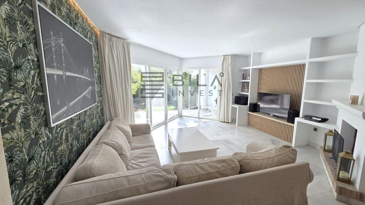 Semi-detached villa in Balcones de Sierra Blanca, located within the exclusive Camoján Blanco residential complex. This private community consists of only 27 homes and features beautiful communal landscaped gardens and a stunning saltwater "beach-effect" pool with direct access from the property.. The complex is situated in one of Marbella's most prestigious areas, surrounded by stately villas and located near the renowned Buchinger Clinic, as well as being just a few minutes' drive from Marbella city center.