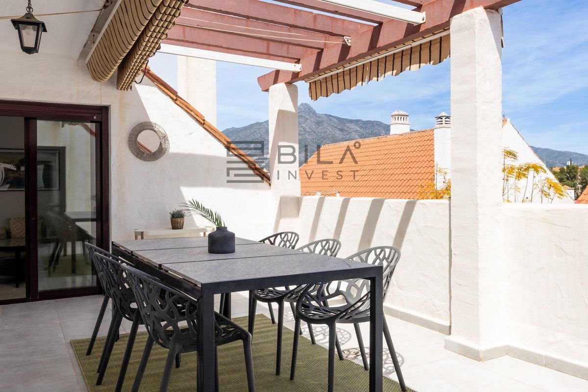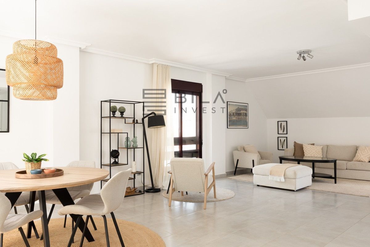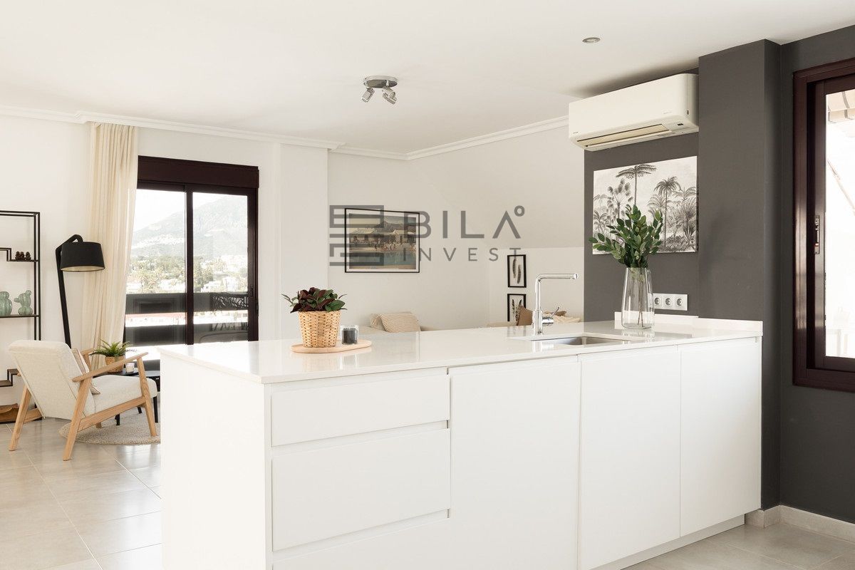 Discover this stunning duplex penthouse in the heart of Nueva Andalucía, where modern design meets exceptional comfort and lifestyle. Spanning 191 sqm of built area, this elegant home offers four spacious bedrooms and two stylish bathrooms, perfectly designed for both family living and entertaining. The bright, open-plan interiors flow seamlessly onto three generous terraces and two additional balconies, creating multiple outdoor spaces to relax, dine, and enjoy the Mediterranean climate.
