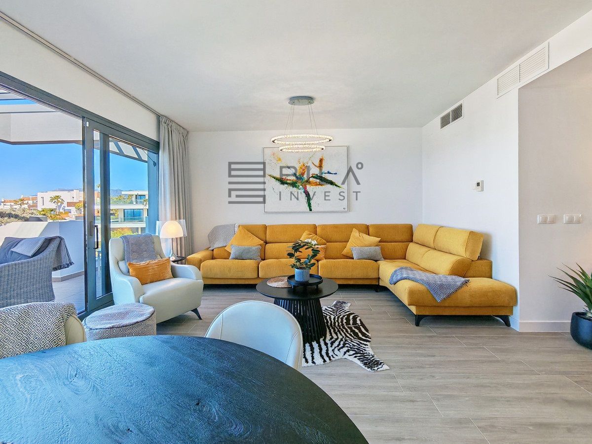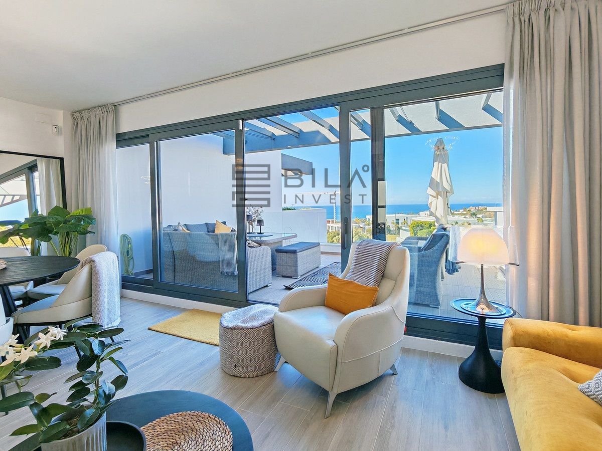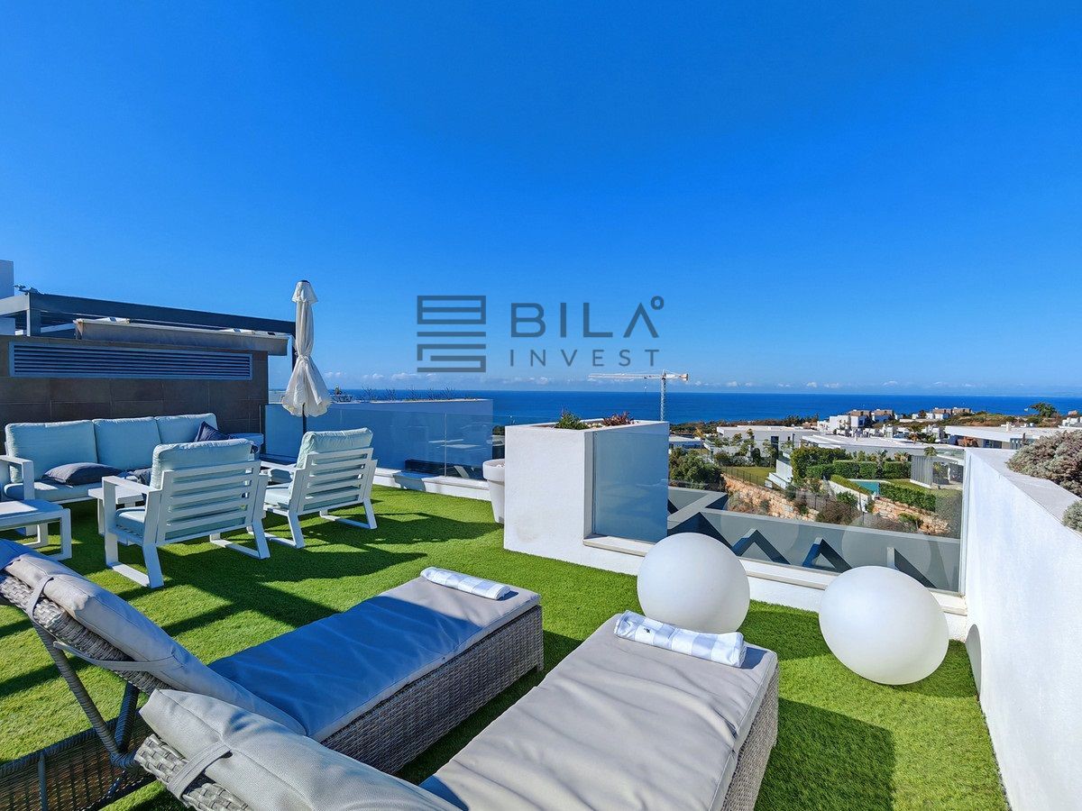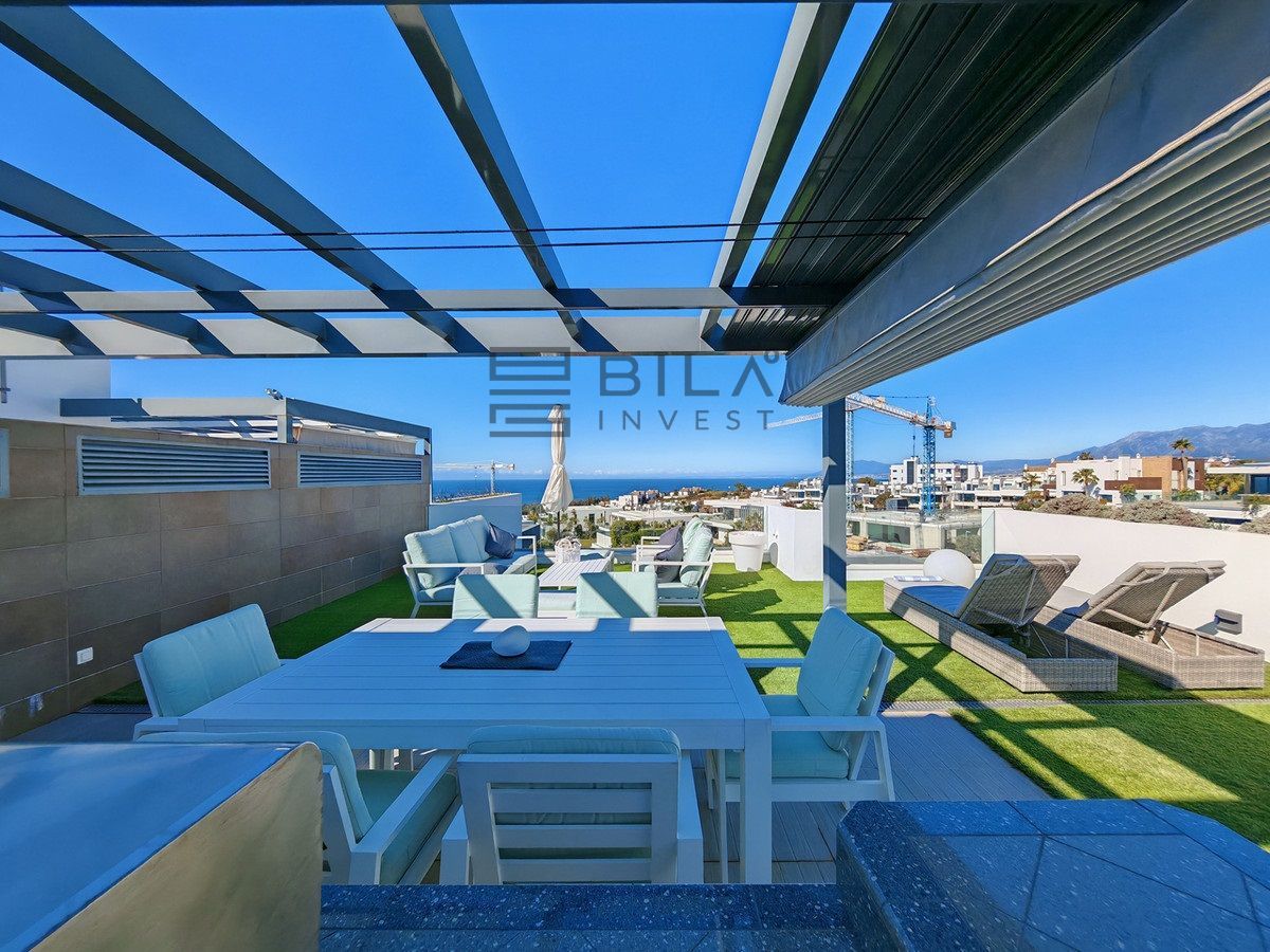 Penthouse for sale in Cabopino, Marbella with 3 bedrooms, 2 bathrooms, 1 on suite bathroom and with orientation south, with communal swimming pool. Regarding property dimensions, it has 290 m² built. Has the following facilities front line golf, amenities near, transport near, air conditioning, central heating, fully fitted kitchen, solarium, barbecue, private terrace, kitchen equipped, living room, sea view, country view, mountain view, golf view, internet - wi-fi, fitted wardrobes, gated community, pool view, panoramic view, close to children playground, close to sea / beach, close to golf, uncovered terrace, open plan kitchen, excellent condition, close to shops, close to town, close to port and close to schools.
