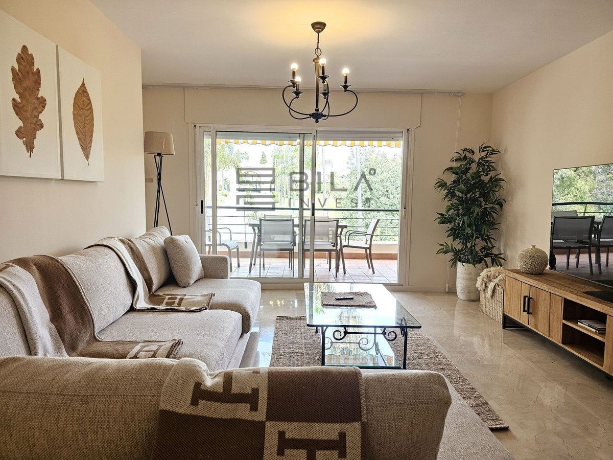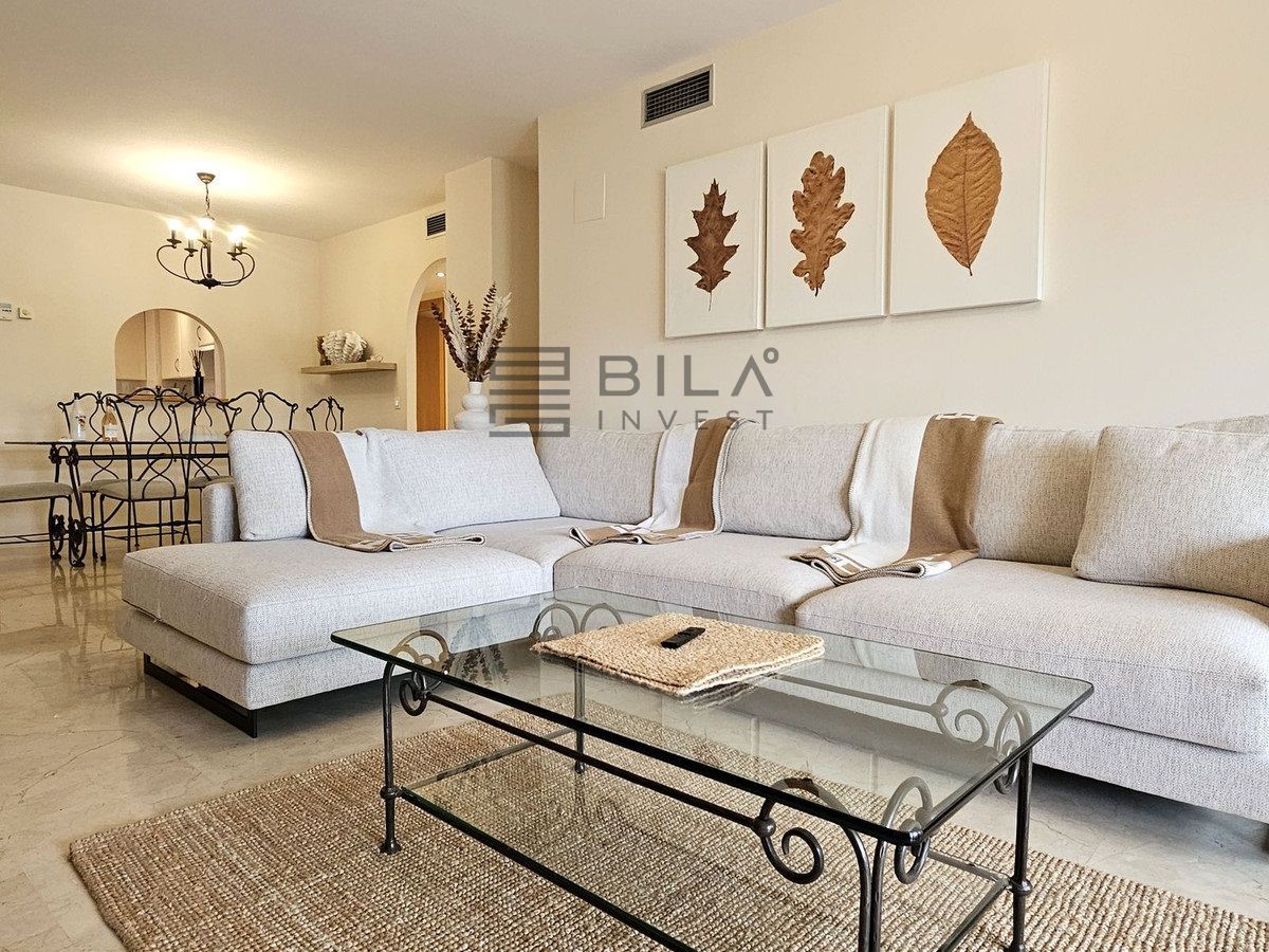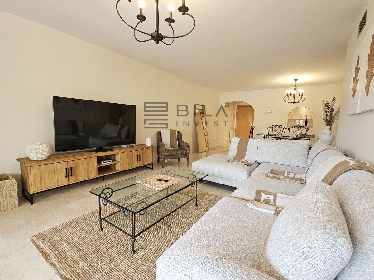 Set in the prestigious area of Guadalmina Baja, this beautifully presented three-bedroom middle-floor apartment offers an exceptional combination of comfort, space, and prime golf-side living.