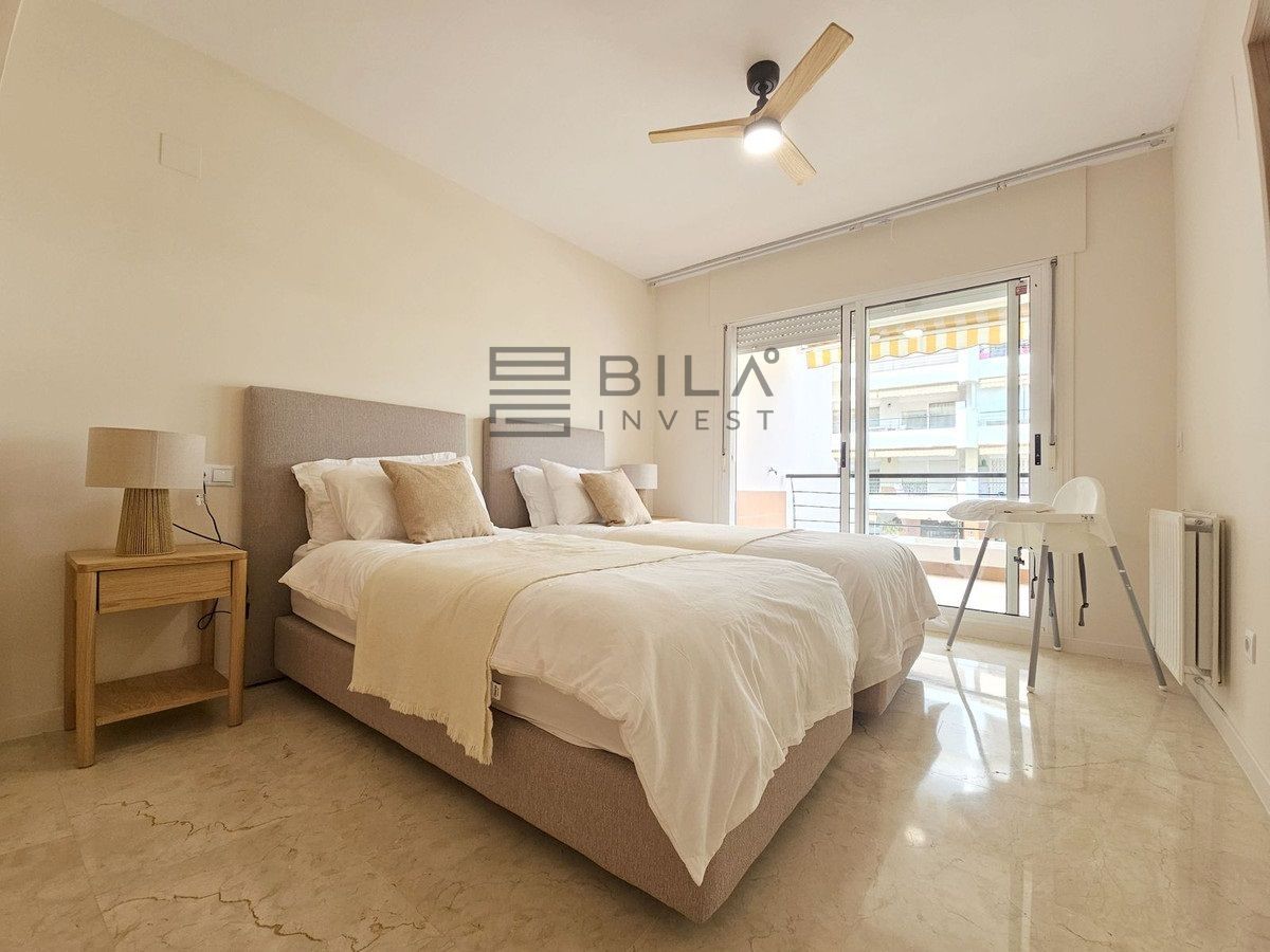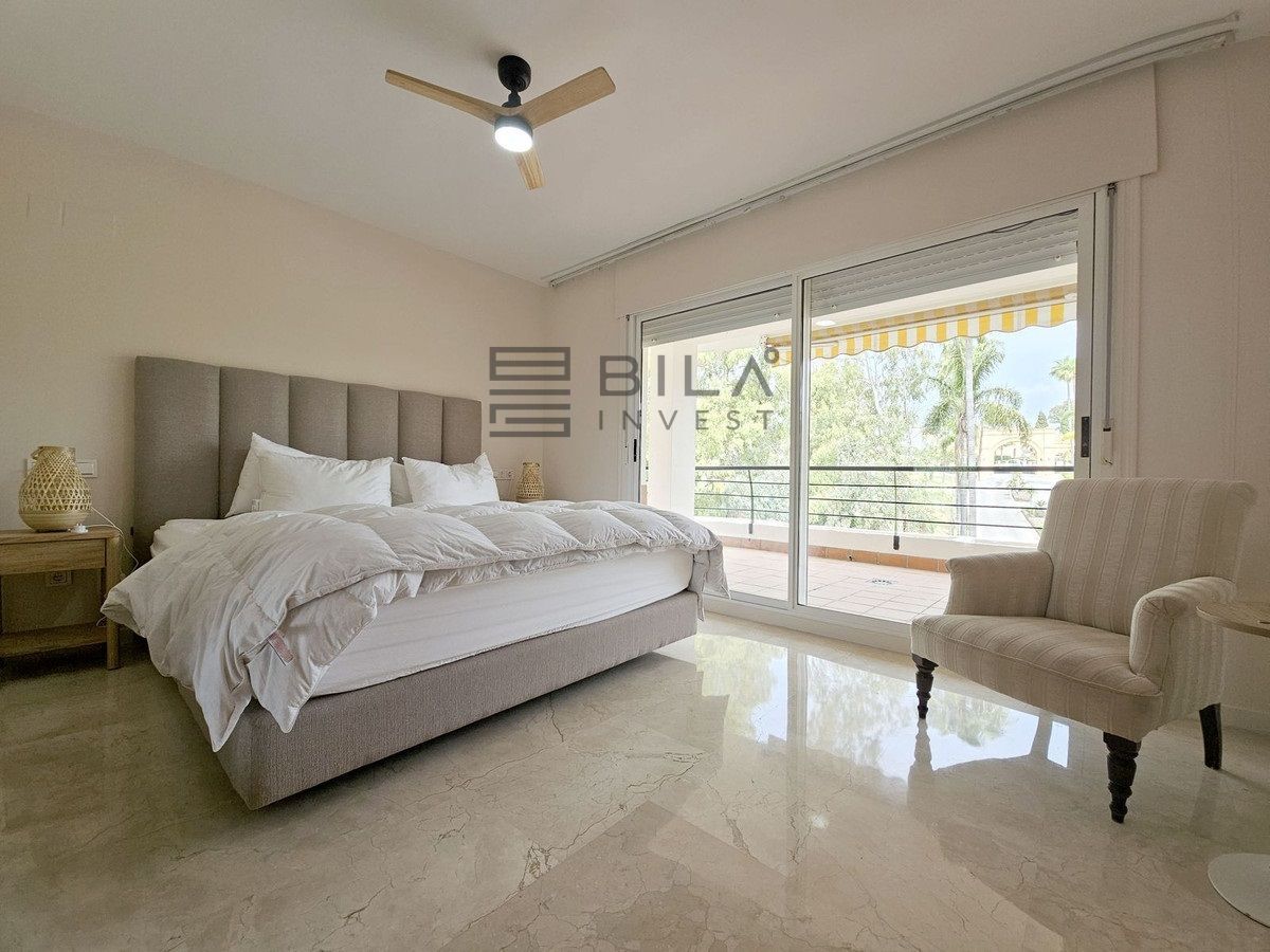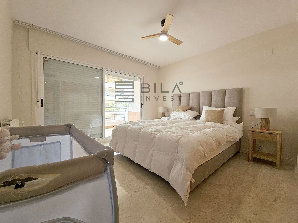 Set in the prestigious area of Guadalmina Baja, this beautifully presented three-bedroom middle-floor apartment offers an exceptional combination of comfort, space, and prime golf-side living.