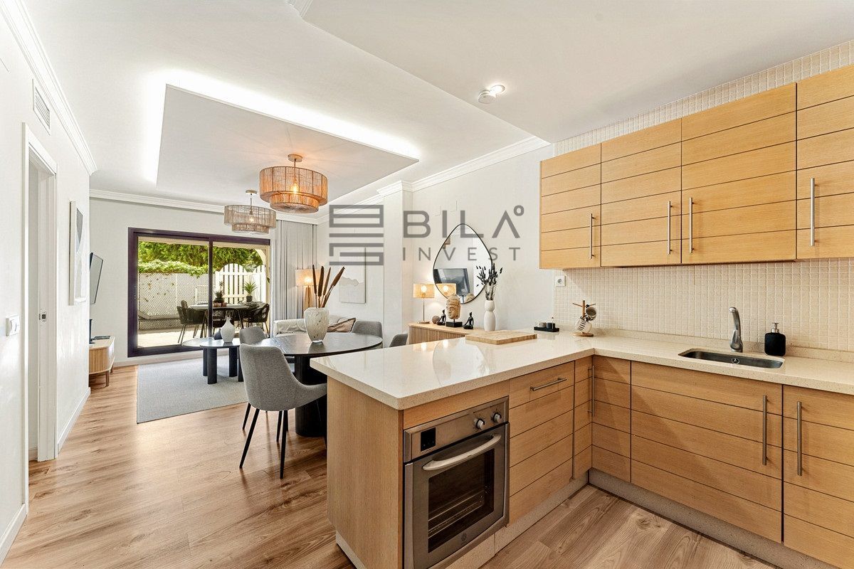 The interiors have been tastefully renovated with a clean, Scandinavian-inspired aesthetic that enhances the apartment's airy, coastal ambiance. Every detail, from the layout to the finishes, has been thoughtfully considered to maximize comfort while maintaining a sense of modern simplicity.