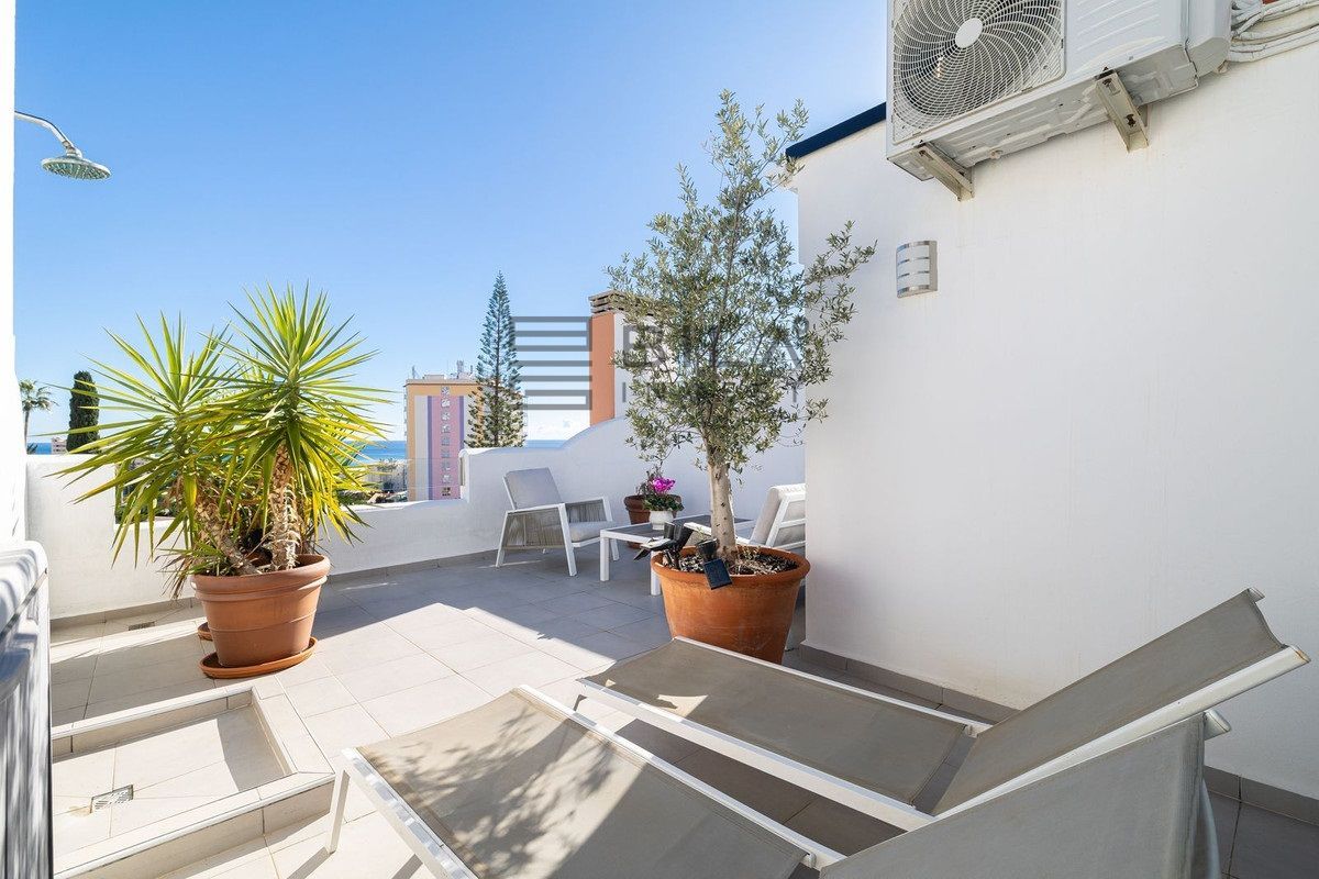 Located in the exclusive Torreblanca area of Fuengirola, this property offers a layout designed for comfortable and practical living, with 197 m2 of living space spread over three floors that maximize space and natural light. The entrance level features a functional, independent kitchen, perfect for those seeking a touch of privacy, and with the option to convert it into an open-plan kitchen if desired. This floor also includes a guest toilet and a storage room for household items, as well as a spacious living room with a fireplace and a large balcony overlooking the Mediterranean Sea. The combination of living room, kitchen, and terrace creates a versatile meeting point for family gatherings or entertaining friends, while maintaining everyday practicality. The second floor comprises three bedrooms, all equipped with built-in wardrobes for convenient and organized storage. The master bedroom has a spacious and renovated en-suite bathroom for added comfort, while the other two bedrooms share a second, fully renovated bathroom with modern and functional finishes. This floor is characterized by its practical layout and the feeling of spaciousness that each room provides, designed for rest and privacy. The third floor houses a large, partially covered and glazed rooftop terrace, which has been fitted out with a second kitchen. This space offers versatility as a home office or additional guest bedroom, while maintaining a large outdoor area to create different atmospheres: seating areas with sofas, a sunbathing area, and an outdoor shower for cooling off. The views of the Mediterranean from the rooftop complete this open-air oasis, ideal for taking advantage of the Costa del Sol's excellent climate. The terrace becomes the perfect setting to enjoy the outdoor lifestyle without sacrificing the practicality of a well-connected home. The basement level has a private garage with space for one car and smaller vehicles, as well as the possibility of parking a second car directly in front of the entrance. The community offers a swimming pool and green areas, providing a pleasant and safe environment for residents and visitors. As for the location, it is just a few minutes' walk from the beach and the Fuengirola seafront promenade, 480 meters away. The train station is 170 meters away and the supermarket 350 meters away, making daily life and access to services easy. This property, for sale through Bila Invest, stands out for its combination of spacious rooms, updated finishes, and a layout designed for flexible use. Features include a fitted kitchen, fireplace, air conditioning, lighting fixtures, a communal swimming pool, green areas, a laundry room, a solarium, an interior alarm system, access control, and a safe. This property offers functionality, comfort, and a pleasant environment, with amenities for families and those seeking a home with the potential to adapt to different needs. If you are looking for a property with diverse usage options, this property offers a clear investment opportunity and comfortable living in a well-established location.