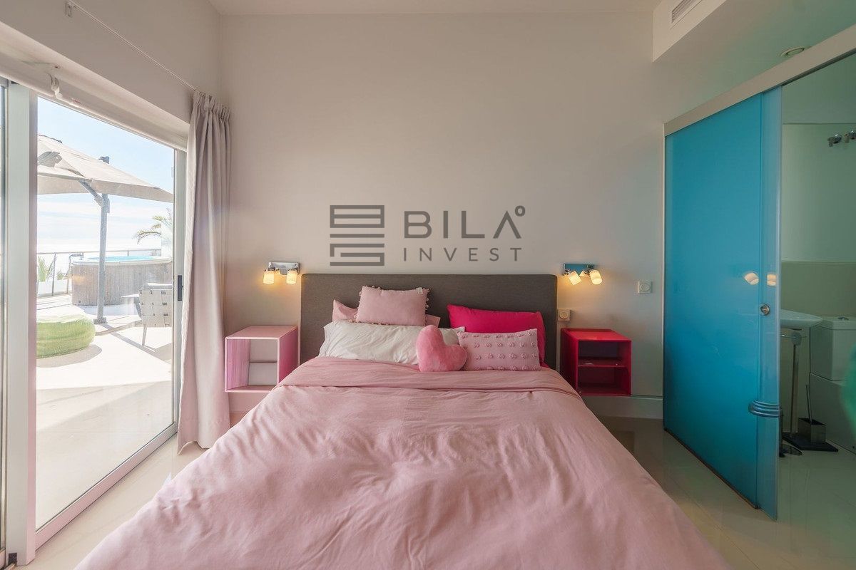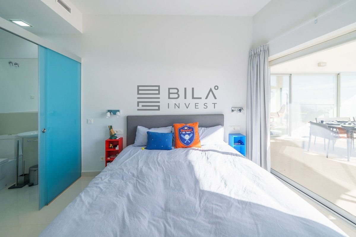 This spacious & luxurious penthouse (with 138 m2 inside) offers 3 bedrooms, with 3 ensuite full bathrooms, open plan kitchen, living and dining room and a large terrace, accessible from all the rooms. The 106 m2 terrace, which has a covered part and a large jacuzzi, becomes an integral part of the apartment when you leave the terrace doors open and you enjoy both sun and views all year round.