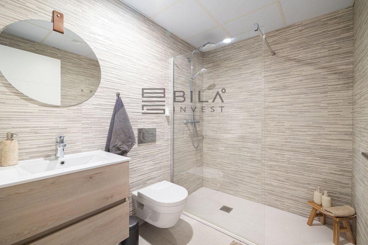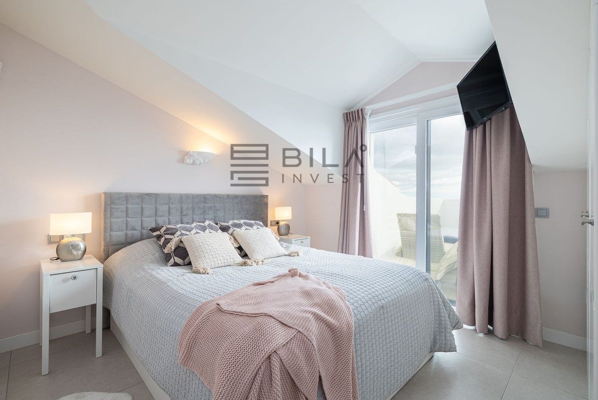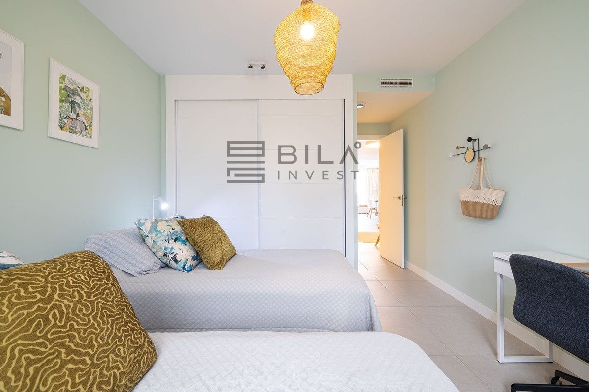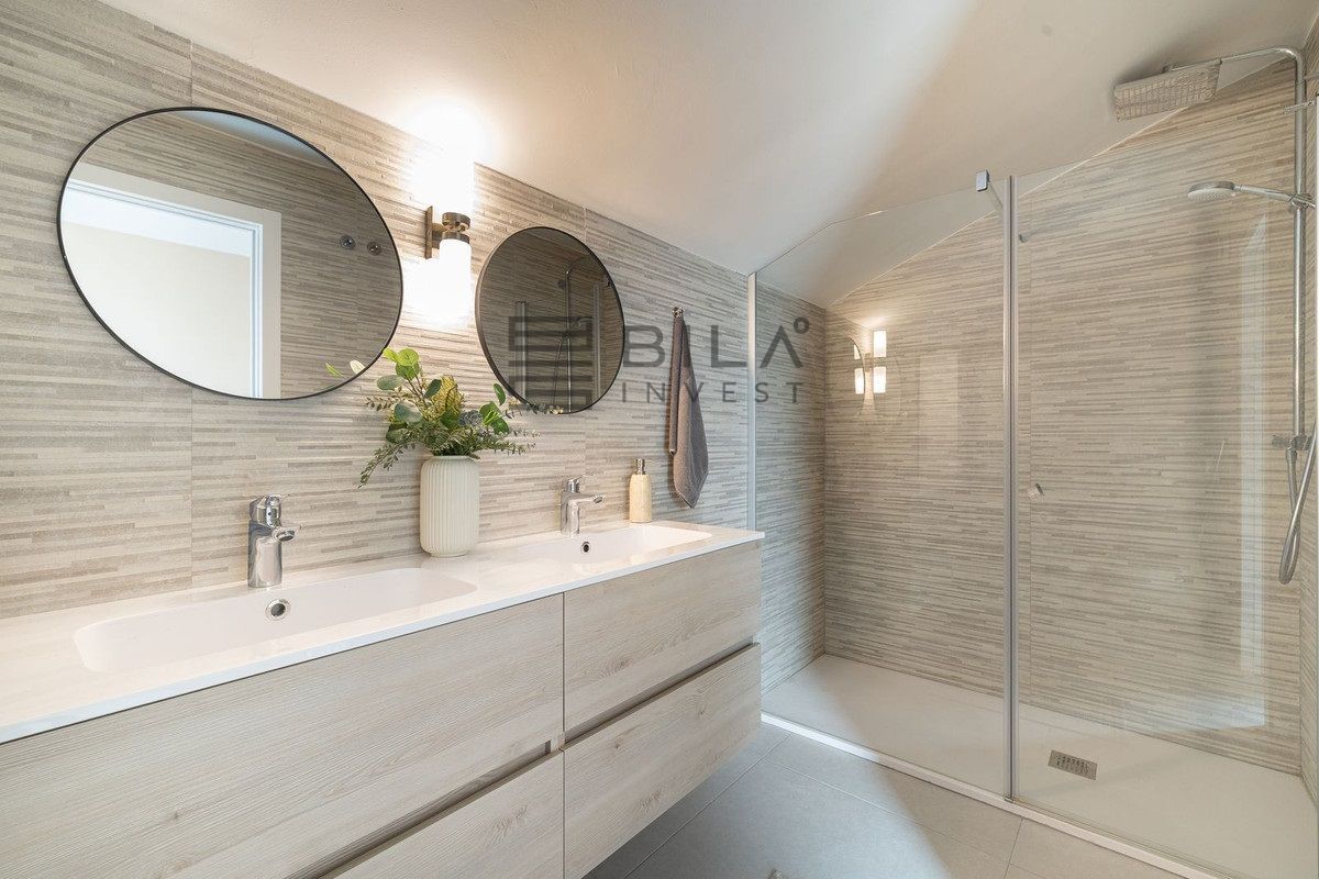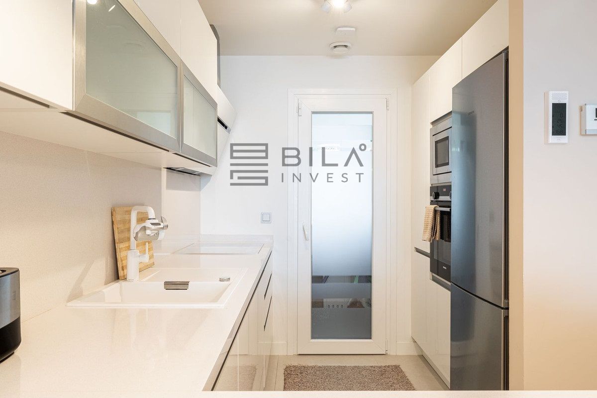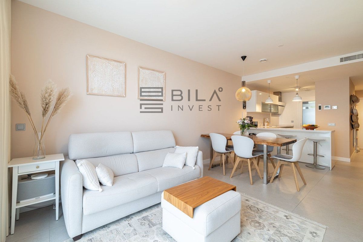 The apartment is distributed over two levels and comprises three spacious bedrooms and three well-appointed bathrooms. All bedrooms include integrated wardrobes. The lower level features an open-concept living area and a highly functional kitchen, allowing you to prepare meals while overlooking the sea. A practical utility room is located discreetly at the rear of the kitchen. The home's convenience is further enhanced by a comprehensive water purification system that protects the lifespan of the appliances, complemented by an additional filtration system for pure drinking water.