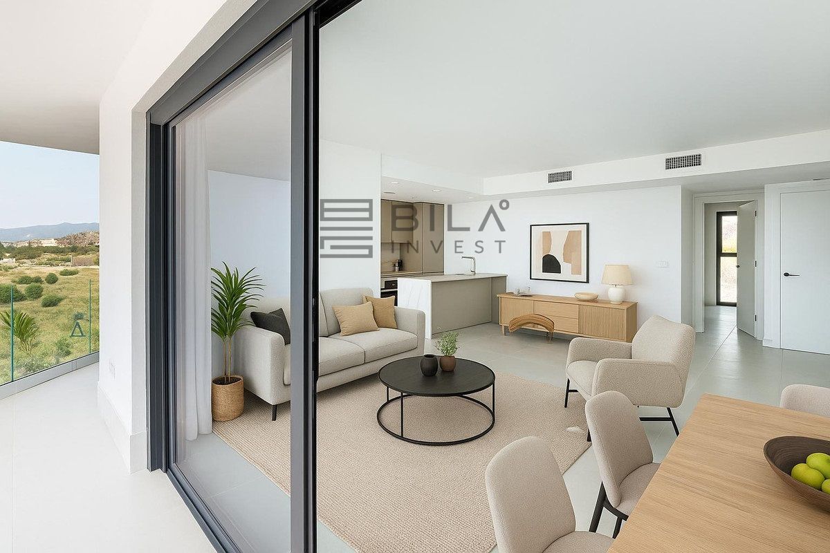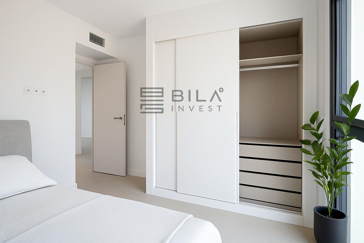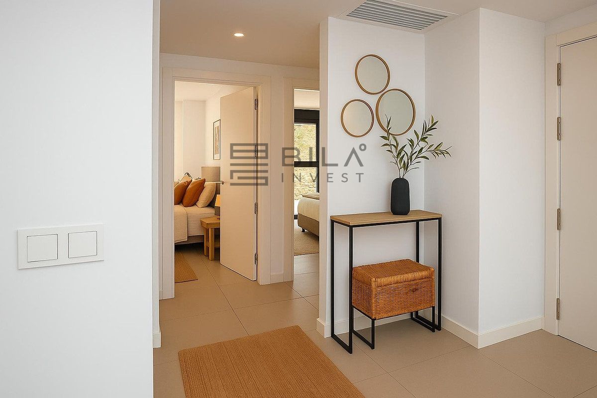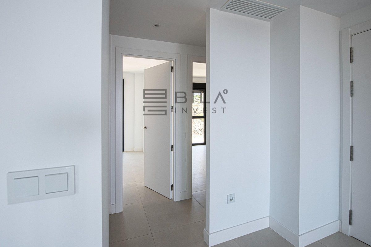 Brand-new and ready to move in! This elegant three-bedroom, two-bathroom apartment islocated on a high floor and stands out for its natural light, thanks to its corner position andexcellent southwest orientation. From the spacious 25 m² covered terrace, you can enjoysun all day long and breathtaking 180° open views of the sea and mountains. The layout isboth practical and welcoming, featuring an open-plan living and dining area connected toa fully equipped kitchen with high-quality finishes. The master bedroom includes an en-suite bathroom, while the other two bedrooms share a second full bathroom. Highlightsinclude double-glazed exterior carpentry, underfloor heating in the bathrooms, and anenergy-efficient aerothermal climate control system. Energy rating: A.