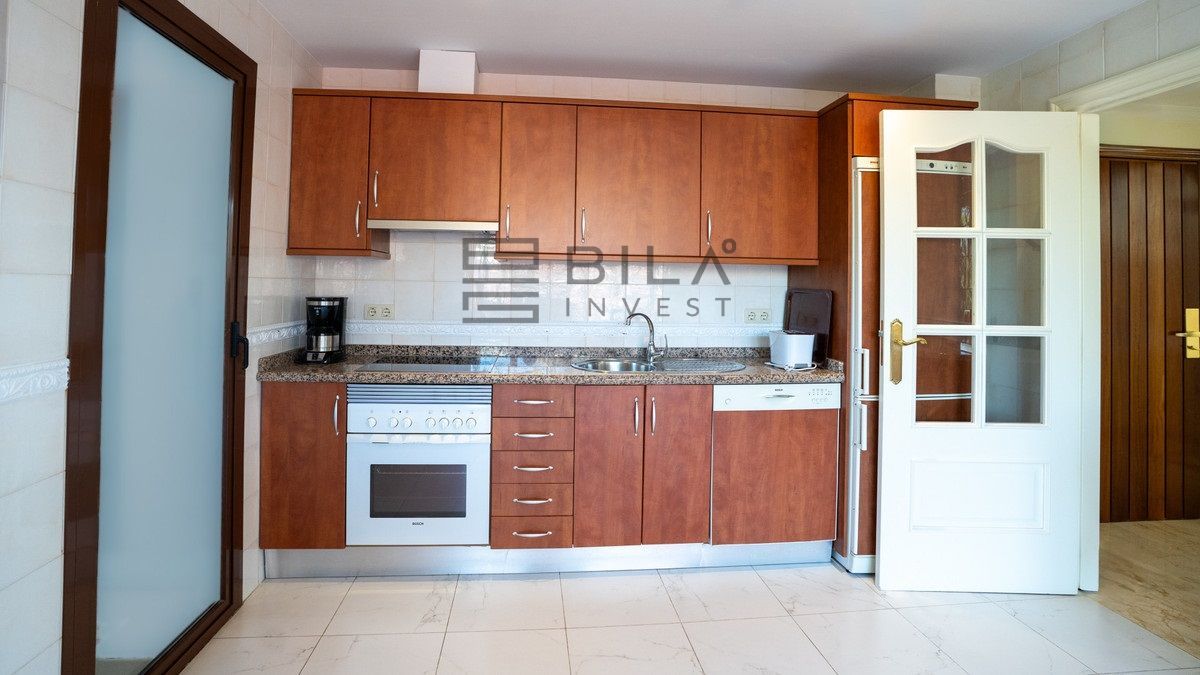 The interior spans an impressive 200m², featuring two beautifully designed bedrooms and two modern bathrooms. The bright and airy living room opens directly onto the covered terrace, creating a seamless flow between indoor and outdoor living. Additional features include fitted wardrobes, air conditioning, and an alarm system, ensuring year-round comfort and security. The property is presented in excellent condition and is ready for immediate occupation.