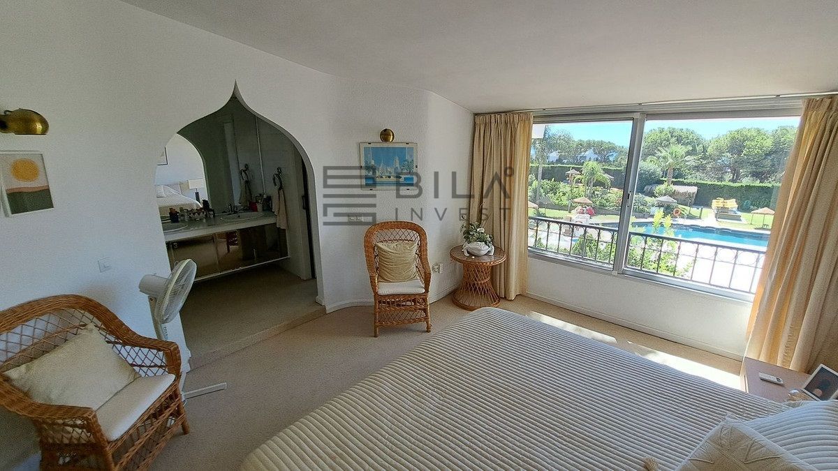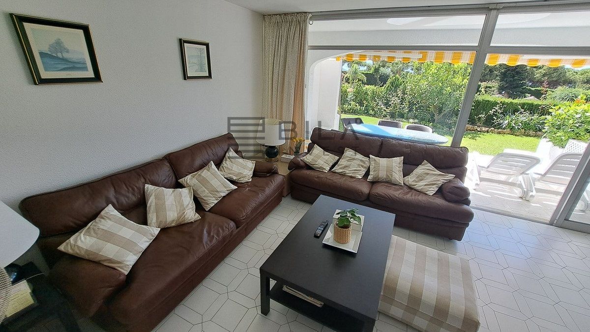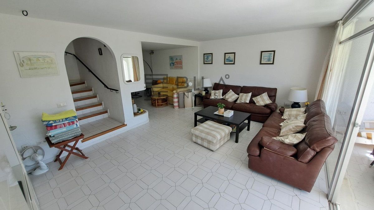 We are delighted to offer this lovely duplex town house in the very convenient location of Miraflores Resort. The property comprises:- Spacious lounge with open fireplace and dining area leading onto large terrace, fully fitted kitchen, master bedroom with en-suite bathroom and dressing room, two further bedrooms, family shower room and cloakroom. Sunny orientation. Lovely communal swimming pool with a bar and restaurant and sub-tropical gardens. Further features includes: additional patio, 24 hours security. Being sold fully furnished. Walking distances to the beach and bus stop.