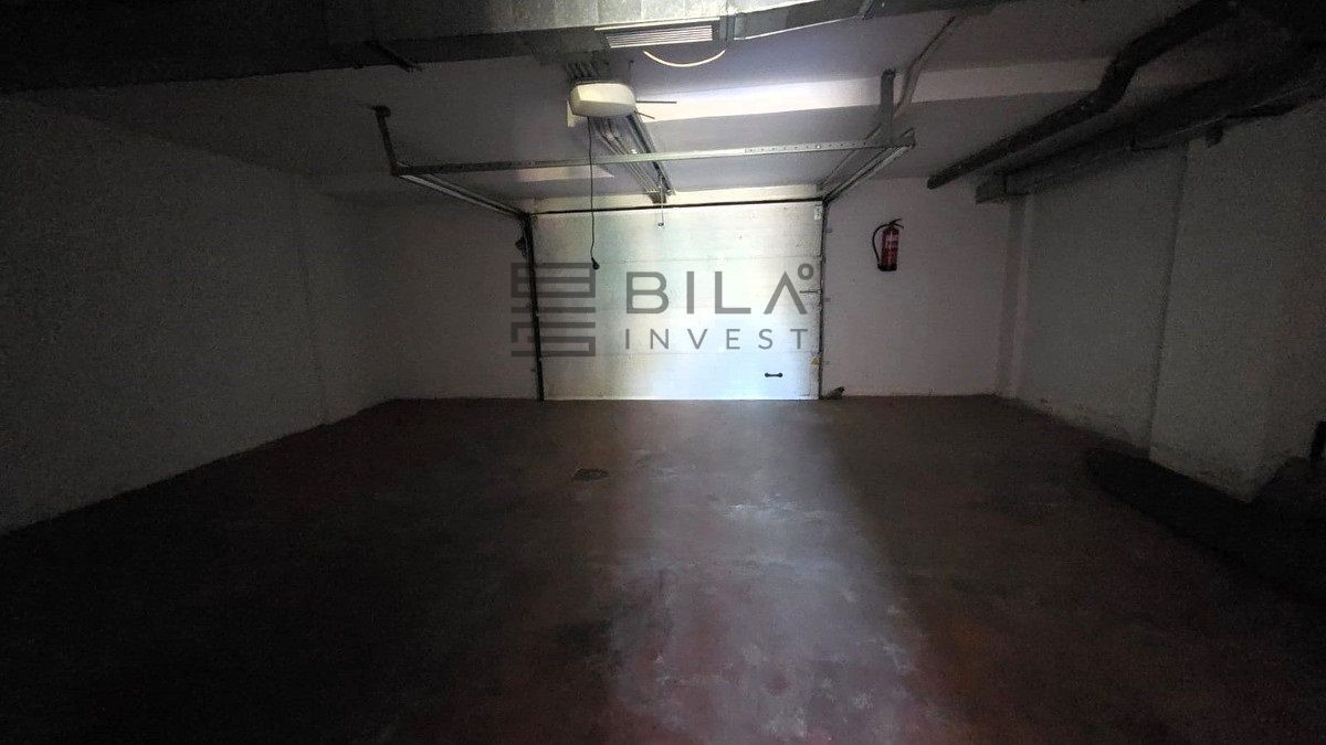 The private garage, located on the lower ground floor, offers dedicated access, ample space for storage, and parking for two vehicles.