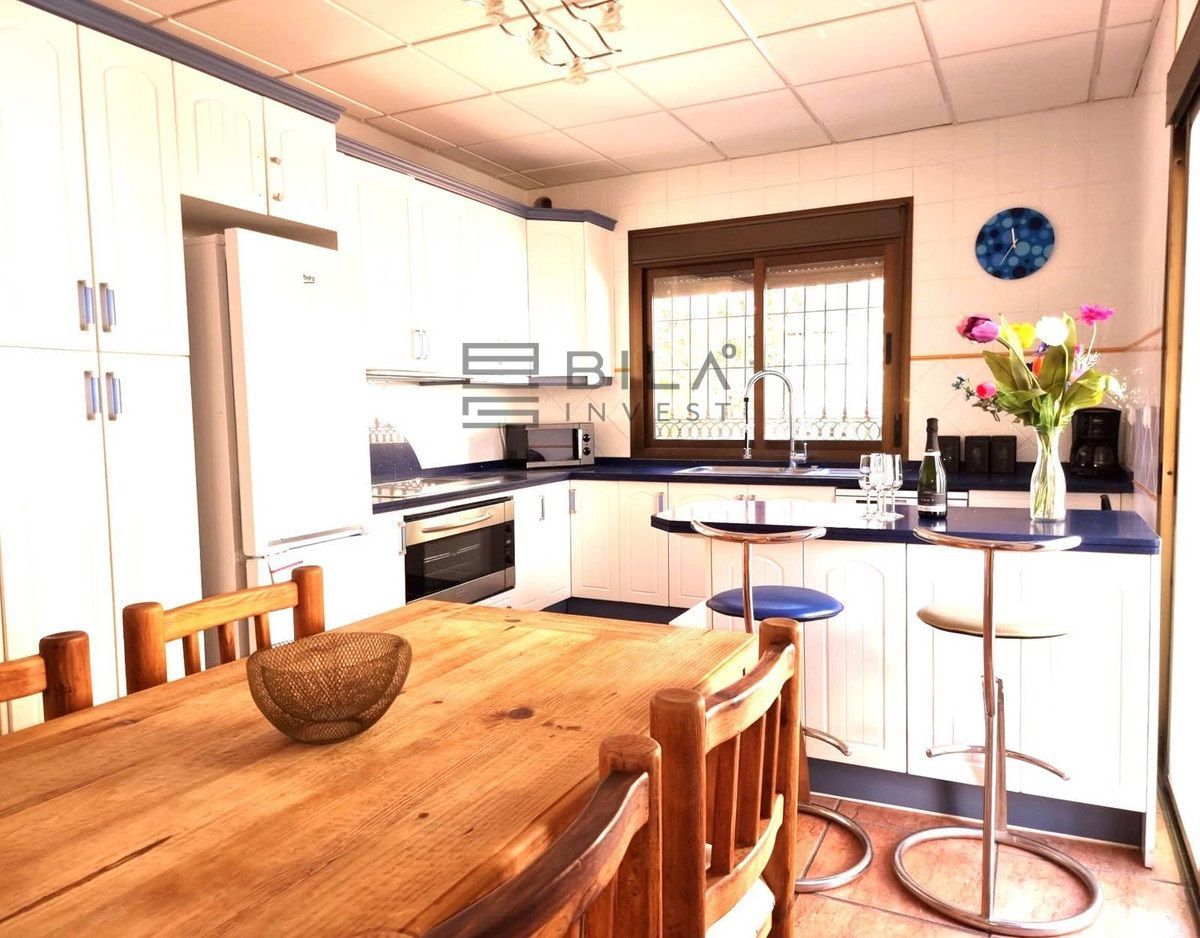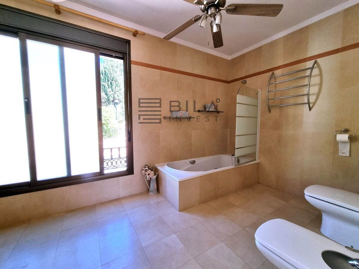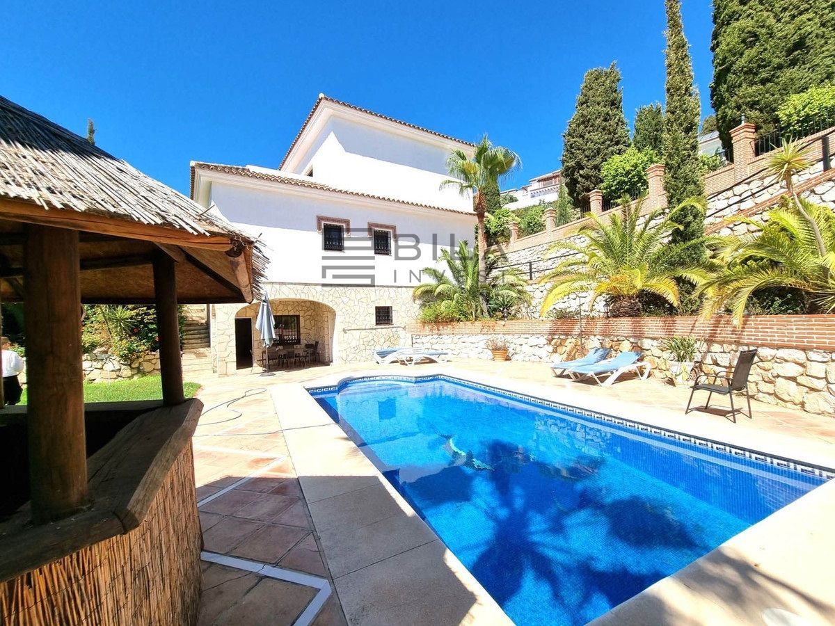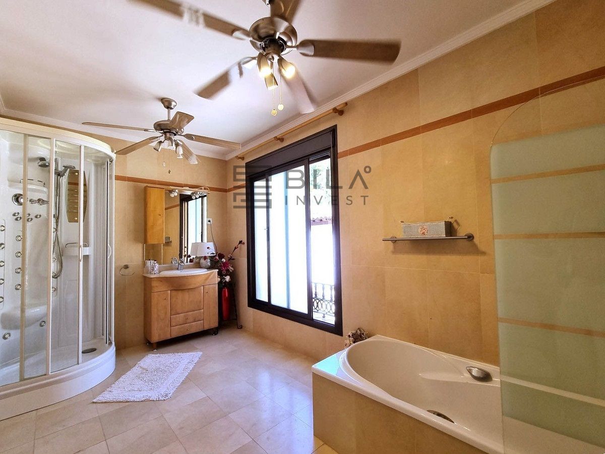 504 m2 built on a plot of 1111 m2. 5 Bedrooms, 4 bathrooms, 2 of them en-suite. Excellent build quality. Elevator to all 3 floors. Large open space on the ground floor that could. 2 storage water tanks downstairs, with laundry room and access to the outside patio and garden area with a large pool with mosaic dolphin on the bottom. Surrounded by an extensive terrace are with mature palm trees. Shower room and toilet. Tiki bar next to the pool.
