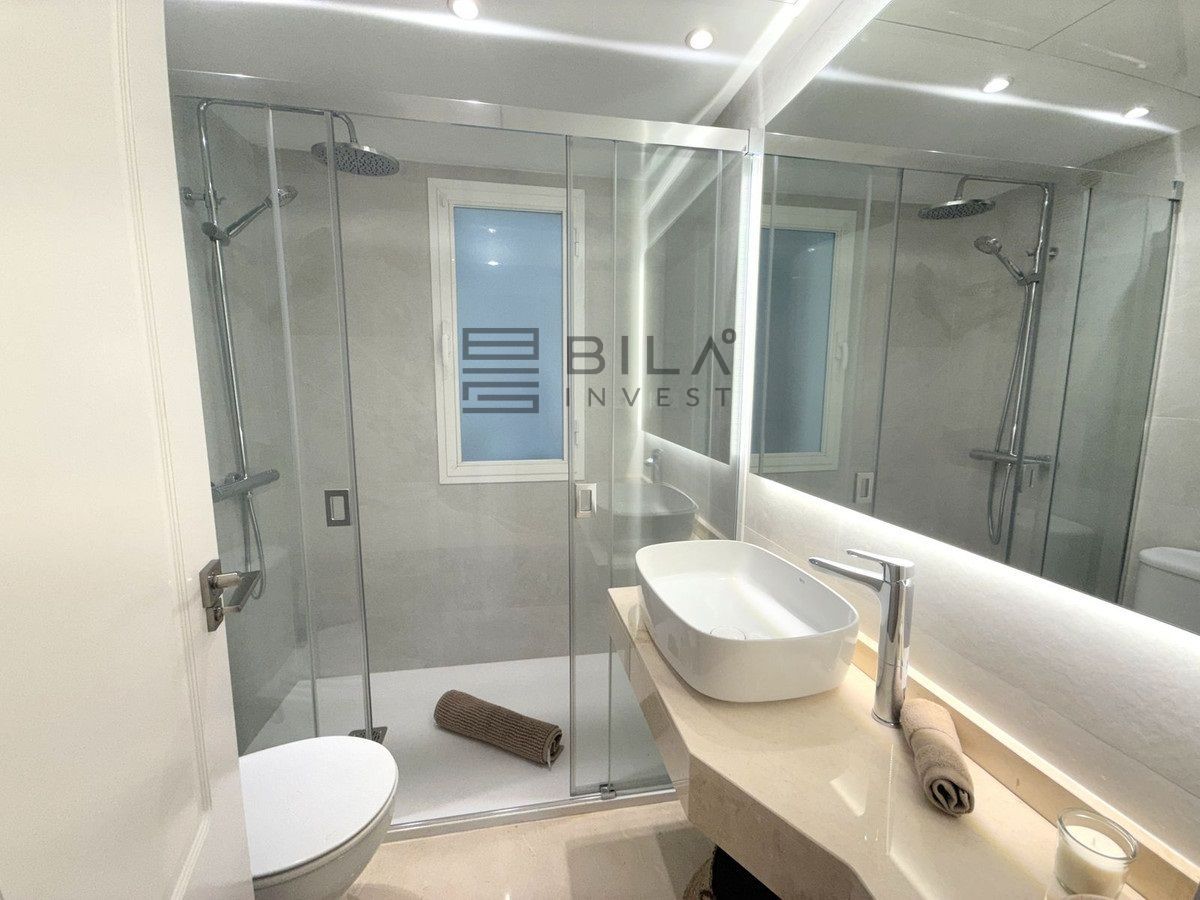 You have a master suite that opens onto the terrace with an en-suite bathroom and a guest bedroom that has just off a newly installed modern walk in shower room. This suite has its master bathroom which retains its marble design, with bathtub. It has a state-of-the-art hotel safe, with capacity to store Notebooks. To ensure silence at night, it has a double sliding window with double glazing. It comes with an electric blind.