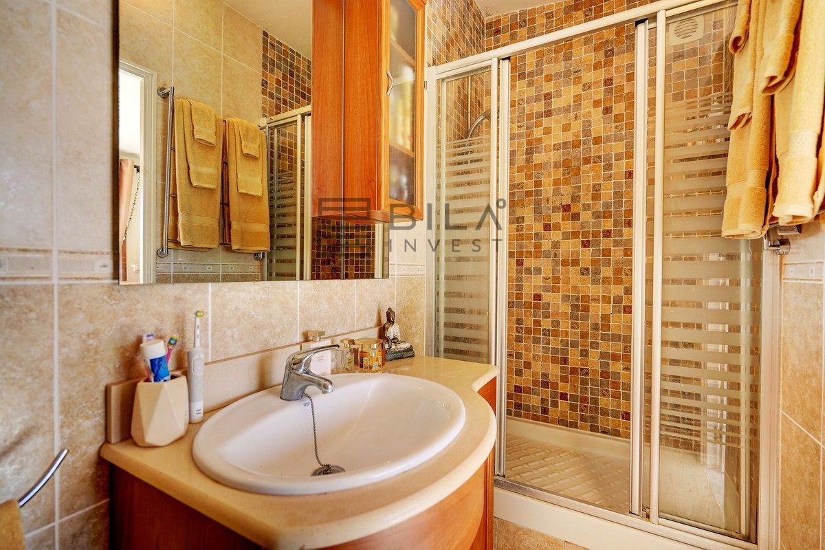 Upstairs is a private master suite with ensuite bathroom and its own terrace, offering beautiful sea views. With marble floors, double glazing, air conditioning, private garage and fibre optic internet, the home is stylishly presented and key-ready. This charming villa is an ideal turnkey purchase in a top location.