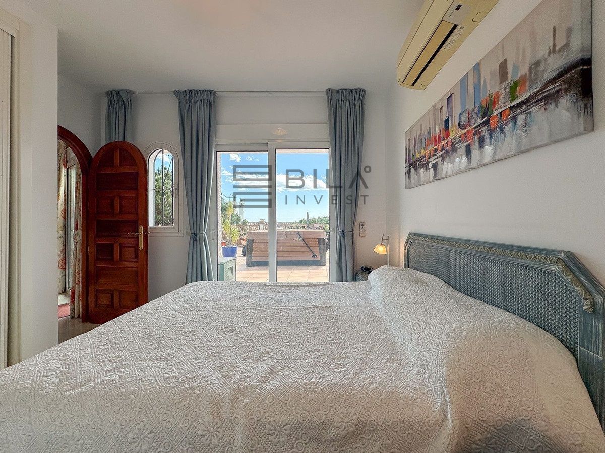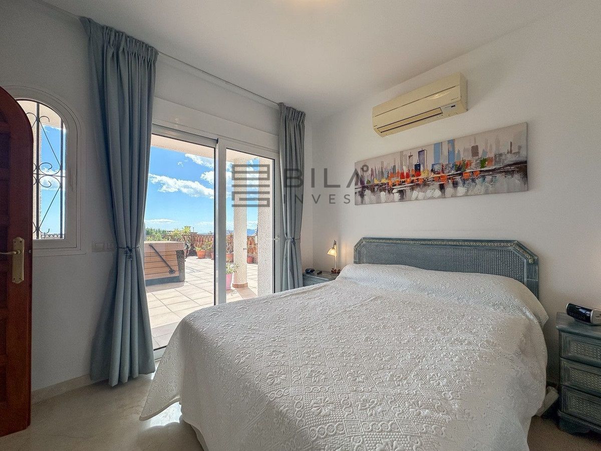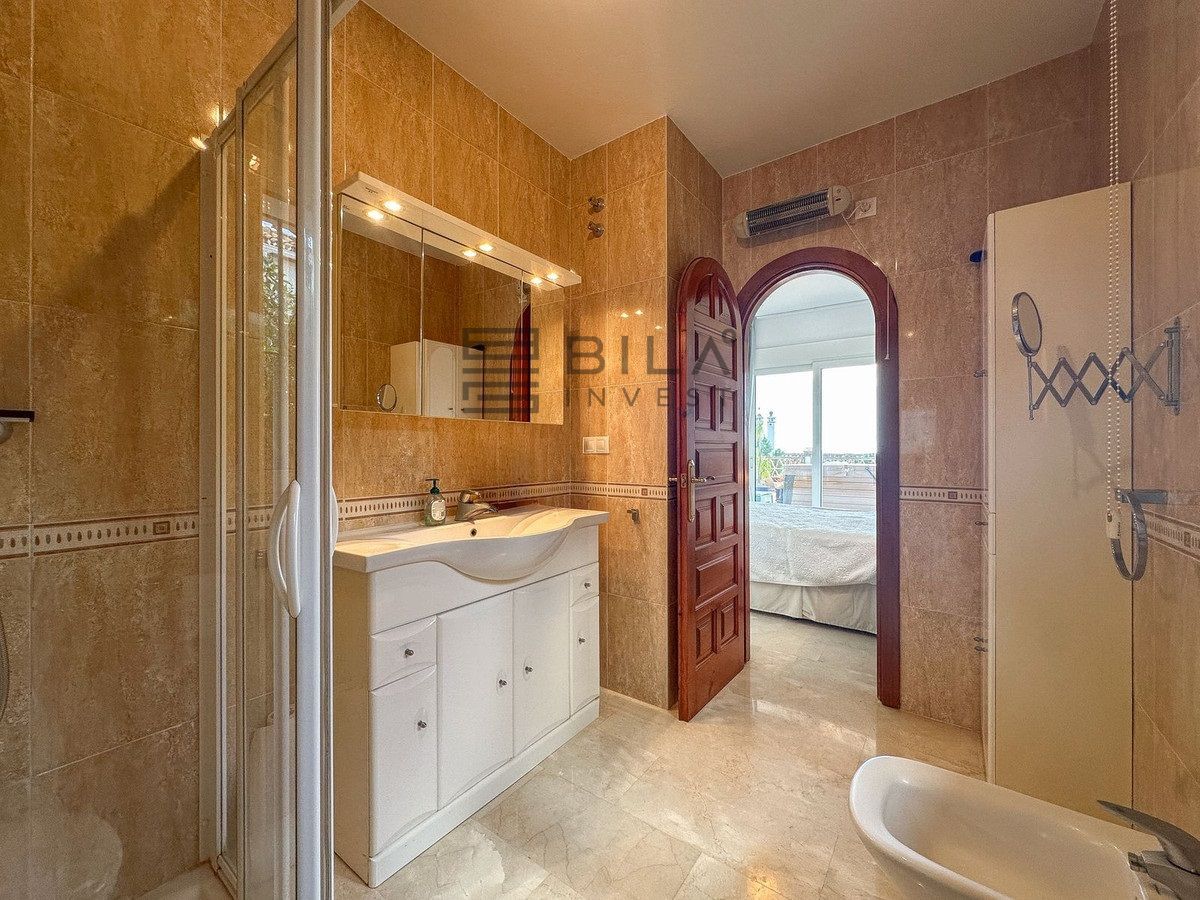 Outside, the villa boasts a large terrace of almost 129m2, providing ample space to enjoy the sunny climate and the attractive Spanish architectural touches on the white exterior as you relax by your private pool. The property also includes a small fruit garden with citrus, orange, and avocado trees. Ascend to the stunning 22m2 rooftop terrace and enjoy breathtaking panoramic views encompassing the sea, the Mijas mountain, and the picturesque white-washed village of Mijas Pueblo.