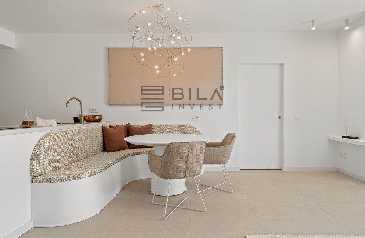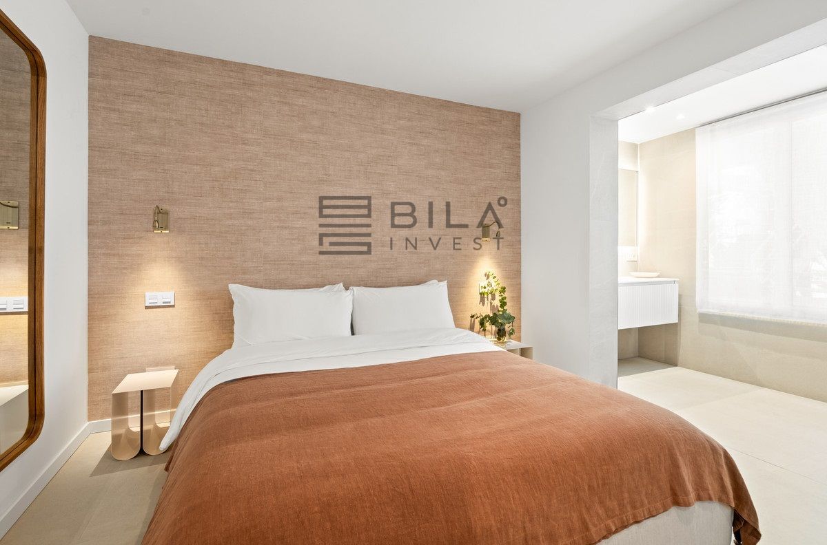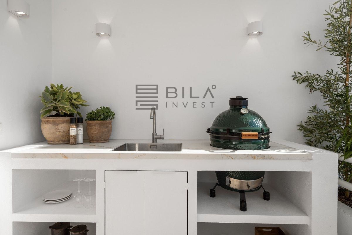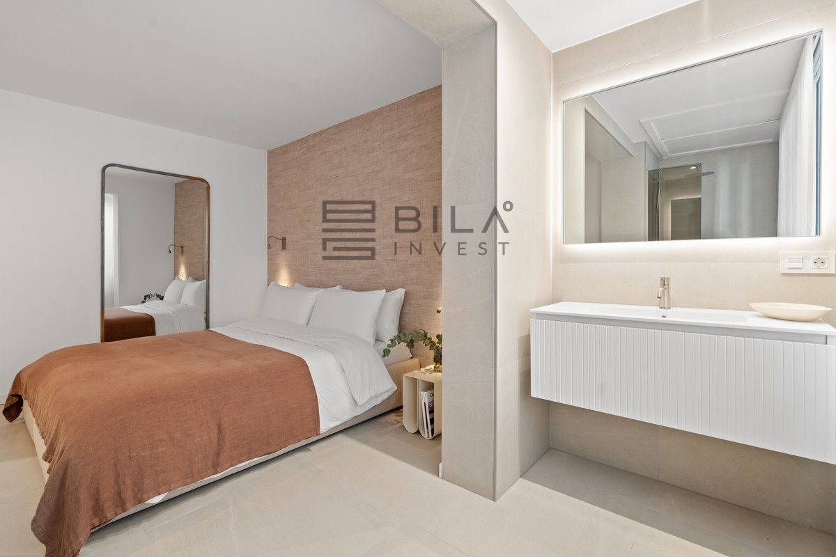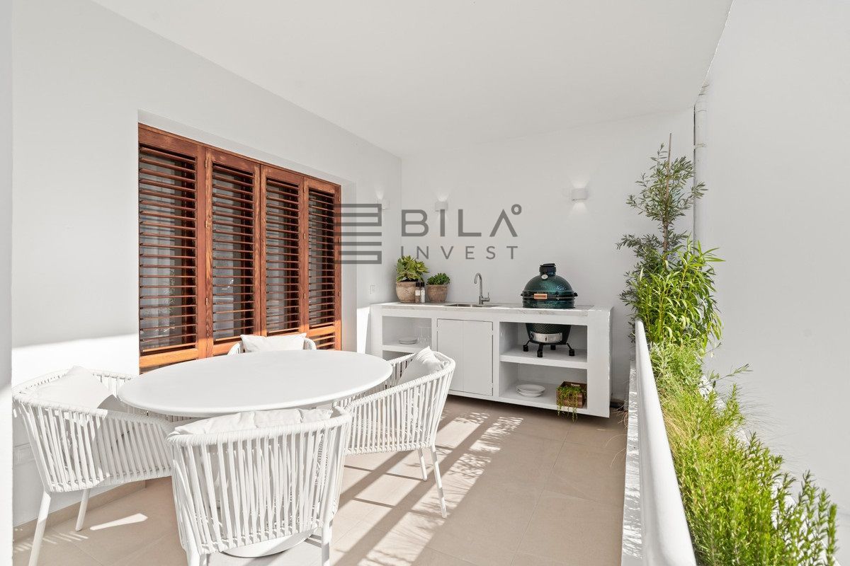 This renovated apartment is located in Alcores del Golf, a south-facing property with plenty of natural light and a clean, minimalistic design. The open-plan layout connects the living area with a modern kitchen, and the large terrace features a barbecue, dining area, and a relaxing outdoor space with views of the greenery.