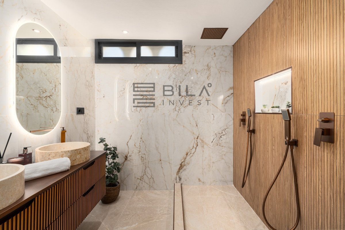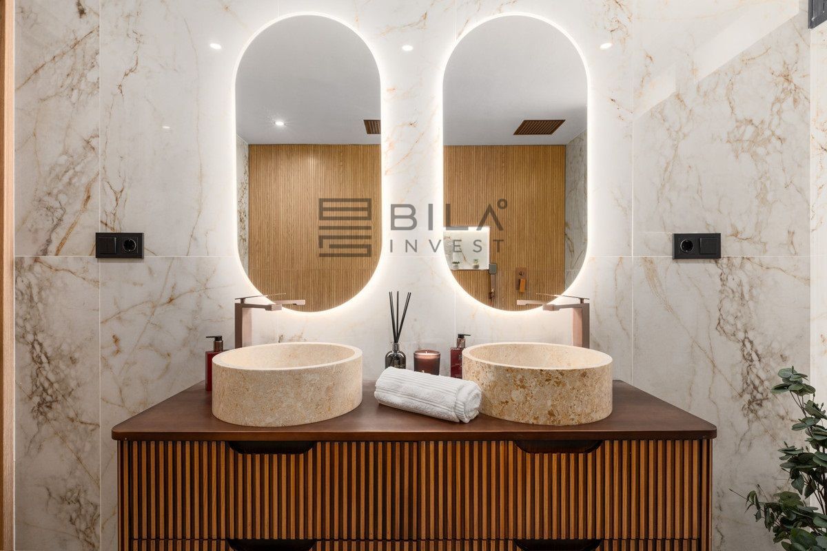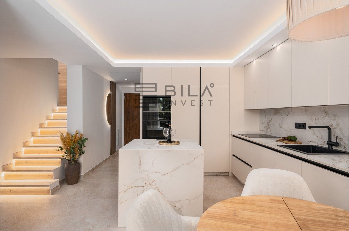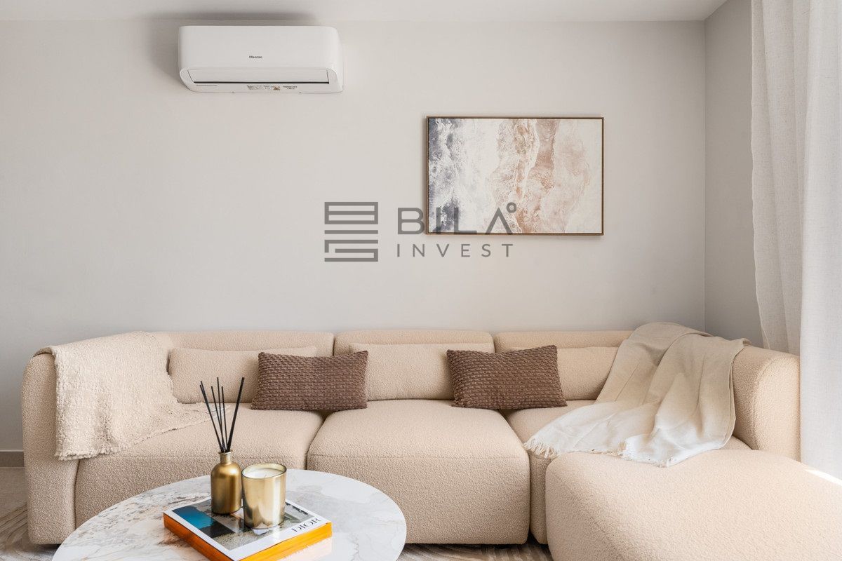 Constructed with precision and a focus on high-end materials, this residence reflects both aesthetic harmony and practical elegance. The interior showcases a Scandinavian-inspired design ethos that is both calming and functional. The kitchen, outfitted with premium Siemens appliances, sits at the heart of the home, enabling effortless flow into the open-plan dining and living areas. Double-glazed windows and energy-efficient installations ensure the penthouse remains a peaceful and climate-conscious retreat.
