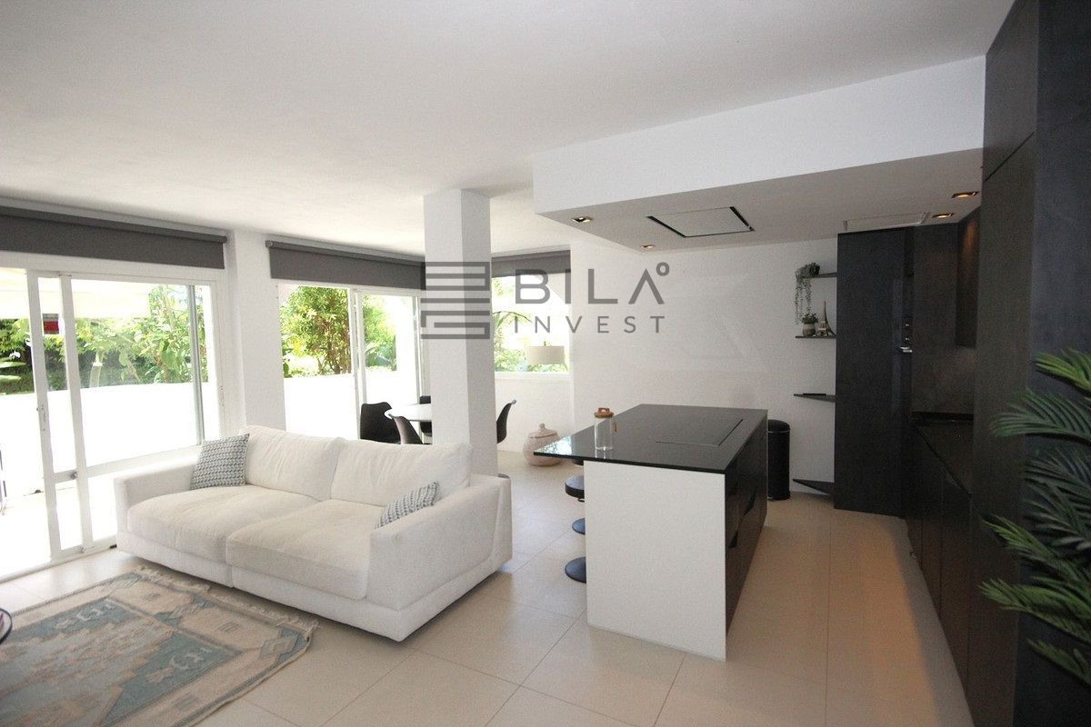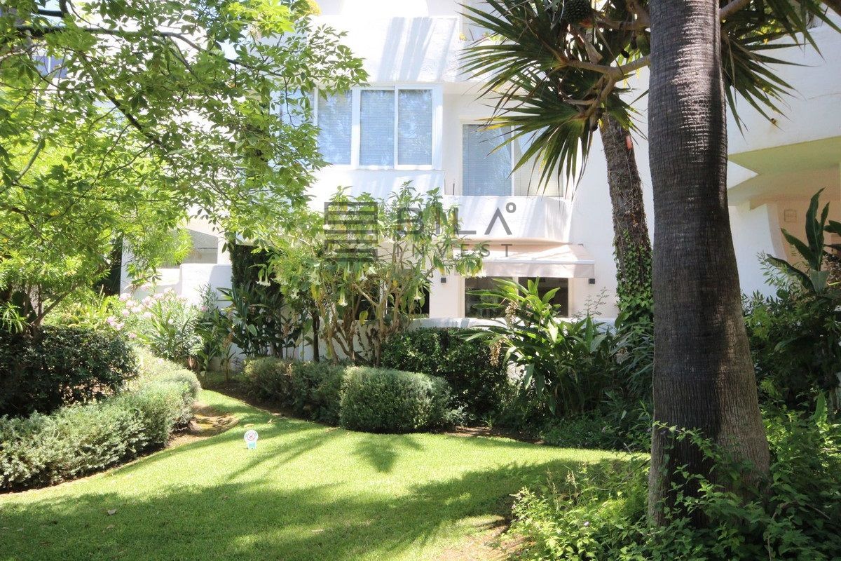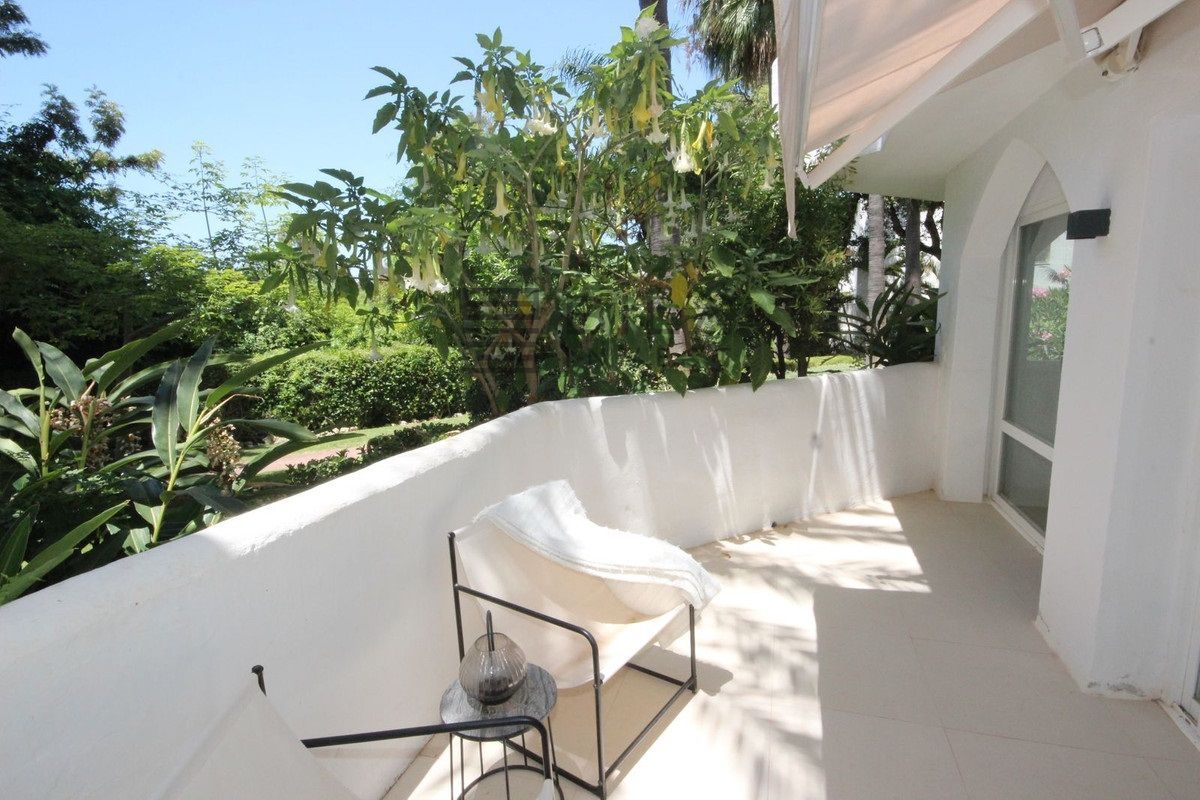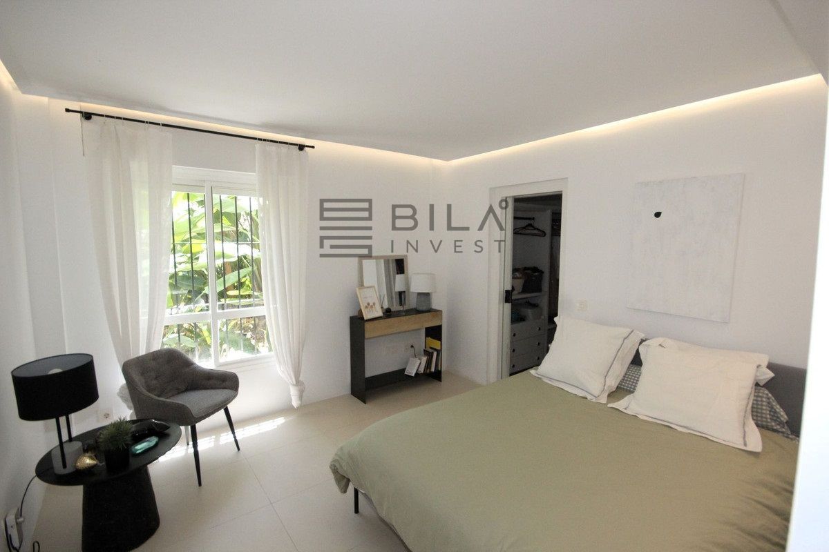 Discover this spacious ground floor apartment, a true gem in Marbella East, that perfectly combines romantic Andalusian-style architecture with a modern design and renovation.