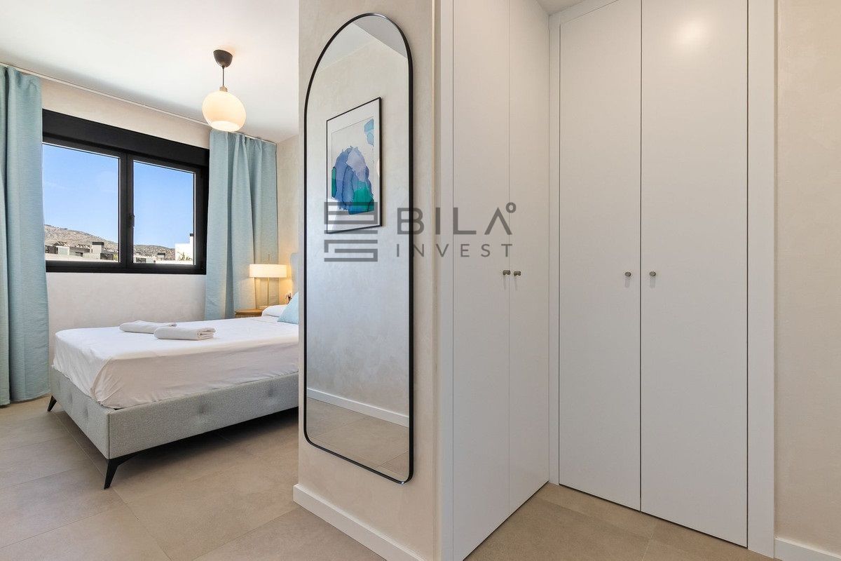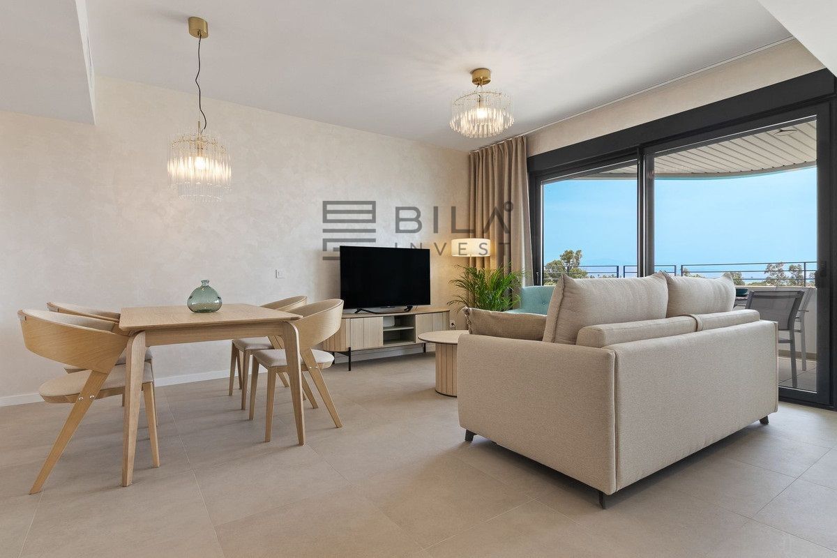 From the moment you enter, floor-to-ceiling windows reveal sweeping panoramic views of the Mediterranean Sea and majestic mountains, infusing every corner with natural light and an uplifting sense of space. Designed with meticulous attention to detail, the interiors blend soft contemporary lines with premium finishes, creating a serene ambiance that soothes the senses.