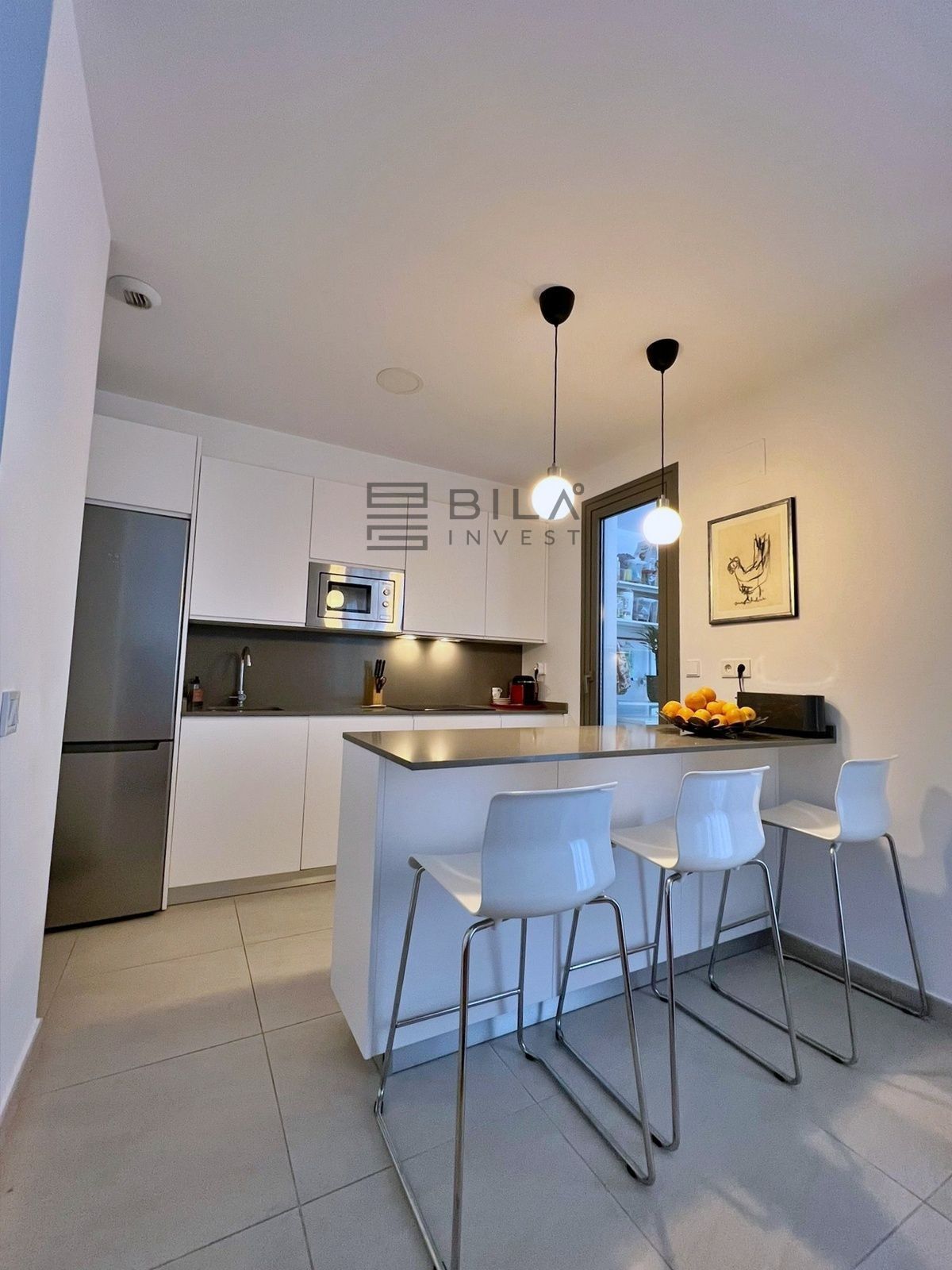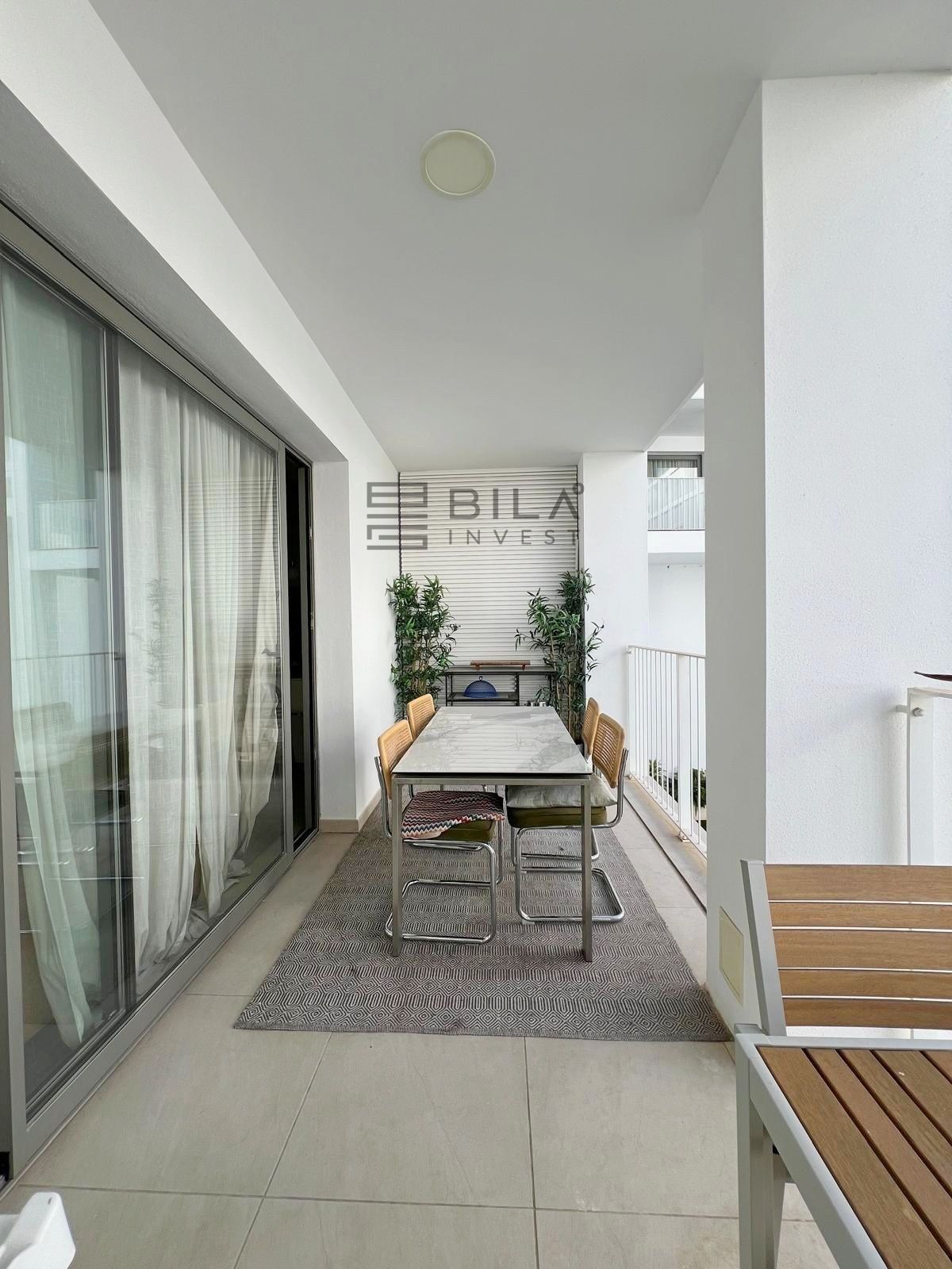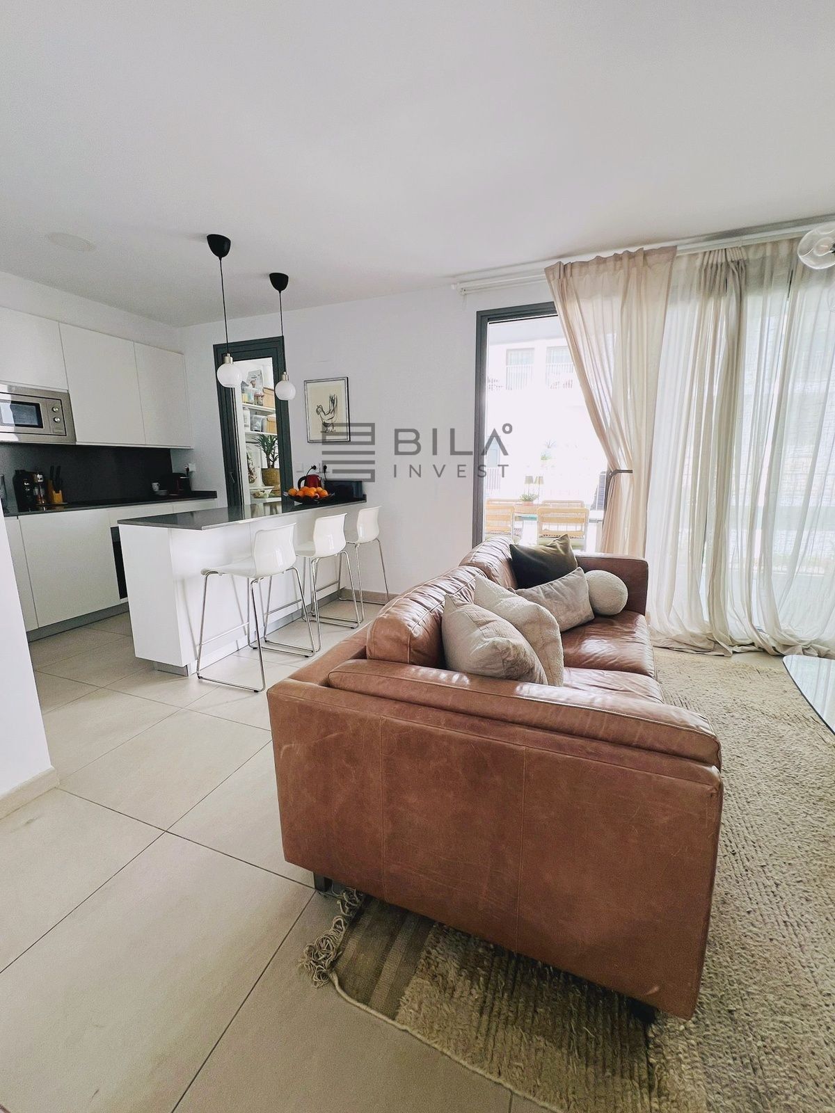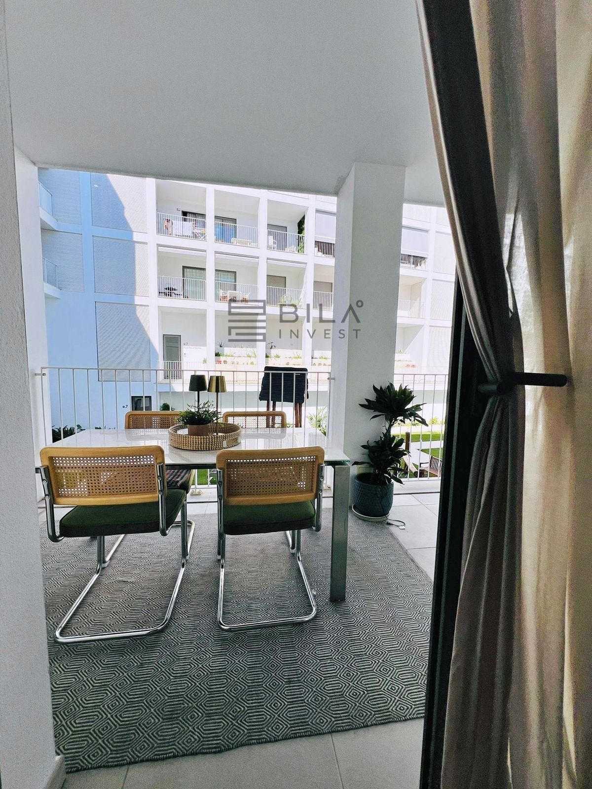 The apartment is tastefully furnished with modern, high-quality furniture and is ready to move in. The open-plan living and dining area connects directly to the terrace, creating a bright and welcoming space. The kitchen is fully equipped with contemporary appliances, and both bathrooms are stylishly finished.
