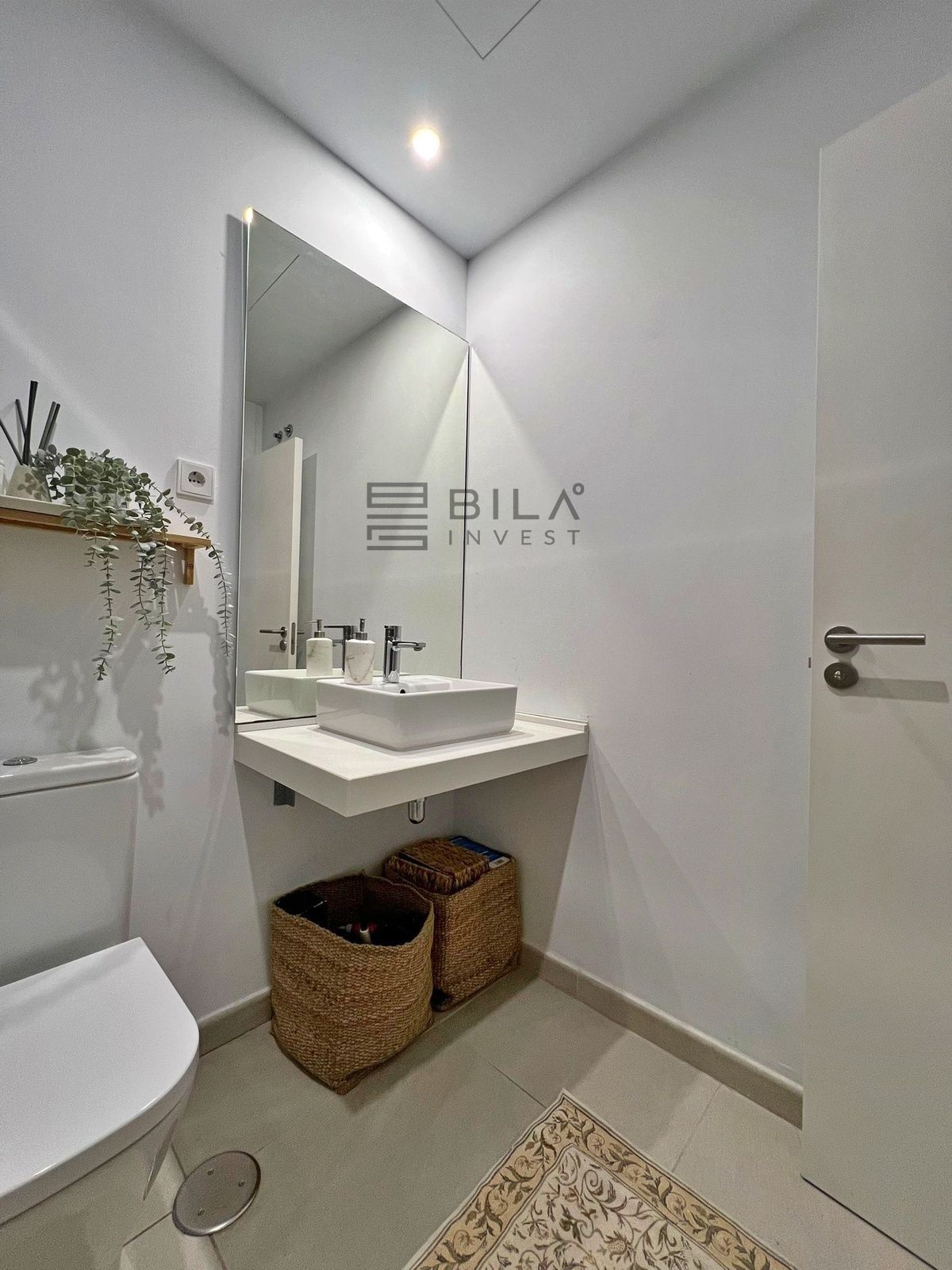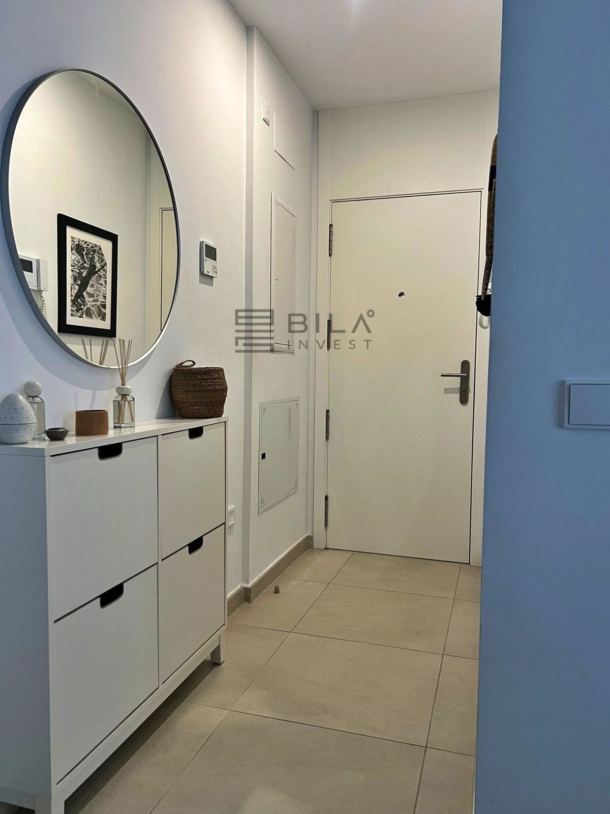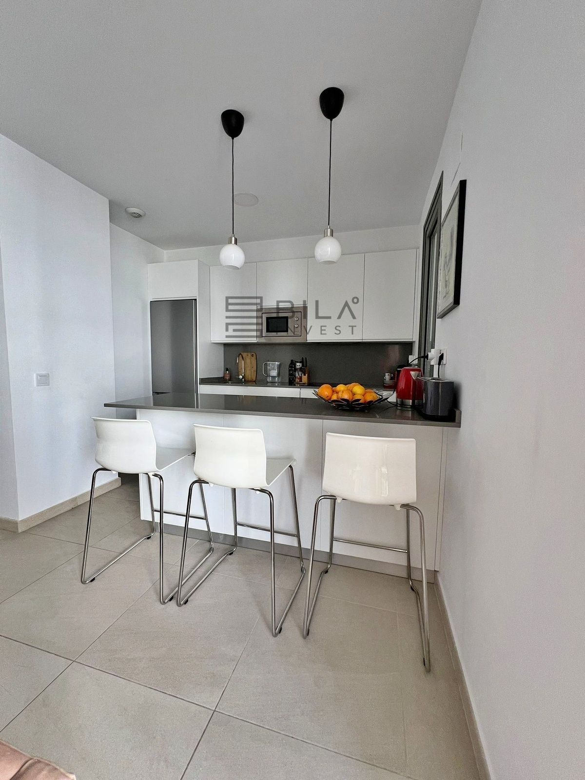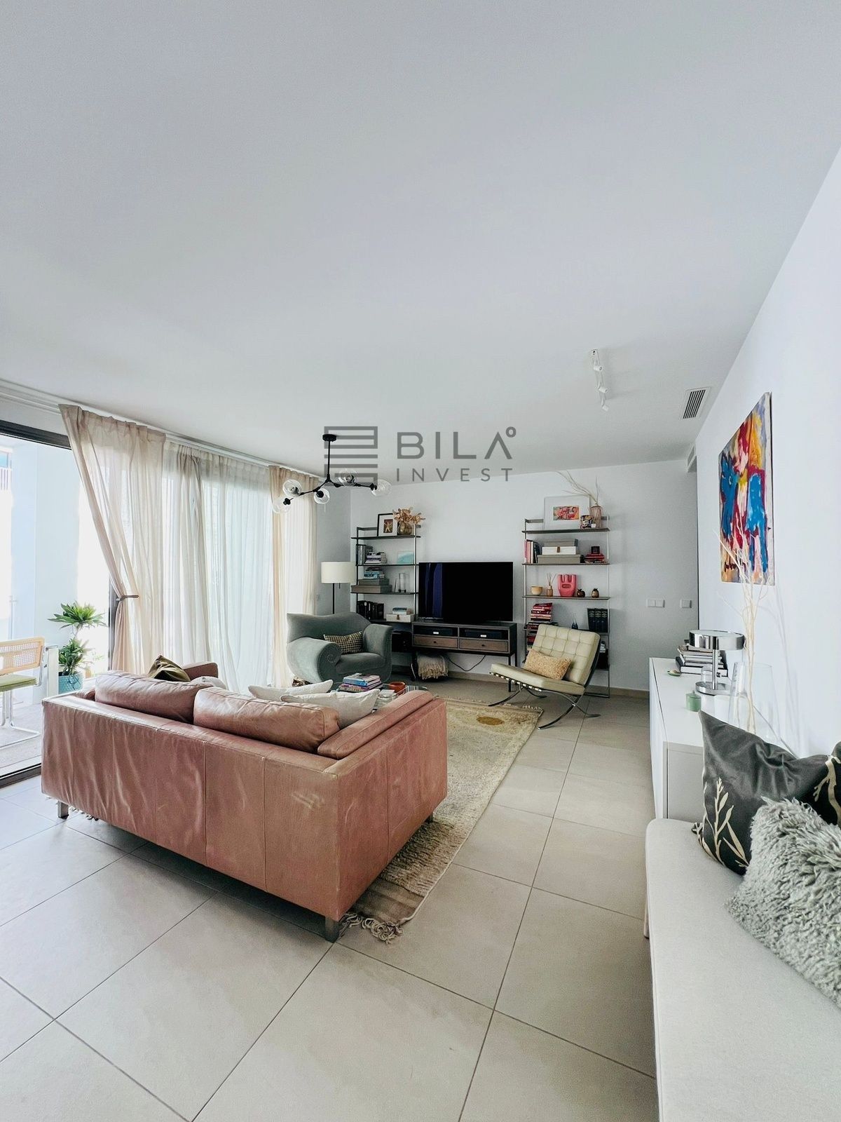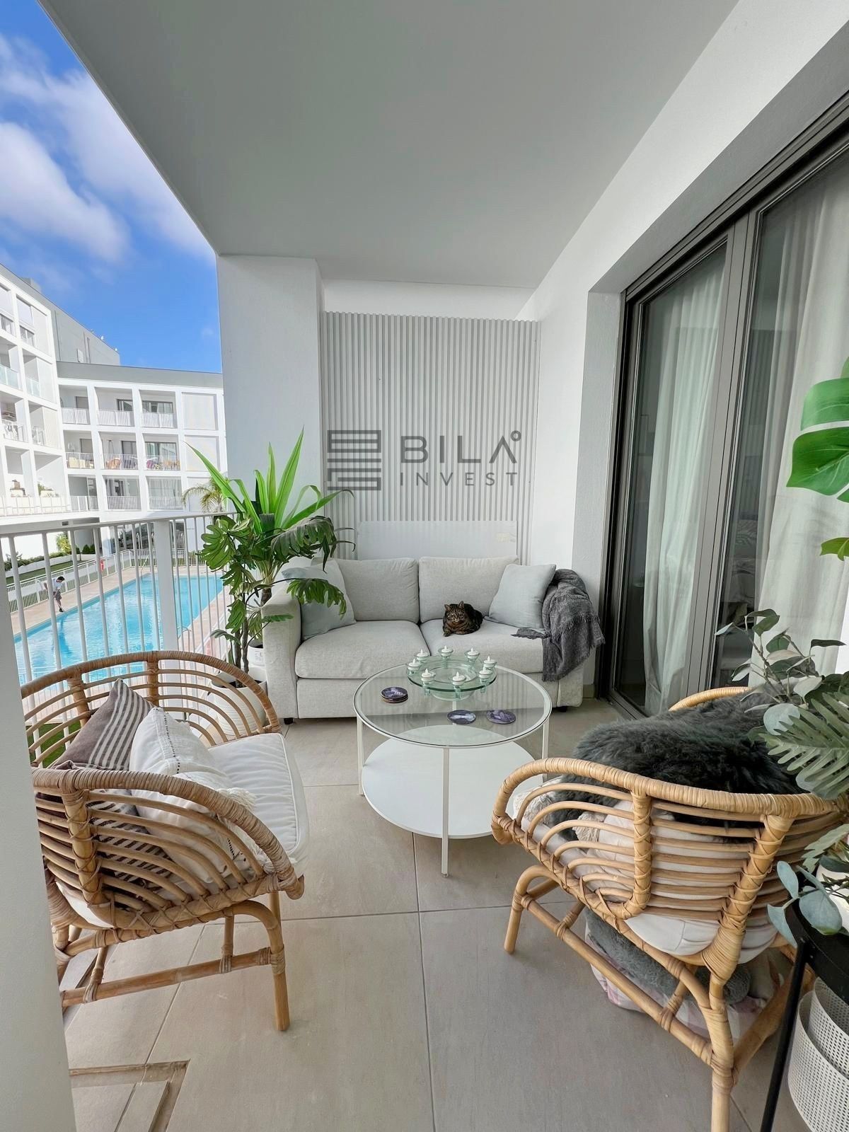 The apartment is tastefully furnished with modern, high-quality furniture and is ready to move in. The open-plan living and dining area connects directly to the terrace, creating a bright and welcoming space. The kitchen is fully equipped with contemporary appliances, and both bathrooms are stylishly finished.