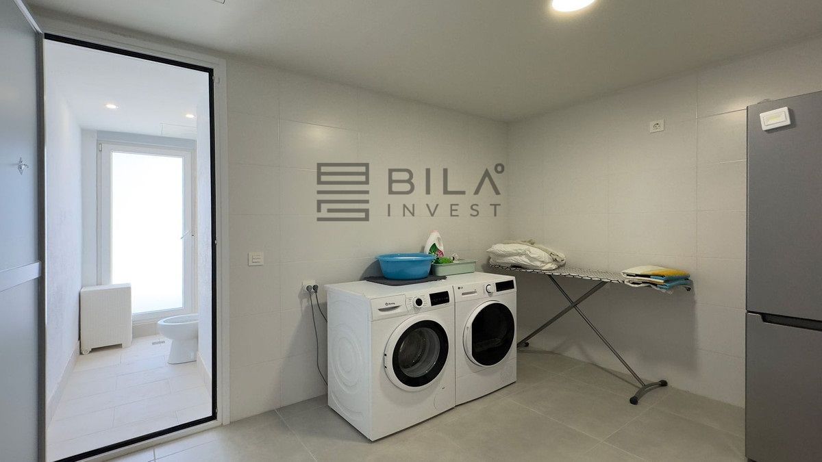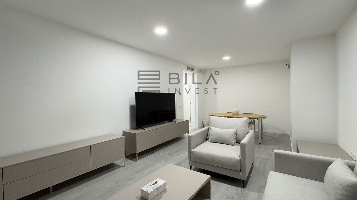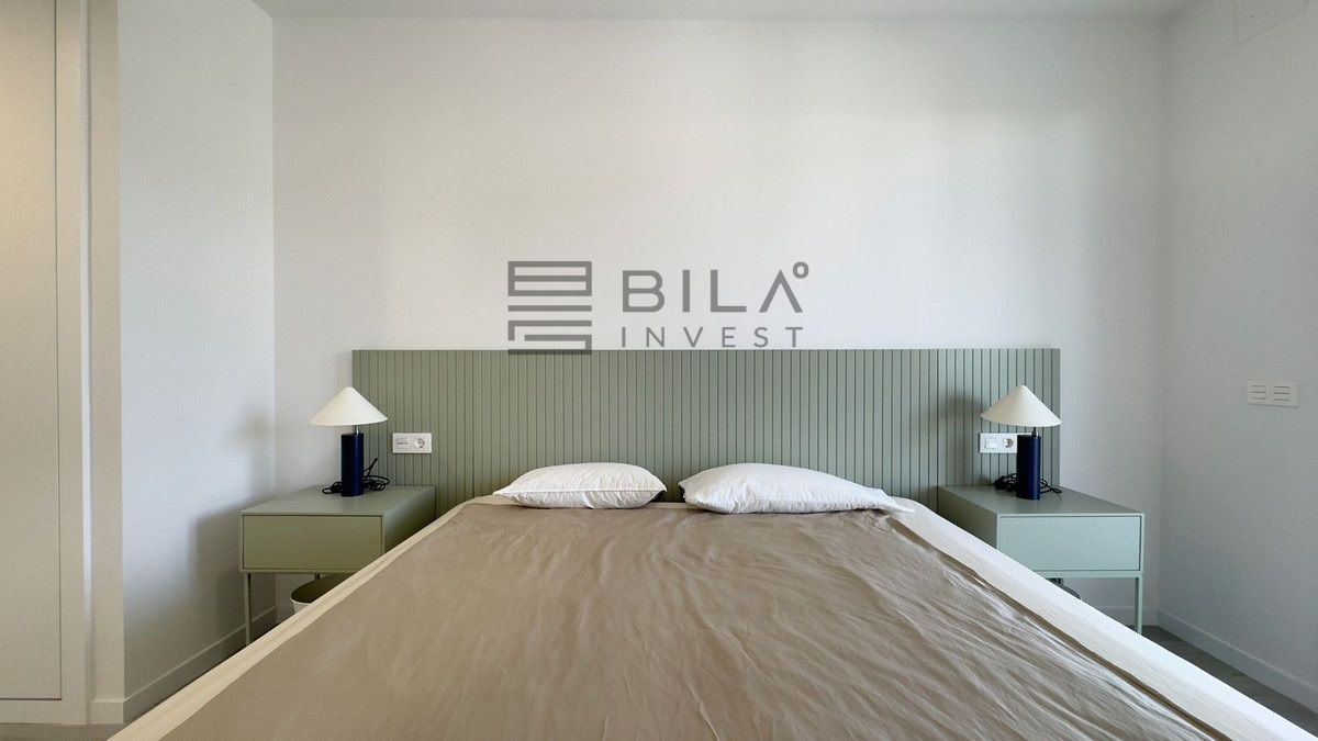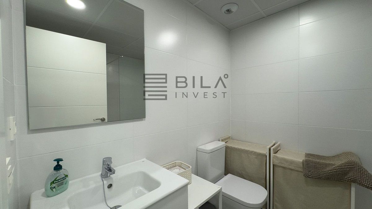 The apartment has a bright open-plan living-dining room, the kitchen is fully equipped with appliances.