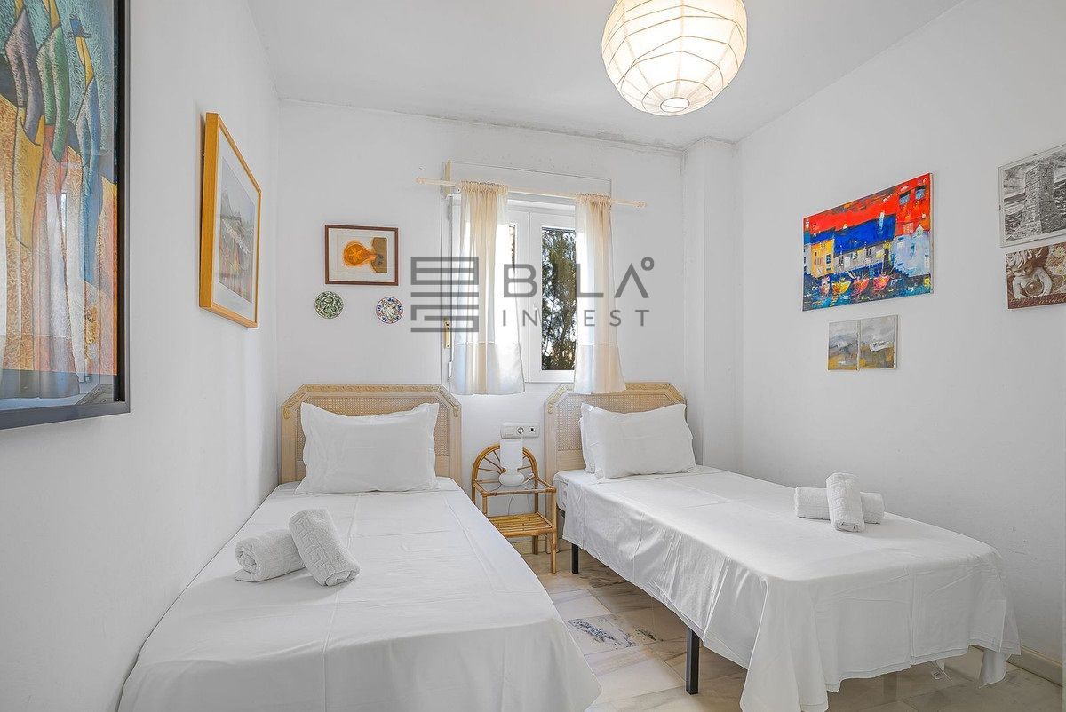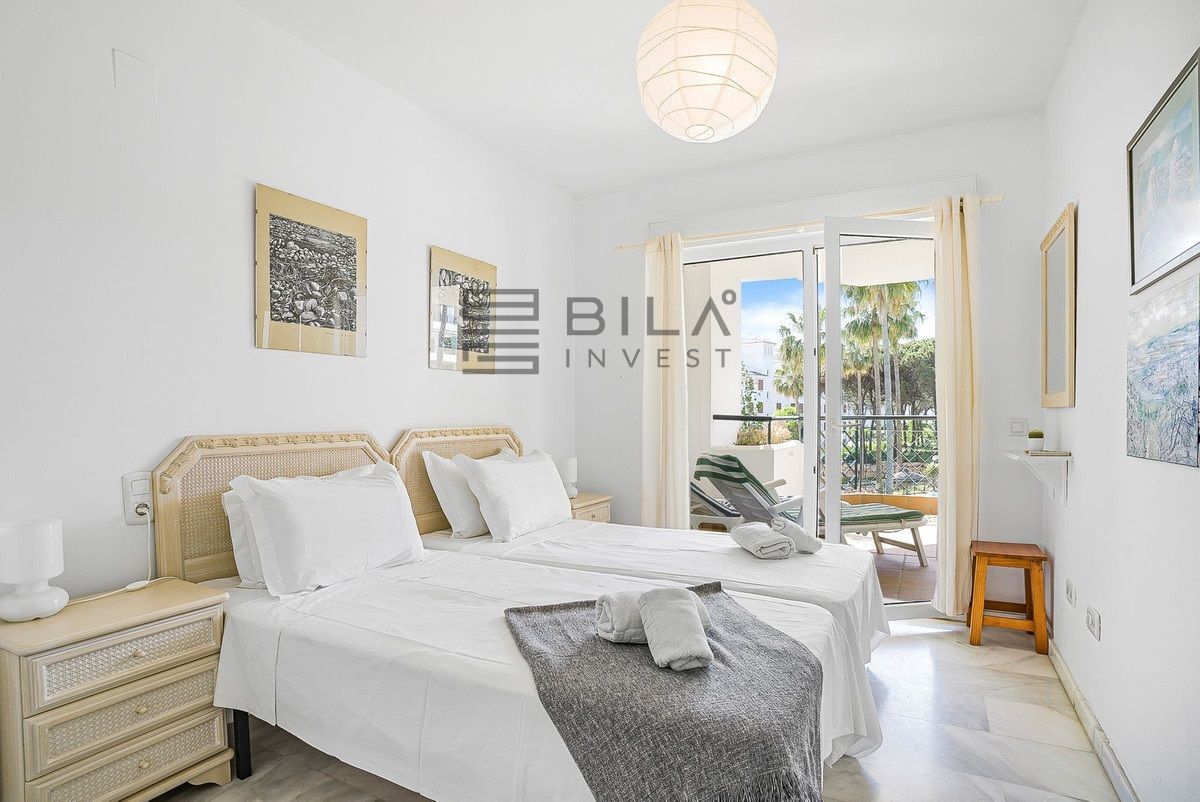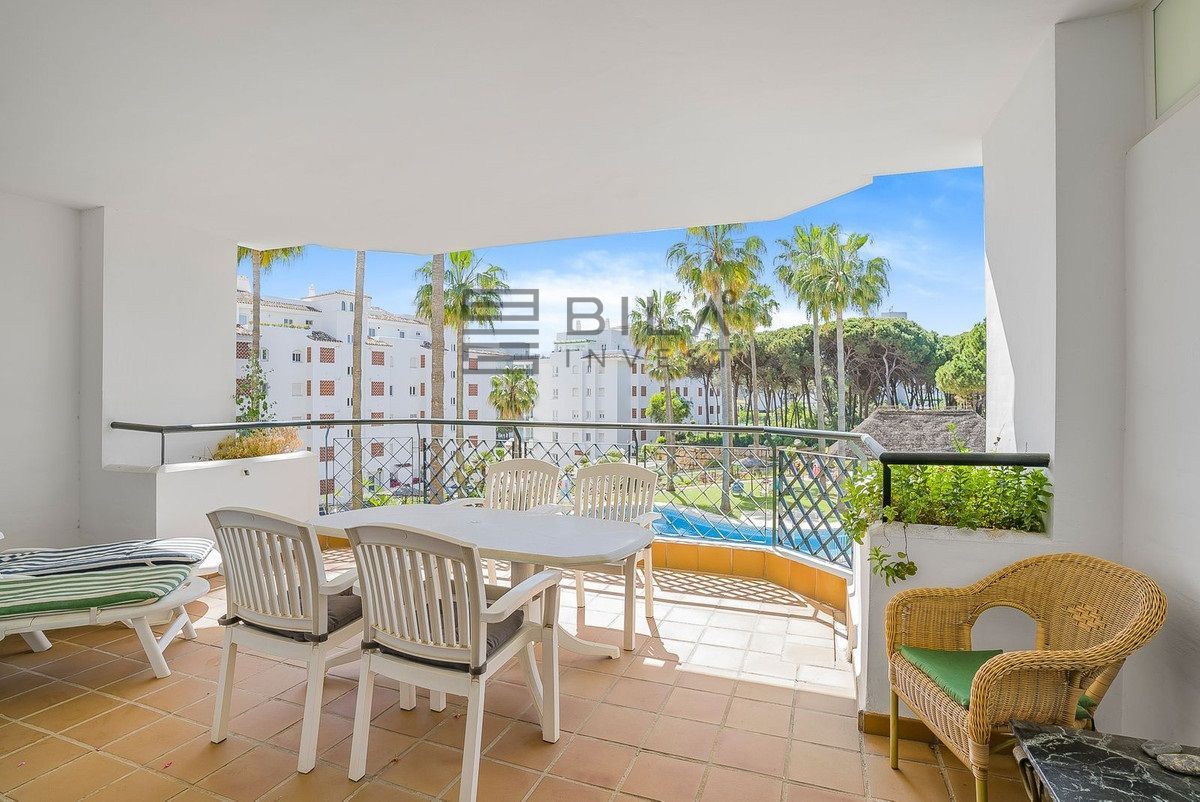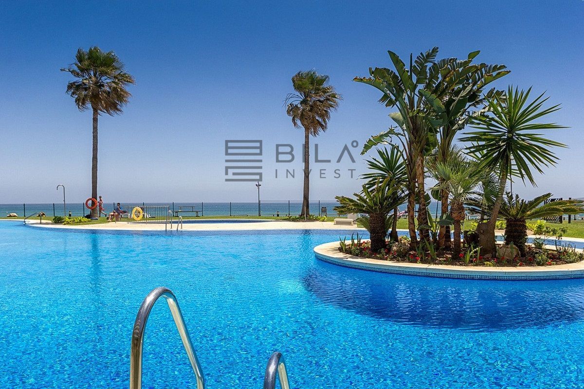 LOCATION! Discover the perfect coastal retreat with this beachfront first-floor apartment located in the prestigious community of Calahonda. This charming flat features two spacious bedrooms and two bathrooms, providing ample space for relaxation and comfort. Enjoy year-round climate control with air conditioning throughout, ensuring a pleasant atmosphere no matter the season.