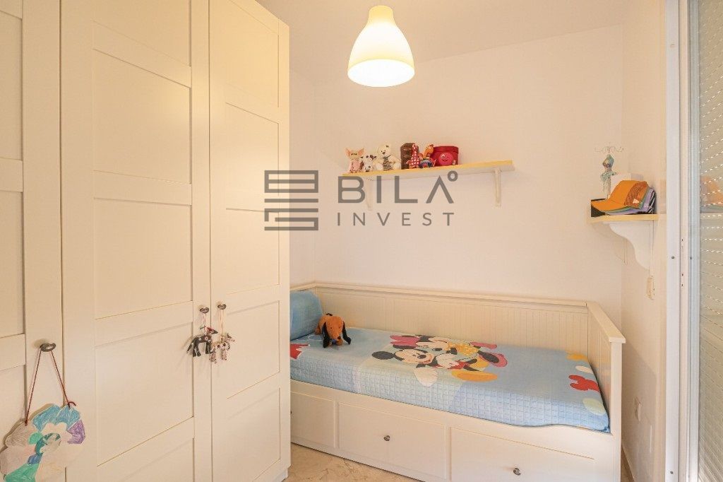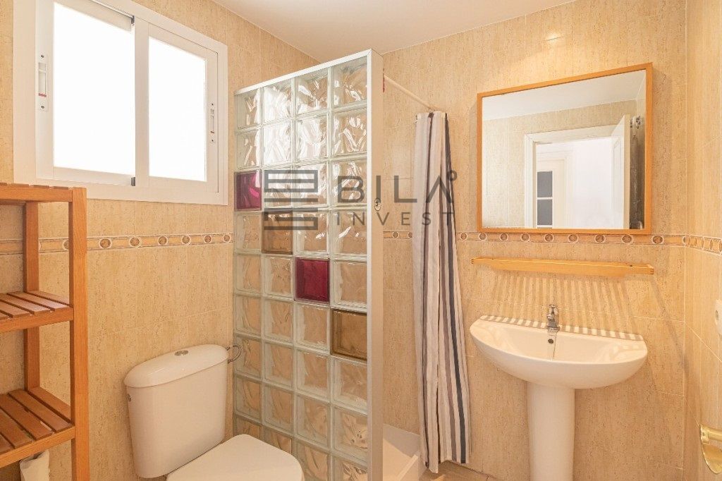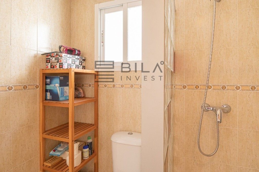 Returning to the interior, we find 2 bedrooms and 2 bathrooms. The master bedroom can accommodate a double bed, with a built-in wardrobe and en-suite bathroom. The second bedroom has direct access to the large sunny terrace, and there is also another bathroom with a shower.