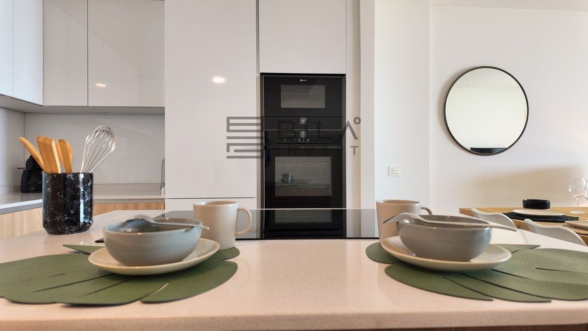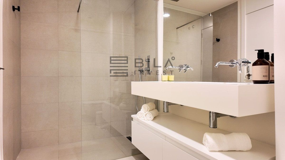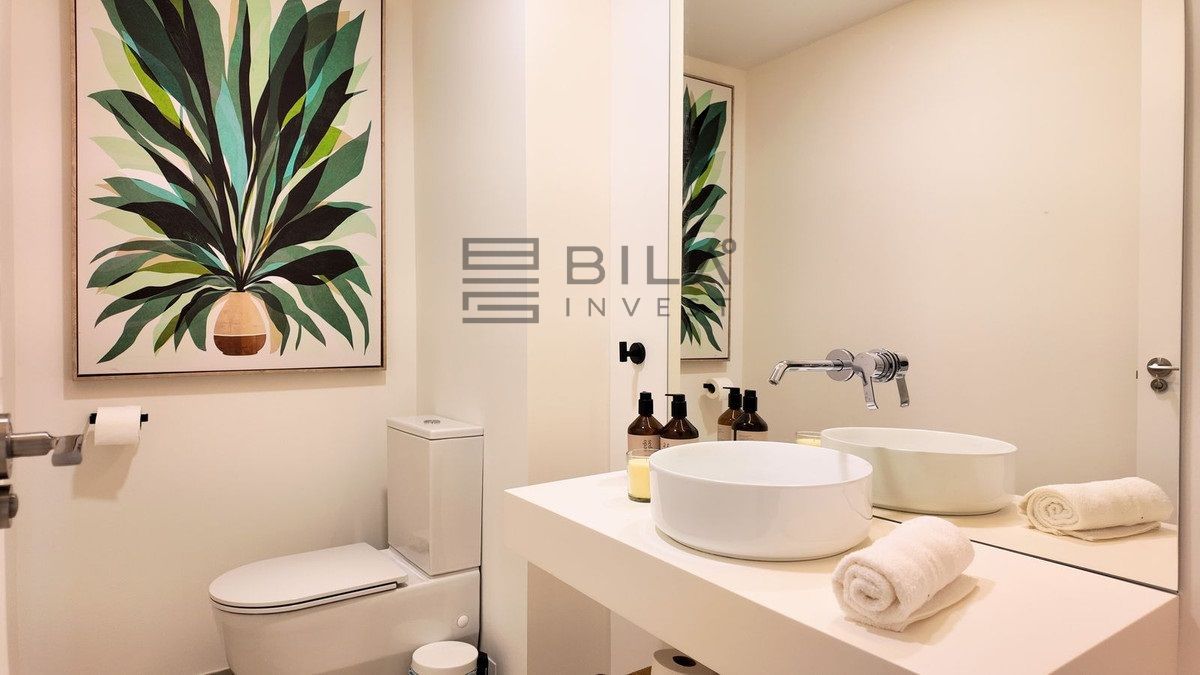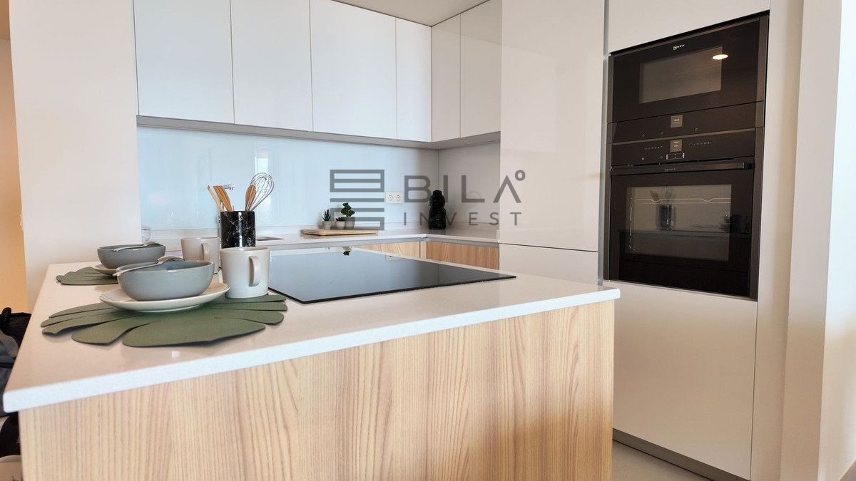 This opulent two-bedroom, two-and-a-half-bathroom apartment spans 100m² and meets the highest standards, featuring premium kitchens and bathrooms designed by Gunni & Trentino and Neff. Modern conveniences, including climate control and pre-installed smart home automation, enhance your living experience.