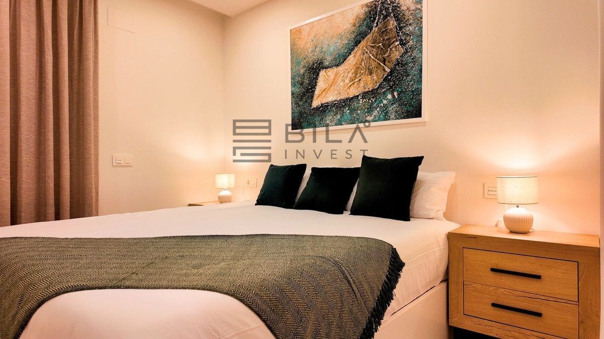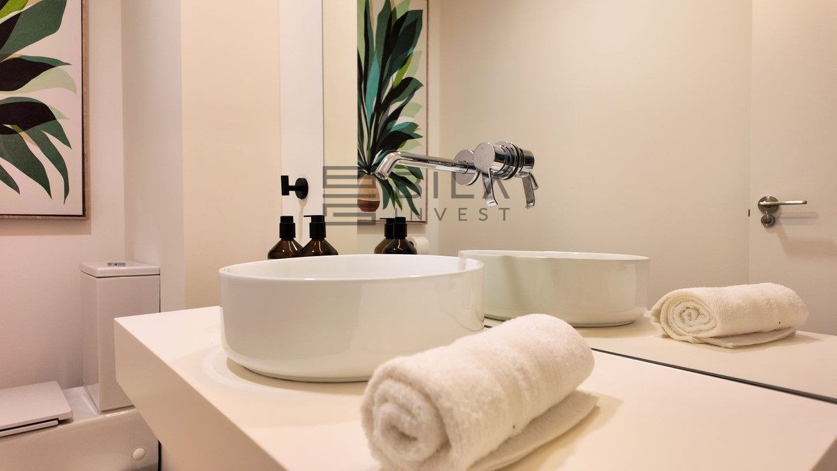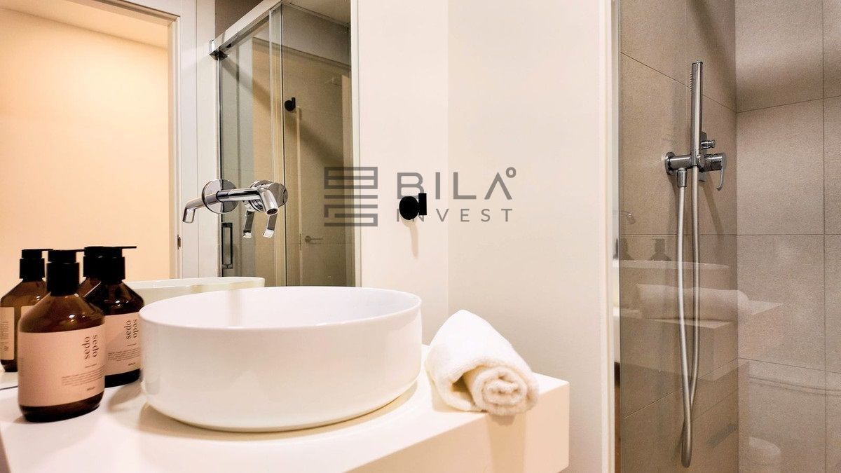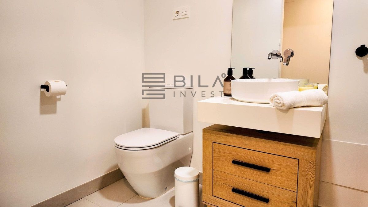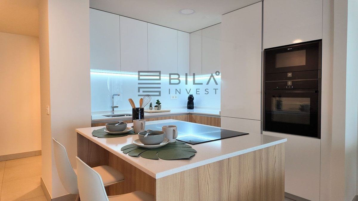 This opulent two-bedroom, two-and-a-half-bathroom apartment spans 100m² and meets the highest standards, featuring premium kitchens and bathrooms designed by Gunni & Trentino and Neff. Modern conveniences, including climate control and pre-installed smart home automation, enhance your living experience.