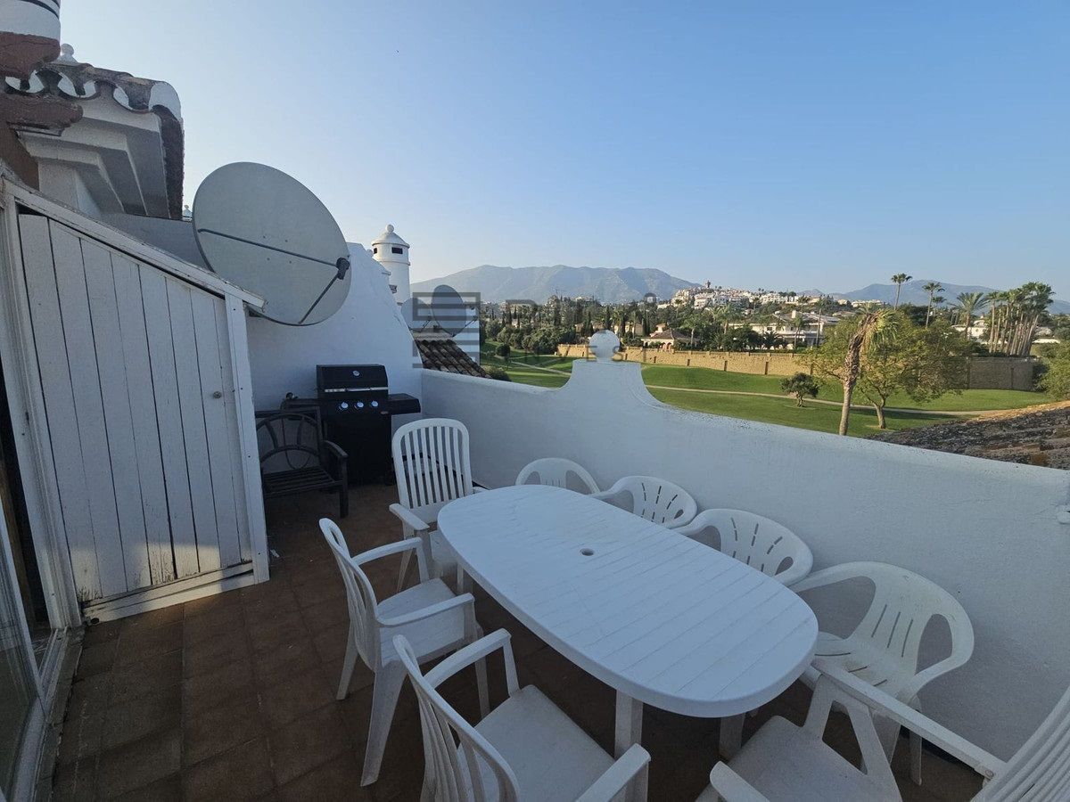 Discover this spectacular frontline golf penthouse. With a completely renovated and tastefully decorated design, this home features two spacious bedrooms and two full bathrooms, perfect for enjoying comfort and style. The kitchen is open to the living room, offering cozy and bright spaces. It also has a fireplace. The living room opens onto a charming terrace where you can relax while enjoying the stunning views of the golf course.