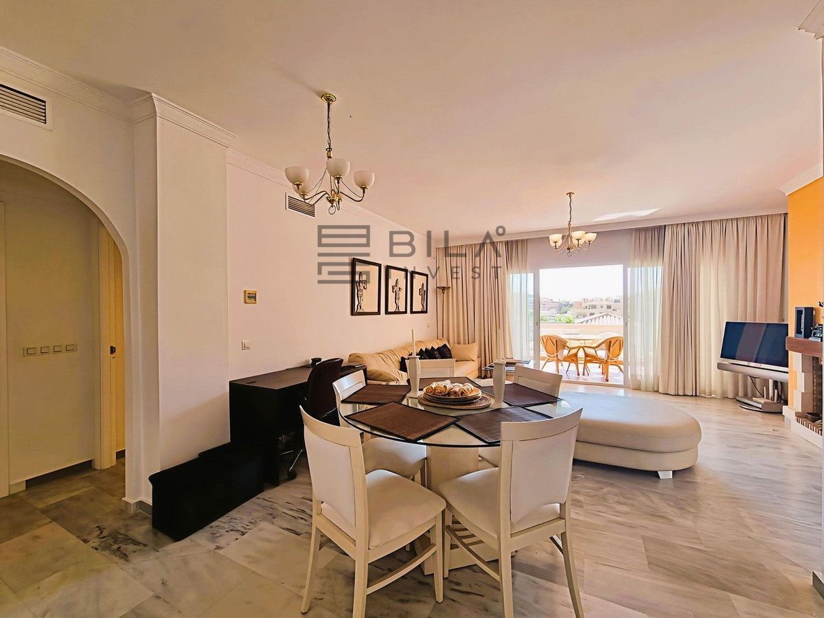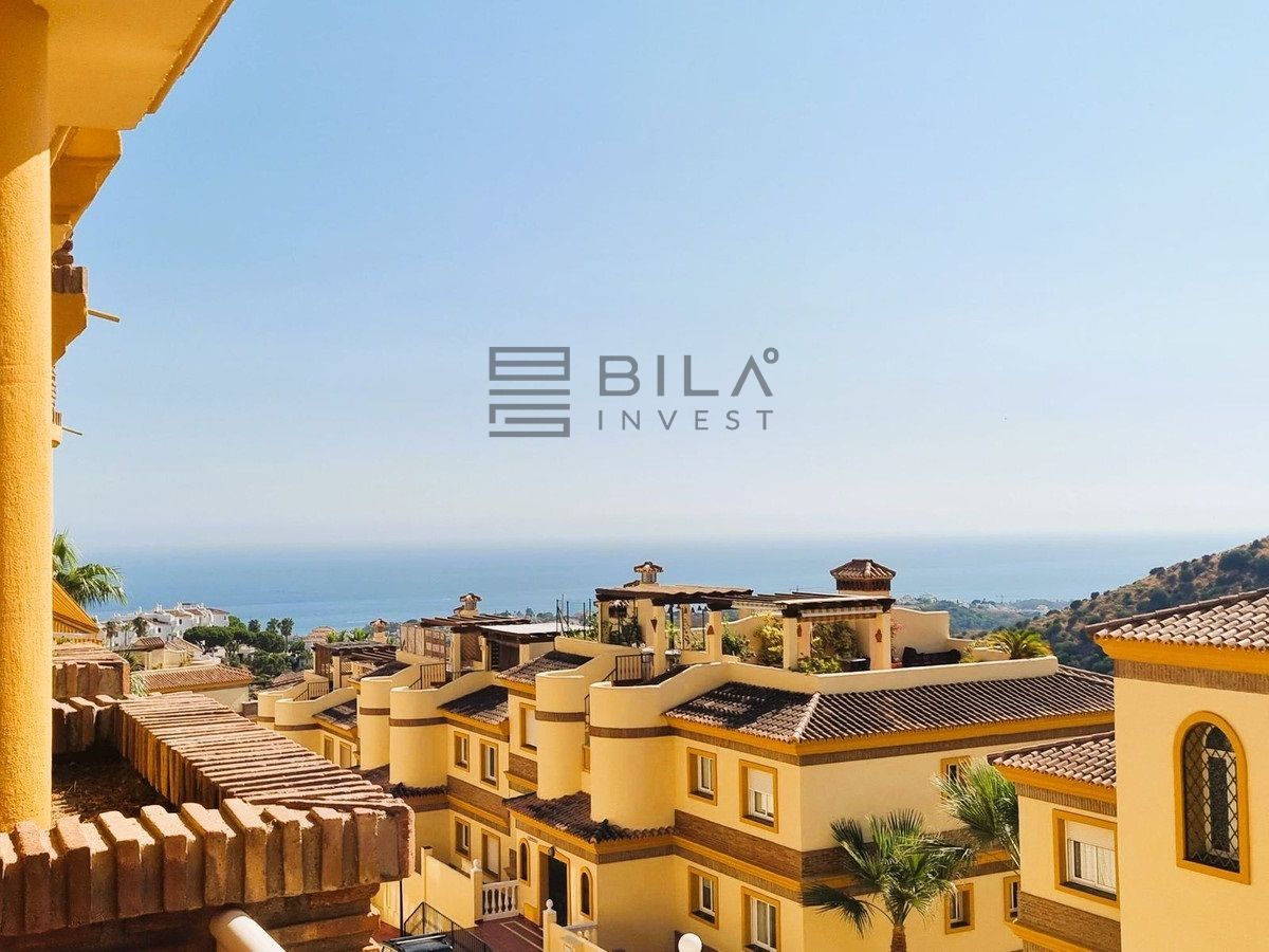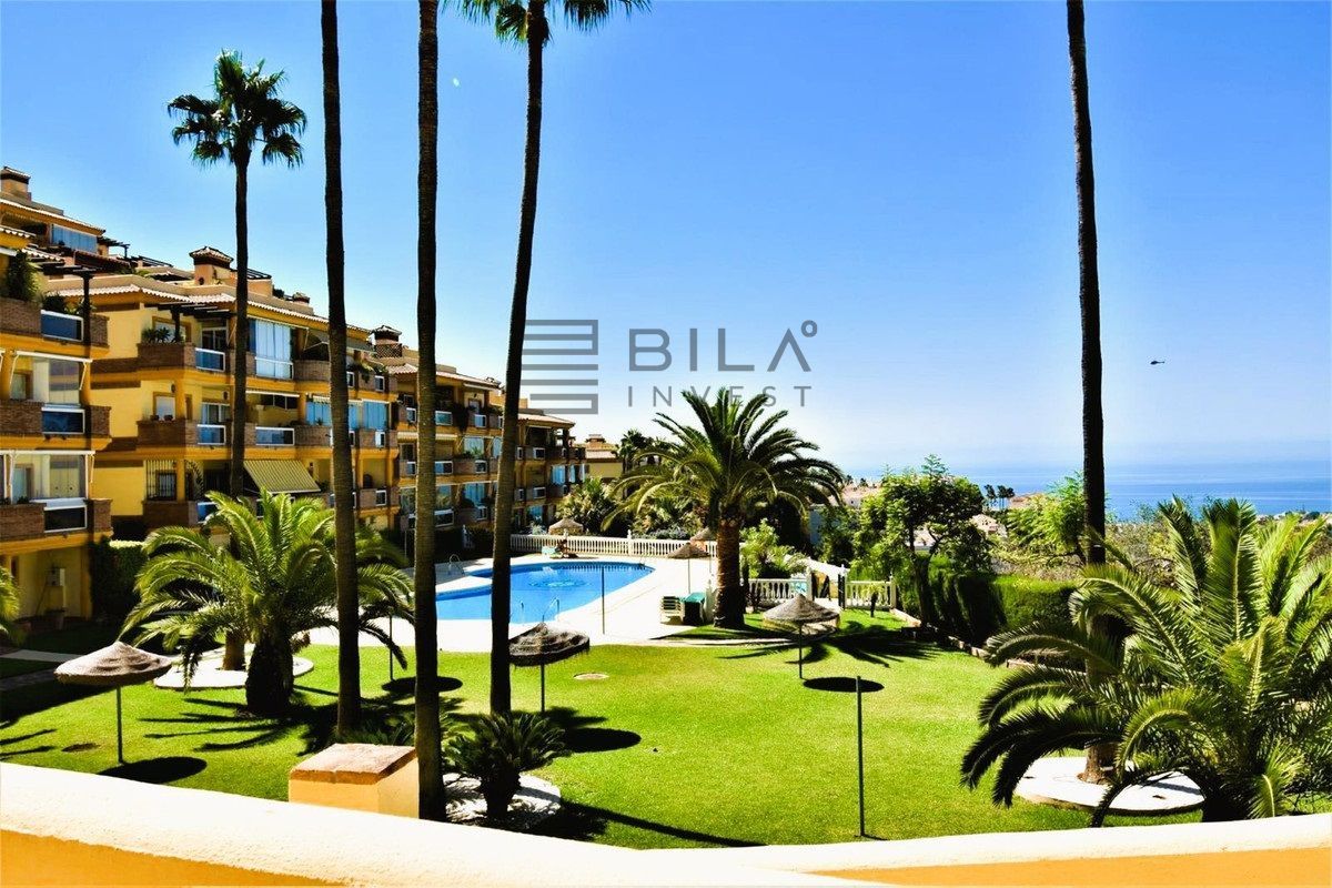 Fantastic raised ground-floor apartment situated in a sought-after and very well-maintained complex in the upper part of Calahonda. The property has stunning panoramic views of the coast and the Mediterranean Sea. This lovely property offers a modern fitted kitchen with all new appliances and a serving hatch opening onto a spacious and bright living/dining room with open fireplace. From the lounge there is access to a large West-facing terrace of from where you can enjoy fantastic views of the sea and surroundings. The property has 2 double bedrooms with fitted wardrobes and 2 bathrooms (one en-suite). The main bedroom also has direct access to the terrace. The property ready to move in to. It has marble flooring, double glazing, hot & cold air-conditioning and a working fireplace. Within the complex are 2 large communal swimming pools with great views and mature well-maintained gardens. There is off-road communal parking directly in front of the apartment block and also gated communal parking in the centre of the complex. For golf lovers, the property is located just 1.5 km from La Siesta Golf and there are 2 bars and 2 restaurants within a short walking distance (500 metres away)