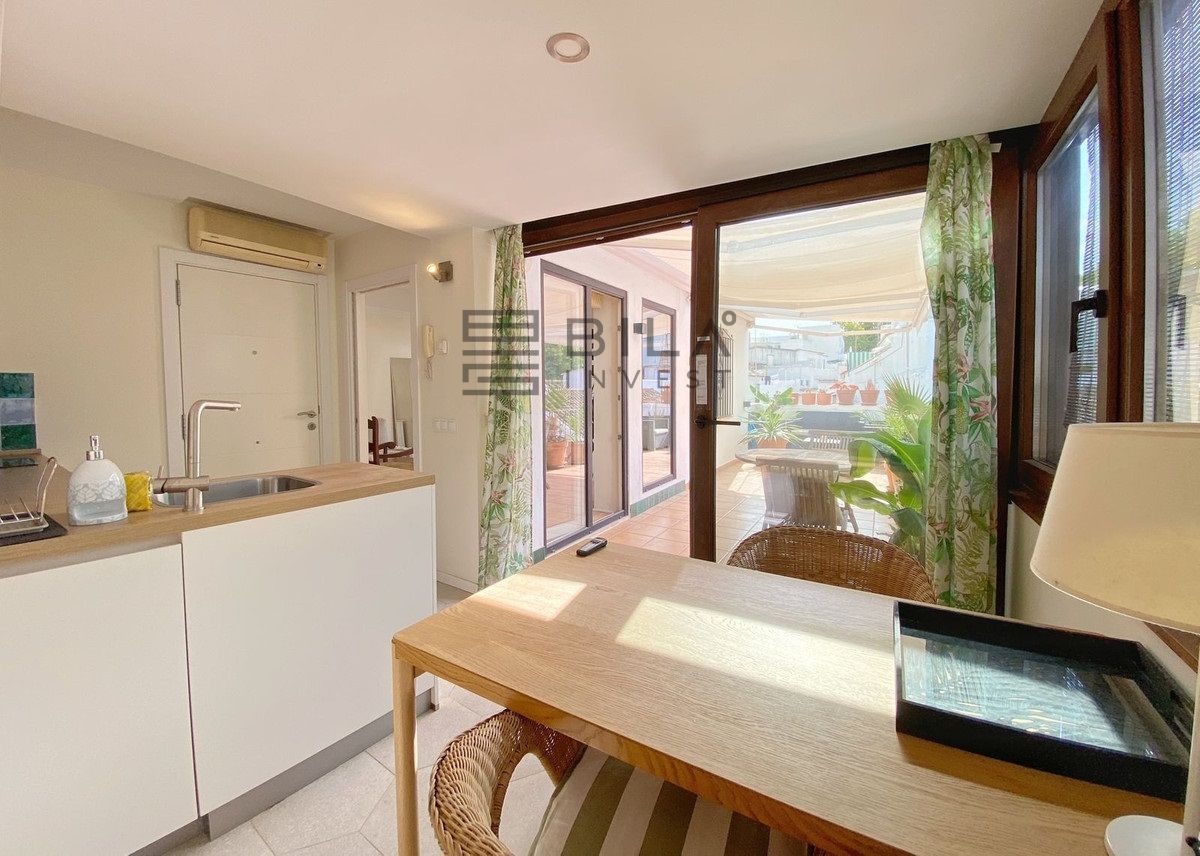 Located on a quiet pedestrian street in Marbella's Old Town, very peaceful and quiet. The apartment has a separate bedroom, a bathroom with a shower and an exterior window, a cozy living room, and a fully equipped kitchen with a dining area, both with direct access to a fantastic outdoor terrace, where there are different areas to relax or sunbathe on the sun lounger, or to sit and eat outside.