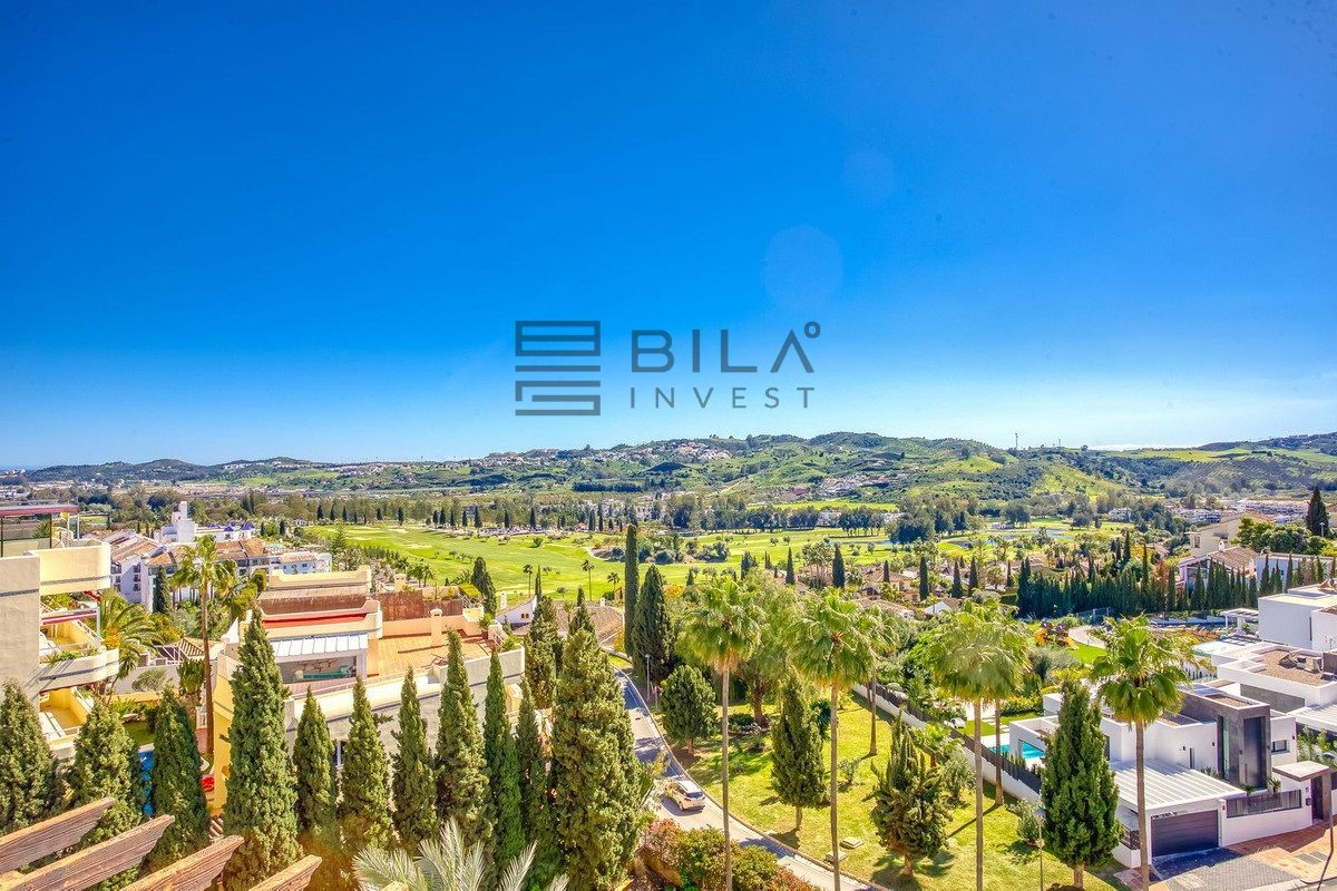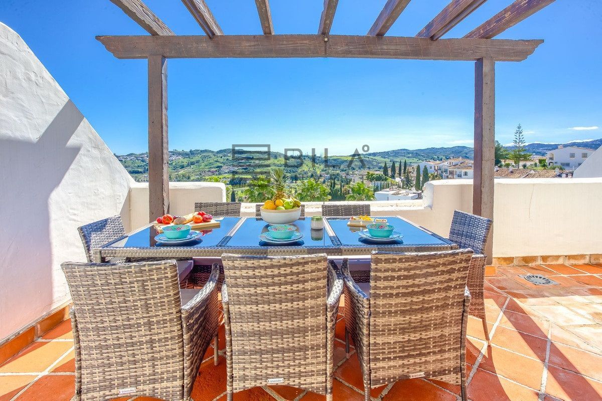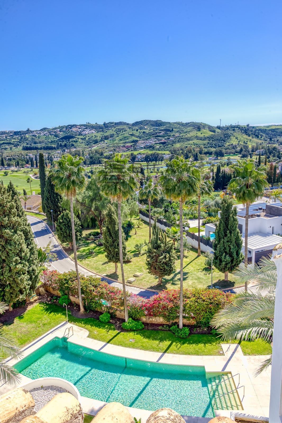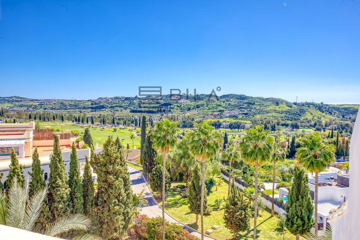 This south-facing penthouse boasts panoramic views over the lush fairways of Mijas Golf and the surrounding mountain range. Enjoy sun-drenched terraces and a peaceful setting, all within easy reach of local amenities.