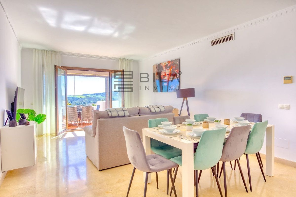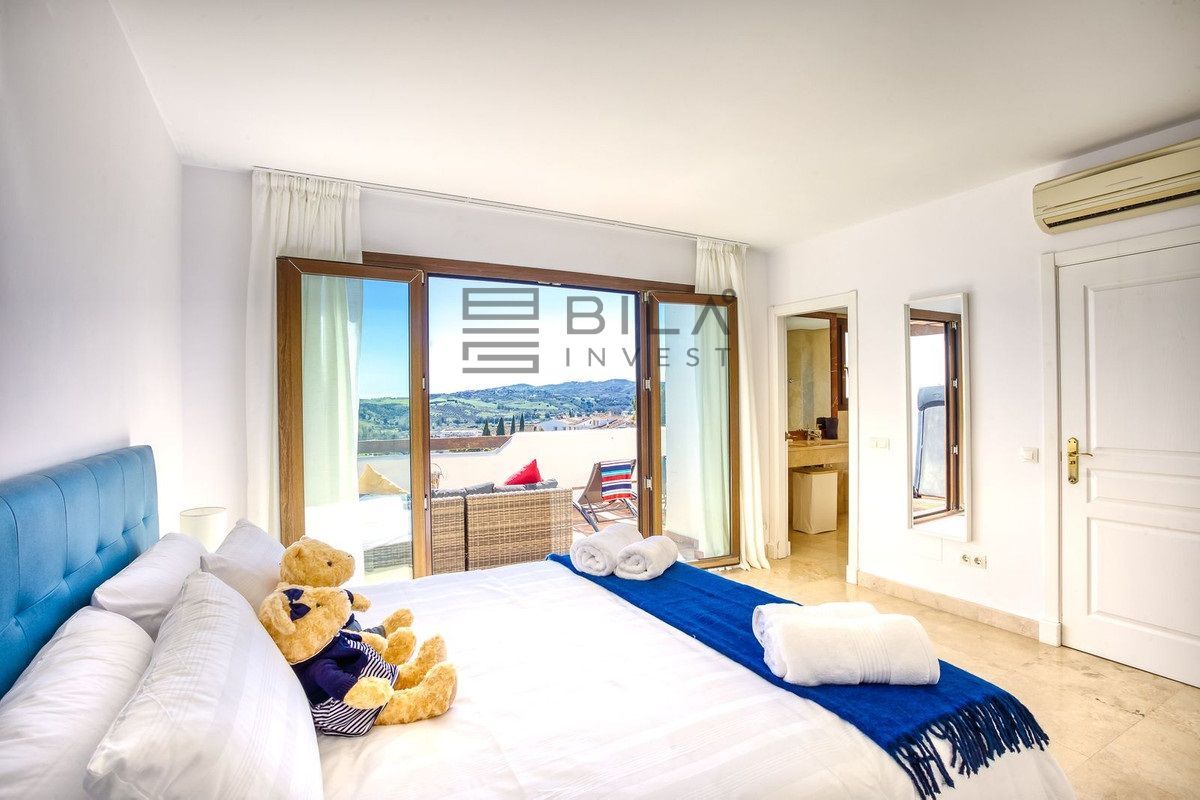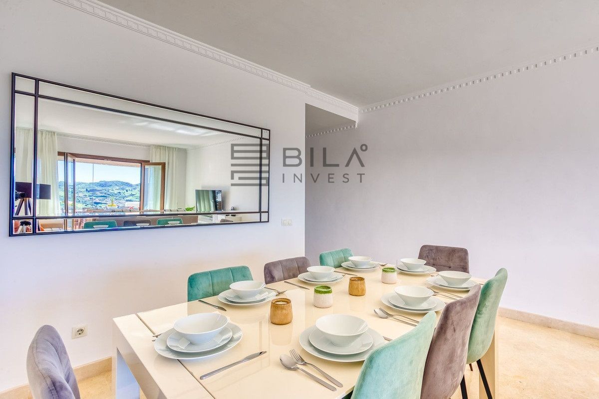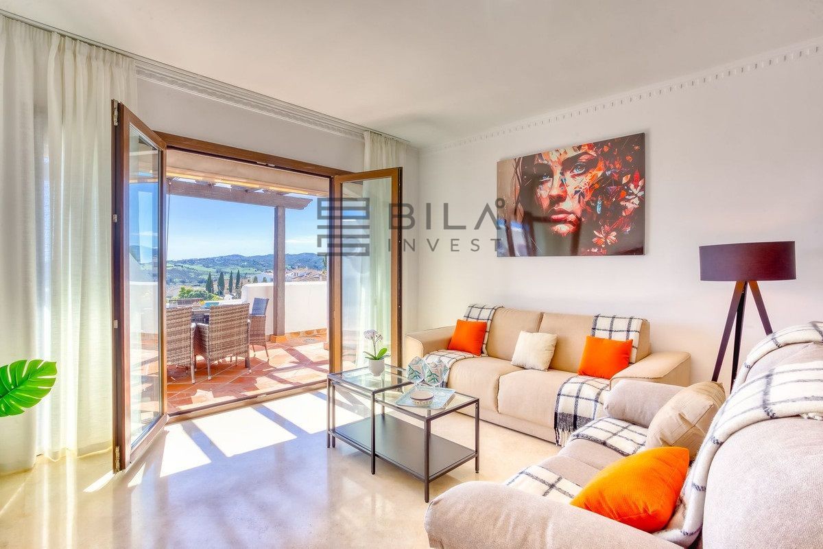 This south-facing penthouse boasts panoramic views over the lush fairways of Mijas Golf and the surrounding mountain range. Enjoy sun-drenched terraces and a peaceful setting, all within easy reach of local amenities.