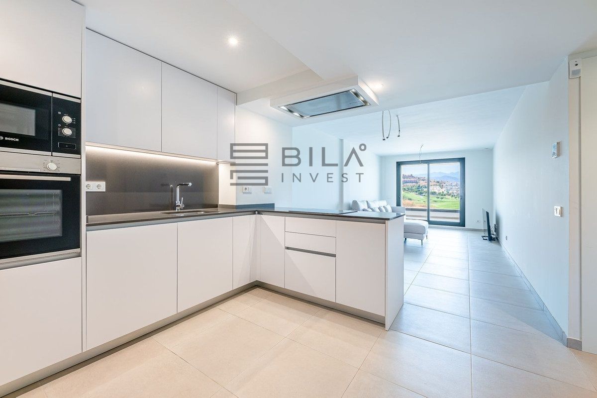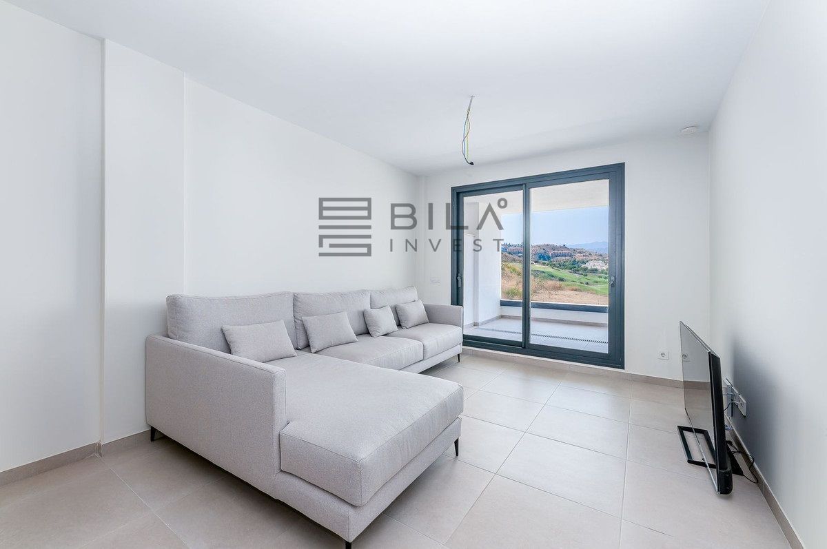 Beautiful new build 2-bedroom, 2-bathroom apartment in the prestigious Calanova Golf area. Enjoy stunning panoramic views of the golf course and surrounding mountains from the terrace. This stylish home features an open-plan living space, fully equipped modern kitchen, and high-quality finishes throughout. The master bedroom includes an en-suite bathroom and terrace access. Set within a secure development with landscaped gardens, pool, and private parking. Just minutes from La Cala de Mijas, beaches, and local amenities — ideal as a holiday home, investment, or full-time residence.