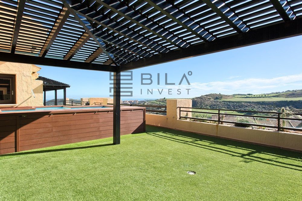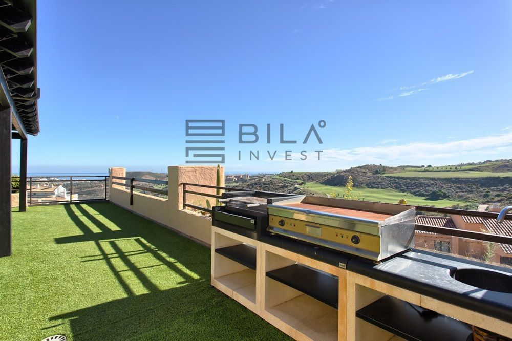 Double glazed windows and electric blinds, wood oak flooring throughout and air conditioning hot and cold are standard features of this duplex penthouse apartment. The terrace has a warm feeling for outside living with breathtaking panoramic views of the sea, mountain and golf.