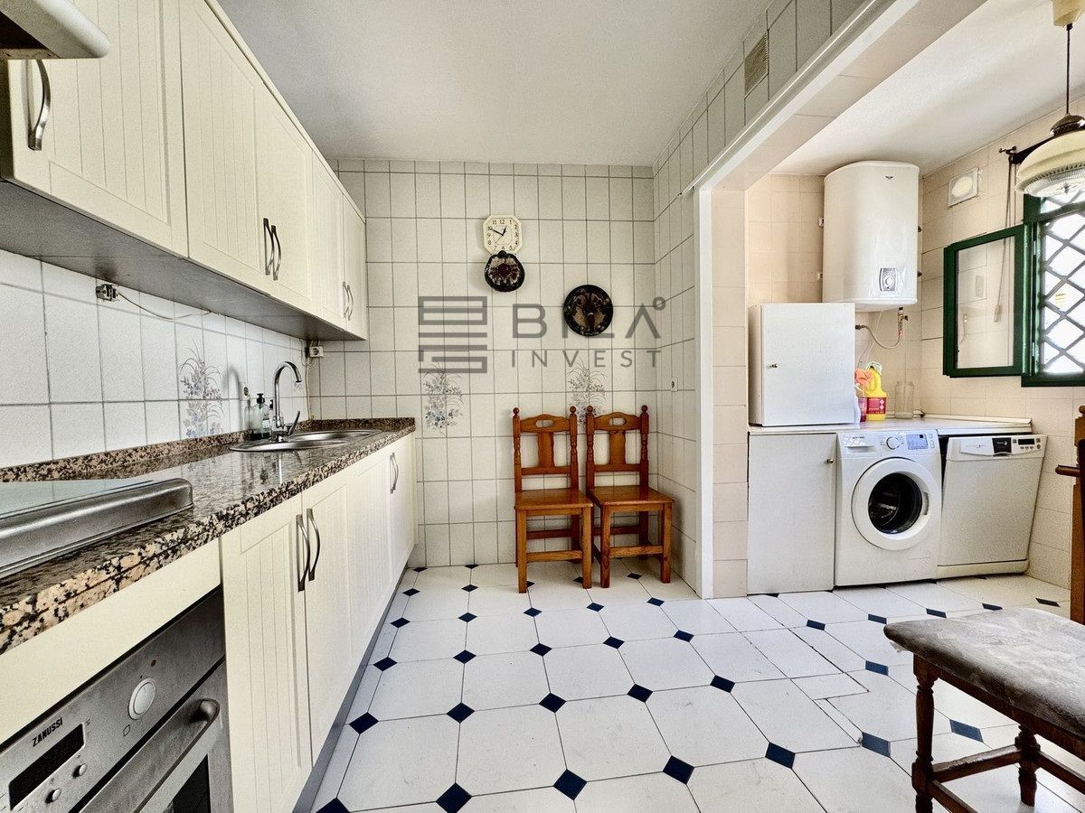 The kitchen is located next to the living room and offers the possibility to create a modern open-plan layout by easily removing the wall. Every room has plenty of windows and a bright atmosphere that reflects a classic Andalusian style.