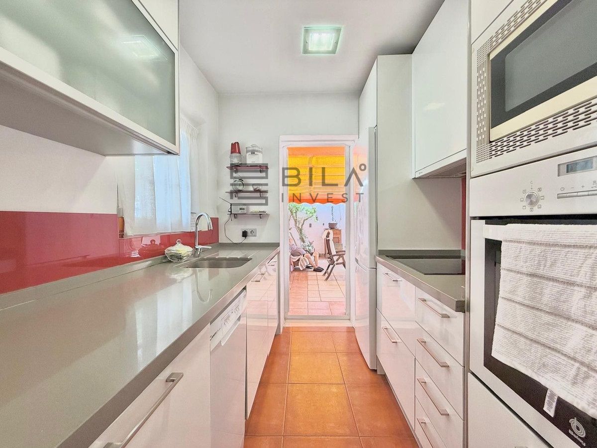 On the ground floor, you'll find a bright living room, a guest toilet, and an independent kitchen with direct access to the patio. (If you love open-plan living, this is your chance to transform it into a spectacular kitchen with an island integrated into the living room).