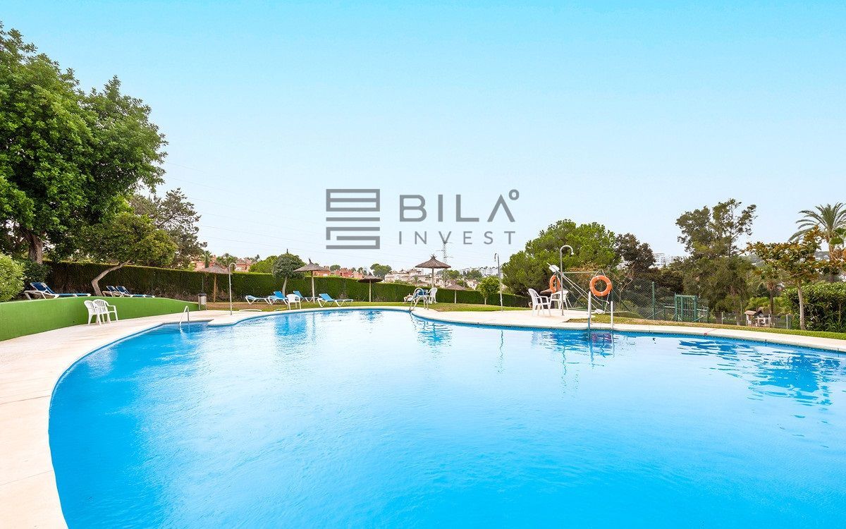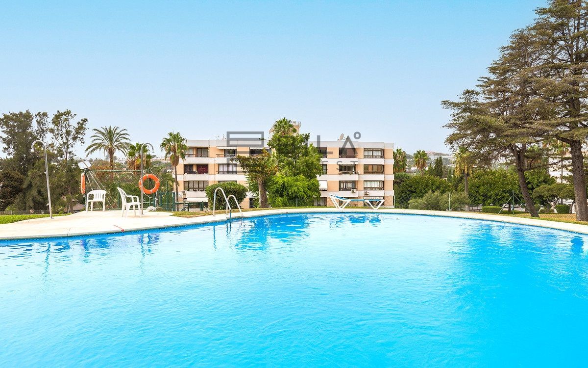 First floor east-facing apartment surrounded by golf and amenities, Torres de Aloha, Nueva Andalucía. Comprising living/dining room, small kitchen and east-facing terrace, and a bedroom with a separate bathroom. Lovely gated complex with reception, security guard, swimming pool, and walking distance to restaurants, cafés, supermarket, tennis club, and golf courses. The monthly community fees include the water and electricity supplies. A fantastic holiday home and ideal for investors looking for high rental potential.