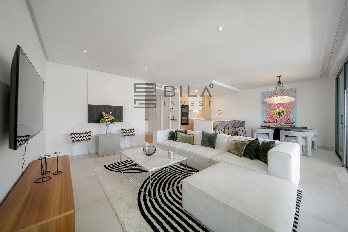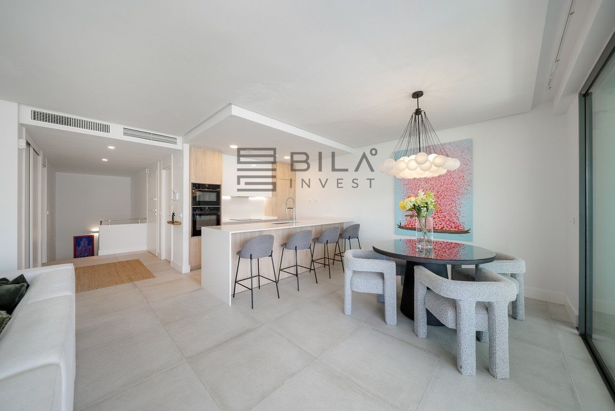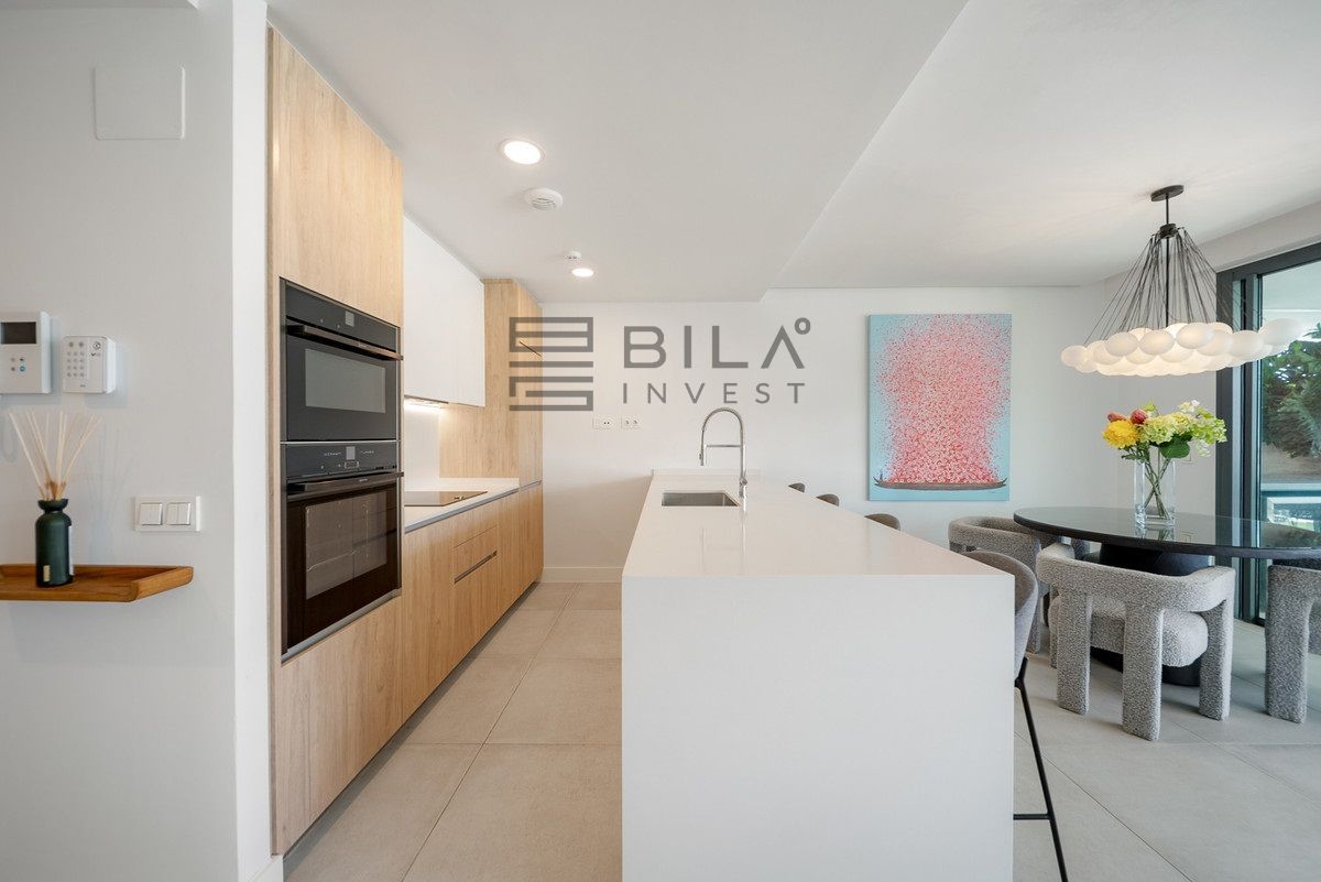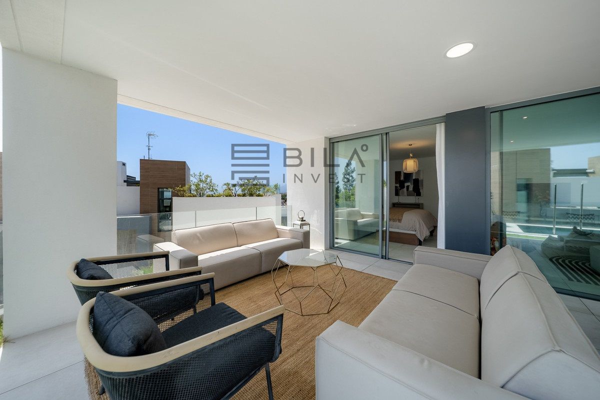 Designed for elevated everyday living, the residence opens into a sun-filled open-plan living area where floor-to-ceiling windows create a fluid connection to the outdoors. A spacious terrace, complete with a private pool and gas BBQ, is ideal for al fresco dining, entertaining, or simply soaking in the Mediterranean ambiance. Underfloor heating throughout ensures year-round comfort, while two underground garage spaces add everyday ease.