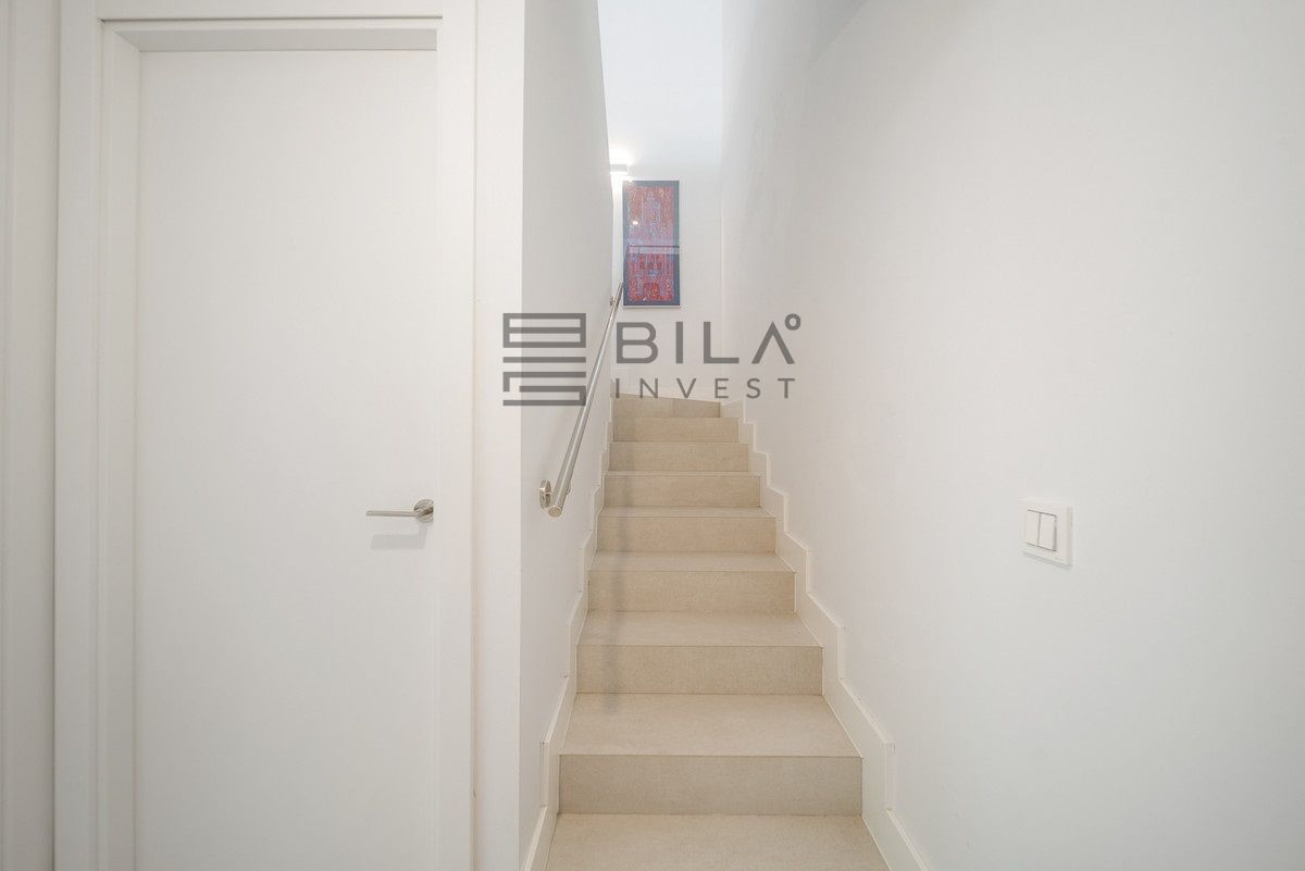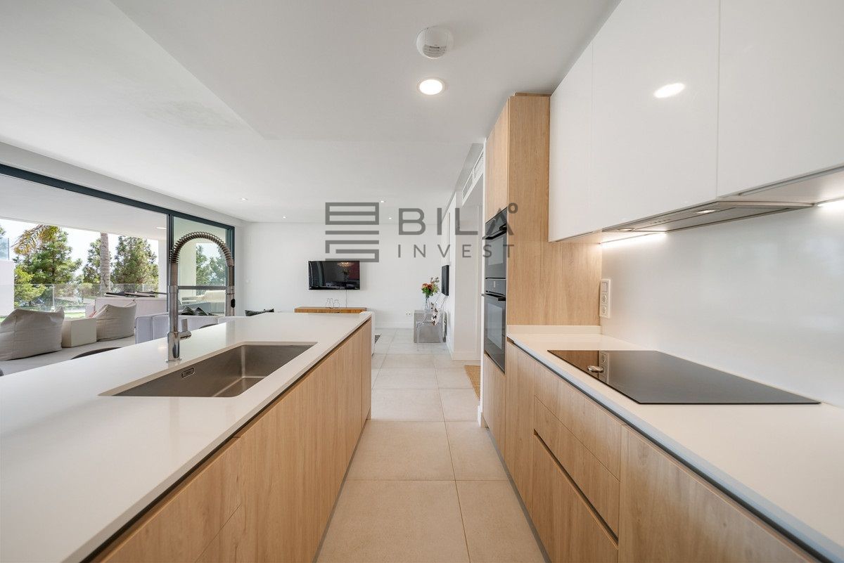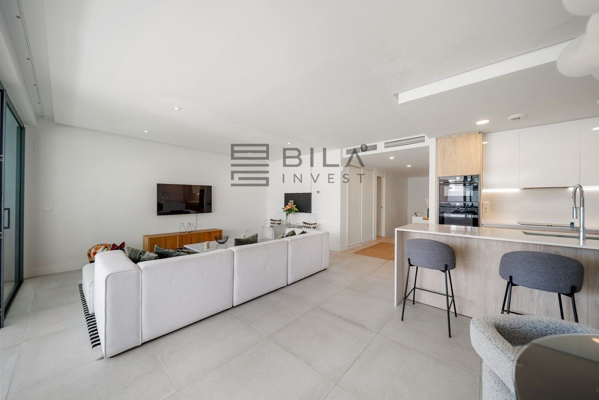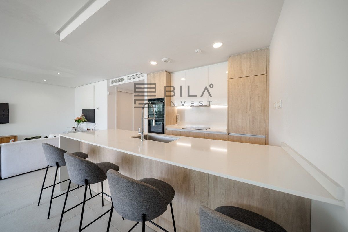 Designed for elevated everyday living, the residence opens into a sun-filled open-plan living area where floor-to-ceiling windows create a fluid connection to the outdoors. A spacious terrace, complete with a private pool and gas BBQ, is ideal for al fresco dining, entertaining, or simply soaking in the Mediterranean ambiance. Underfloor heating throughout ensures year-round comfort, while two underground garage spaces add everyday ease.