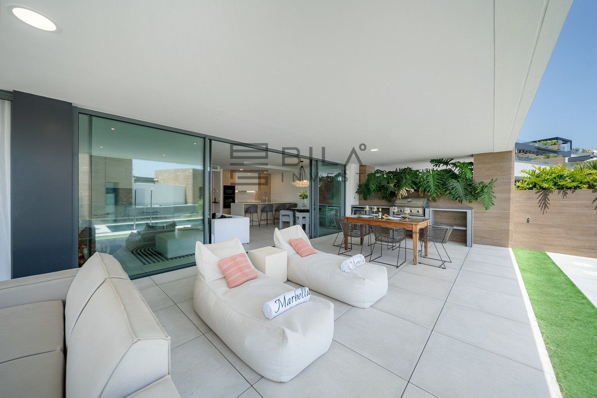 Tucked within an exclusive gated community in Artola Alta, this sophisticated south-facing duplex blends modern luxury with the tranquility of coastal living. Just a short walk from Marbella's finest beaches, the home offers seamless access to nature and panoramic sea views from the community grounds.