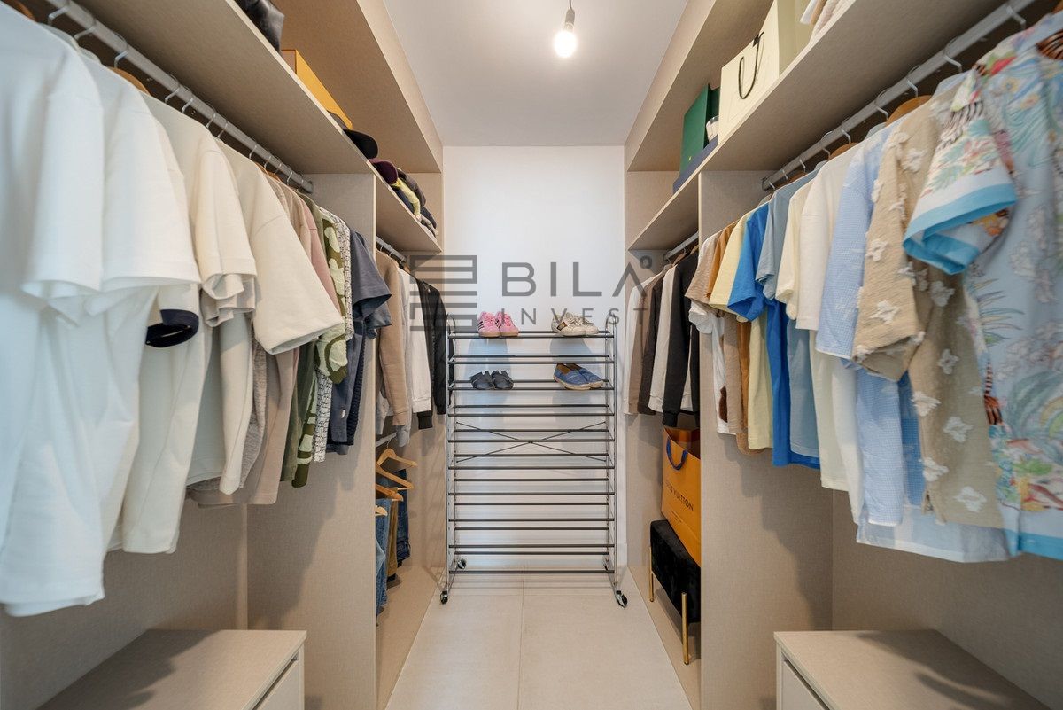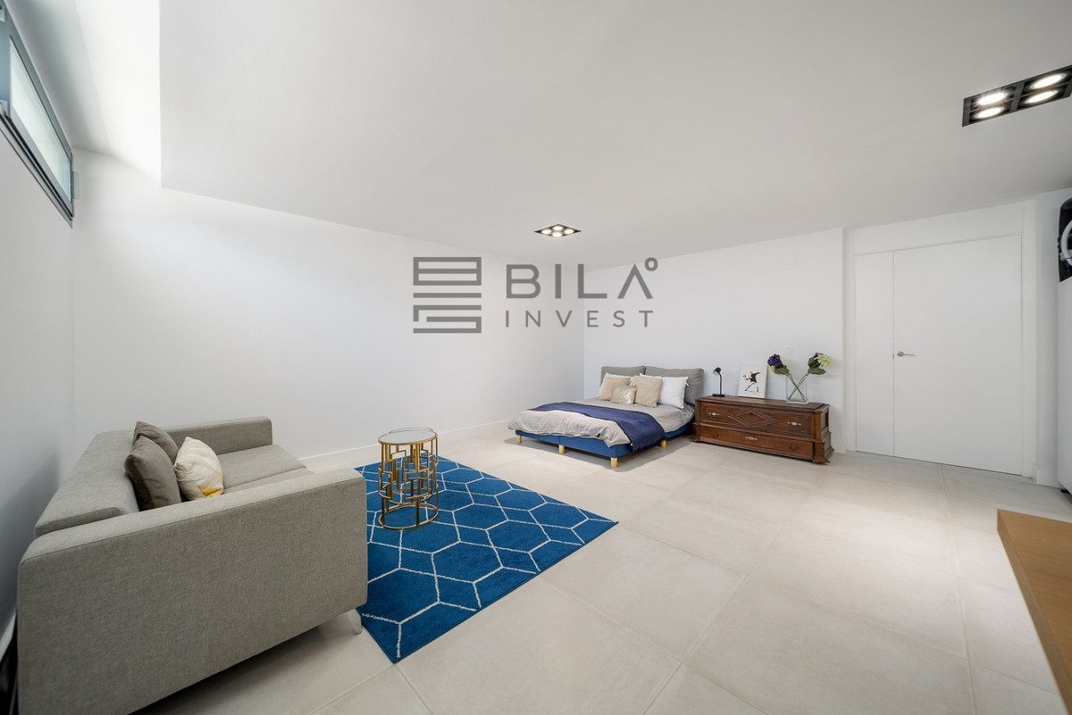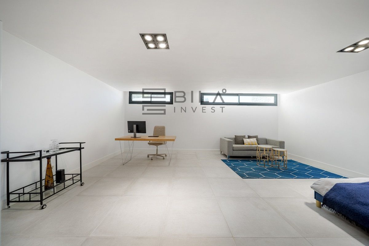 On the lower level, a large third bedroom offers flexible use—it can be maintained as a spacious suite or divided into two separate rooms, with pre-installations already in place for an additional bathroom.