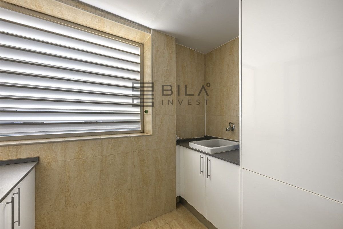 On the main floor, the property opens onto an elegant open-plan living/dining room with several seating areas and direct access to spacious terraces that flood the space with natural light. The separate, modern and fully equipped kitchen is complemented by a practical utility room. On this level there is also a bedroom with en-suite bathroom, currently used as an office, perfect as a workspace or guest room.