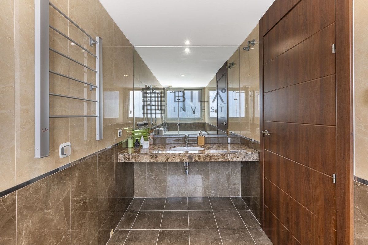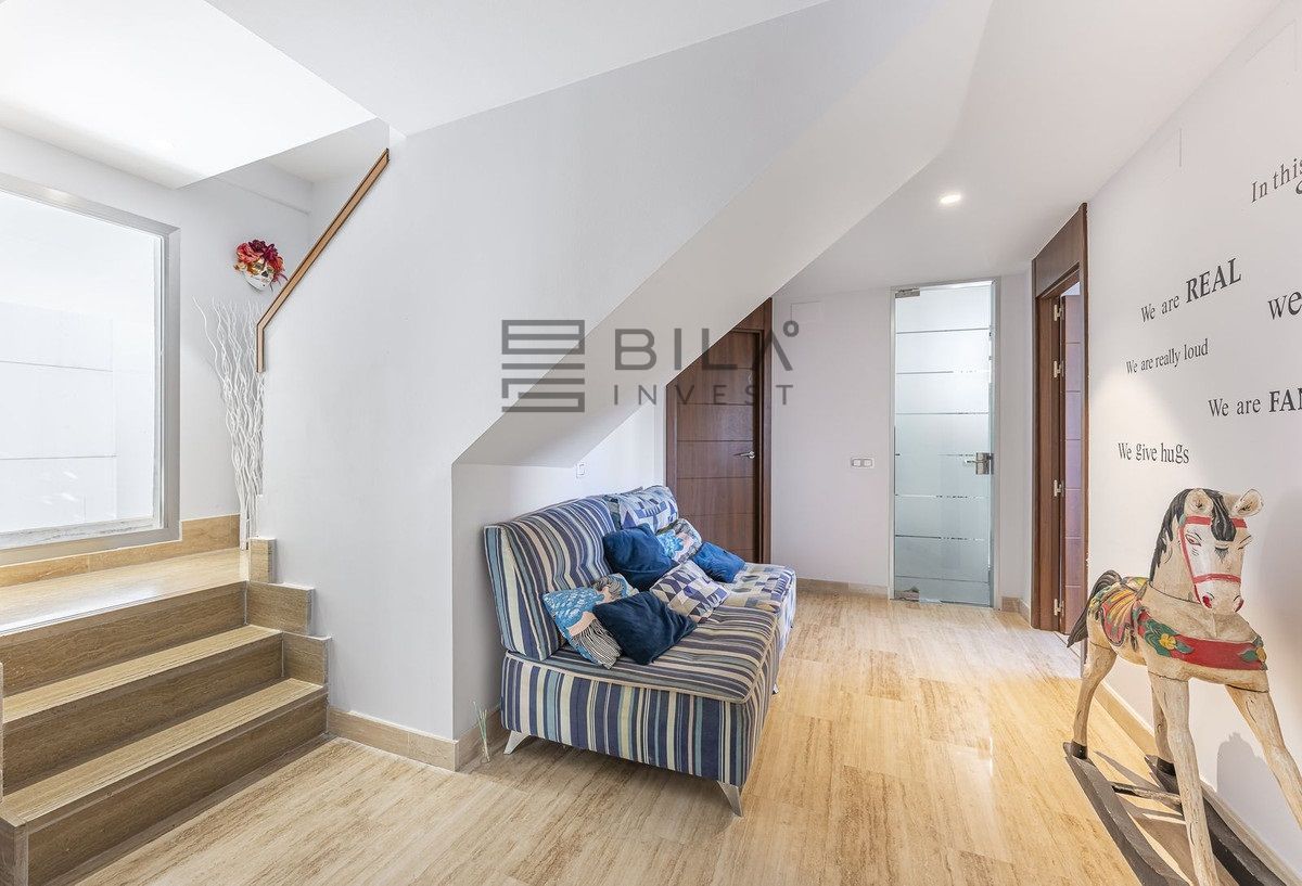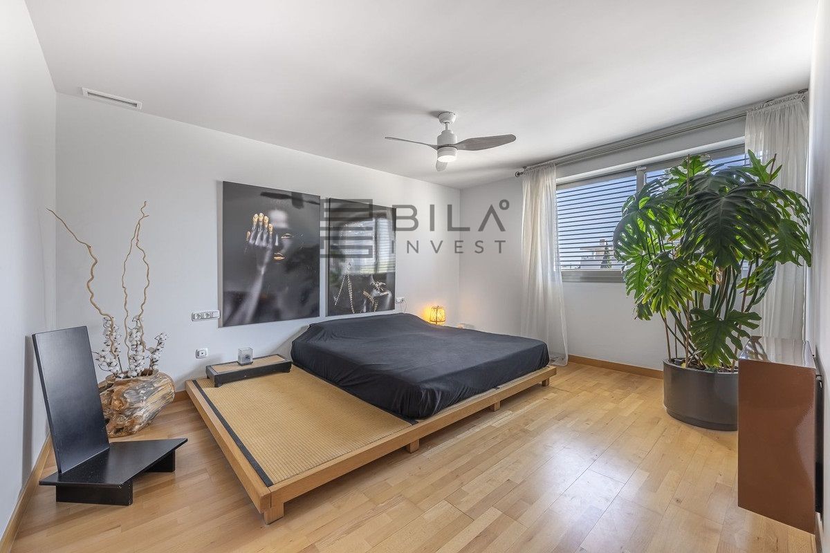 On the top floor, the sleeping area has four spacious and bright bedrooms: two of them with en-suite bathrooms and dressing rooms, and the other two sharing a full bathroom. The layout ensures privacy and comfort for every member of the family.