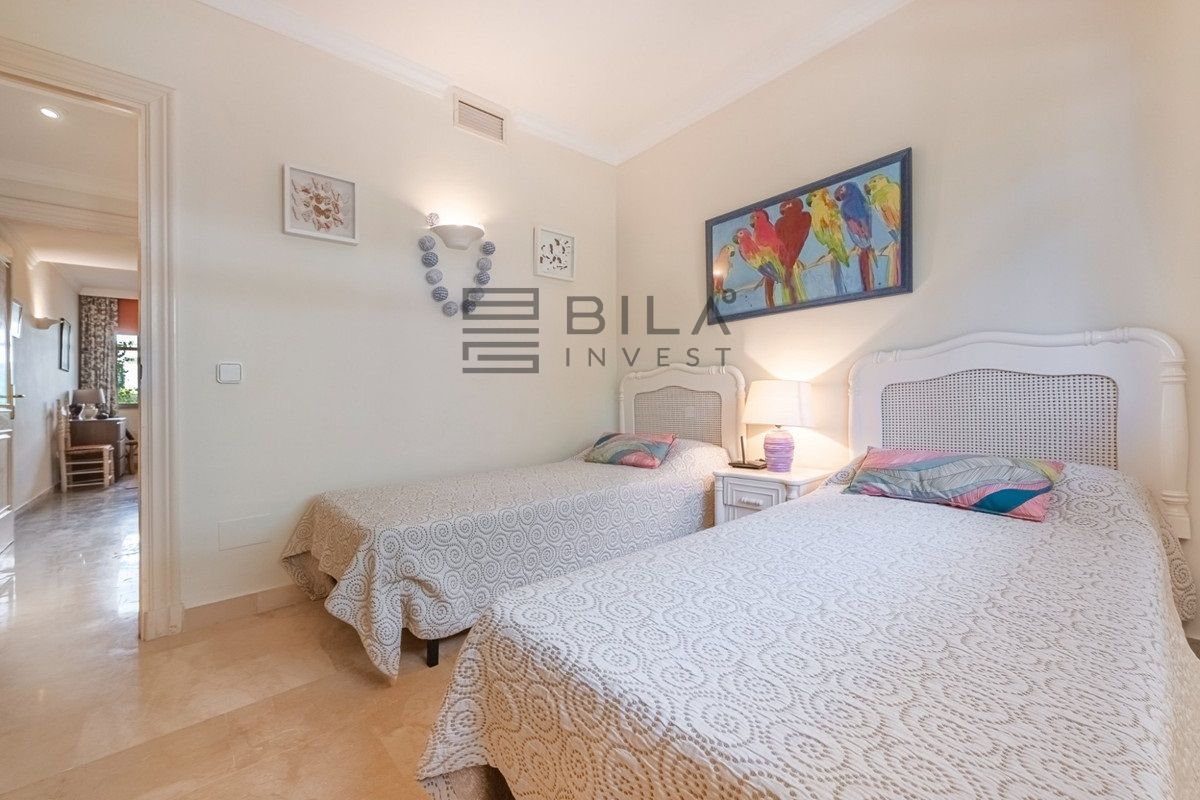 Charming ground-floor apartment situated in the heart of the golf valley, within walking distance to the Aloha Golf clubhouse and only a buggy drive from the prestigious golf course of Las Brisas. The property offers 2 bedrooms, 2 bathrooms, a fully fitted kitchen and a lovely covered terrace with nice private garden.