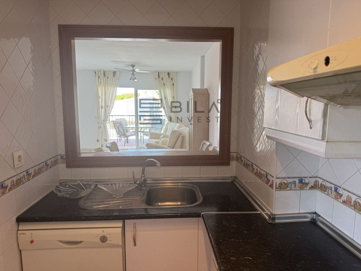 The interior presented well, but allows room for upgrading to your personal taste. The marble floor has just been polished and the walls painted.The master bedroom has an ensuite bathroom and for the second bedroom there is a guest shower room. THe big selling point of this apartment is the spacious, private terrace with open sea views that cannot be take away. It is perfect for entertaining or relaxing, with space for a large ding table and reclining furniture.
