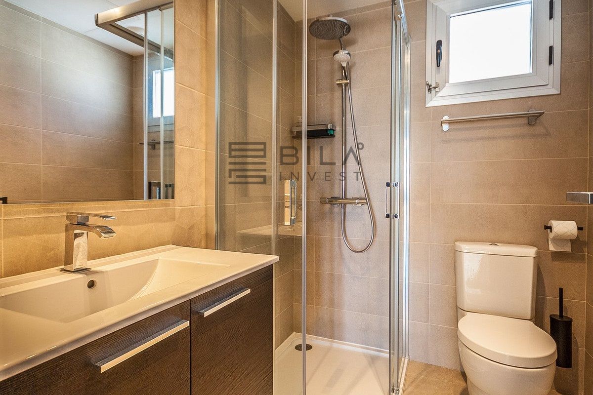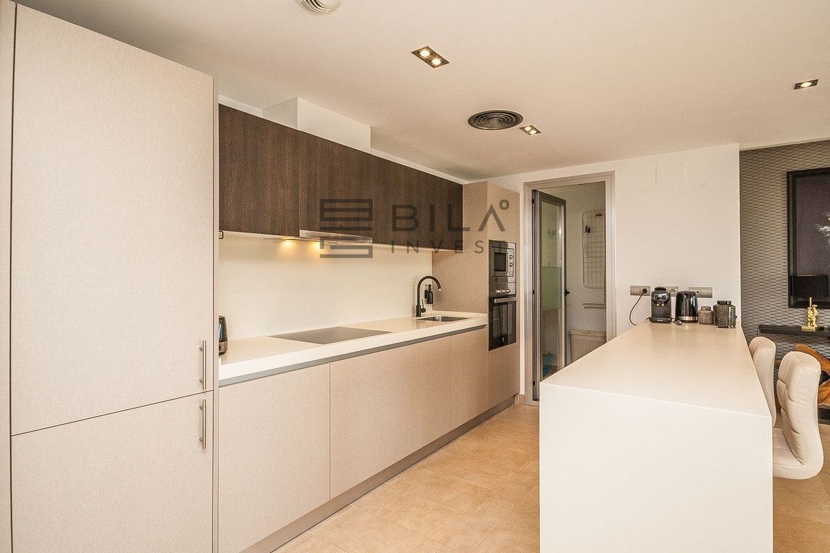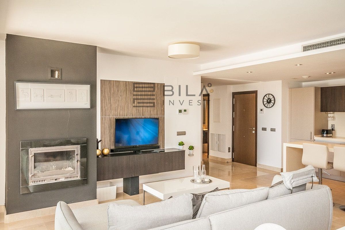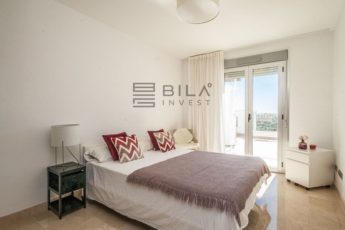 A highlight of the home is the large terrace with breathtaking panoramic views and an added conservatory with glass curtains, to create a versatile all-season living space. Additional features include an elevator bringing you directly to your front door, private solar panels with the added benefit of low electricity consumption, a private parking space and inclusion in a gated community with landscaped communal gardens and several outdoor swimming pools.